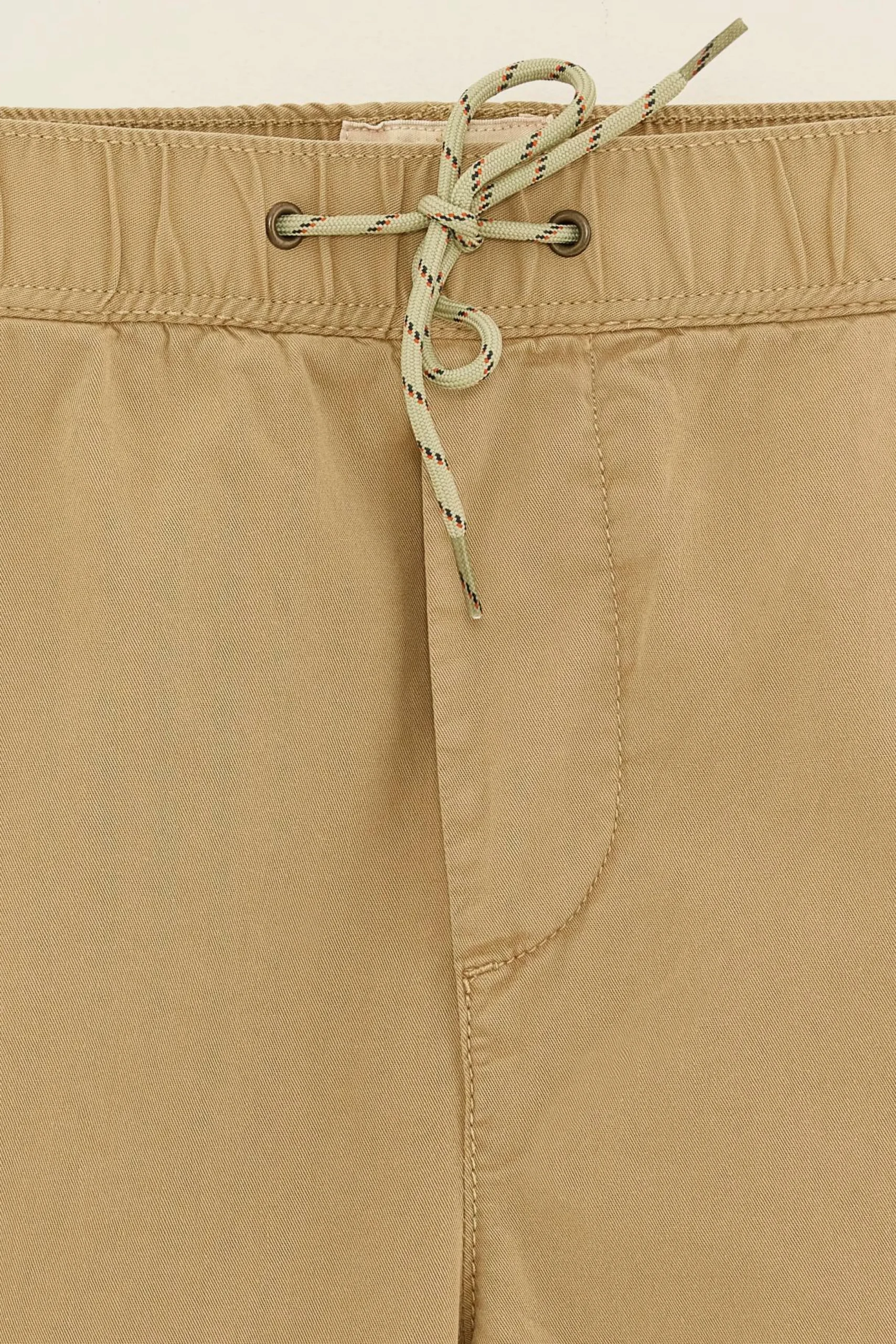 Pantalon décontracté et tapered avec cordon de serrage à la taille en toile beige.