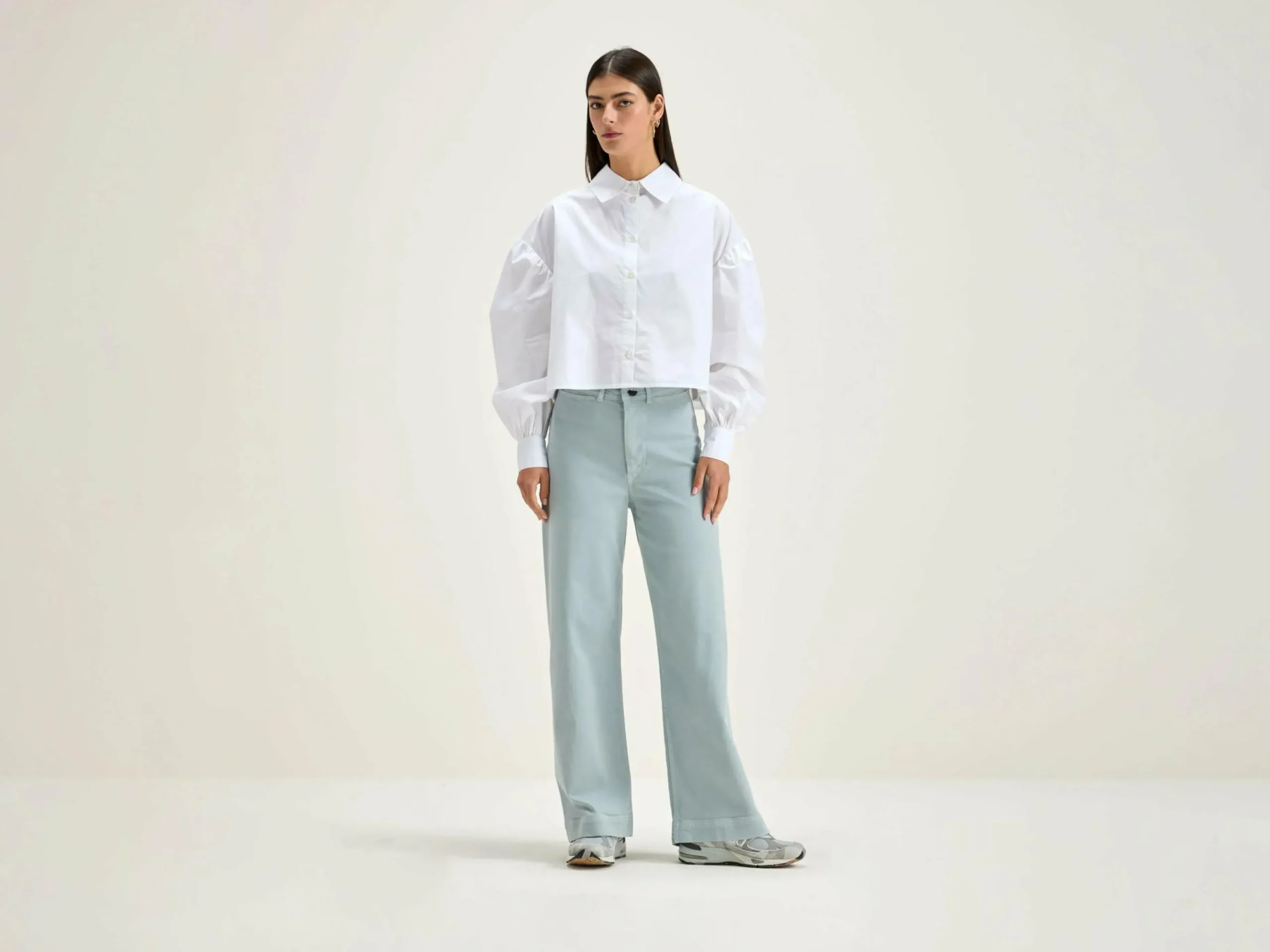 - Taille haute, jambes larges