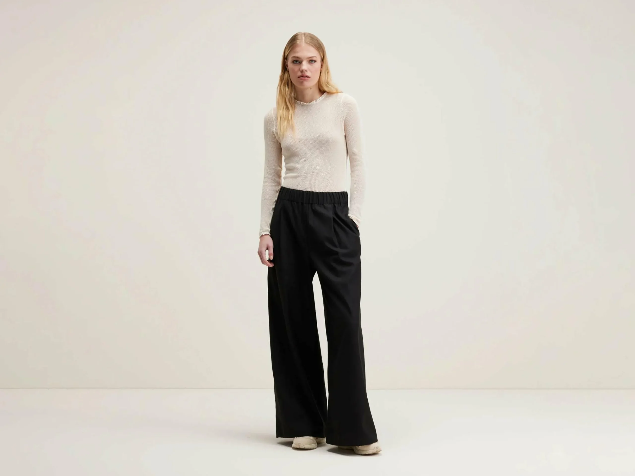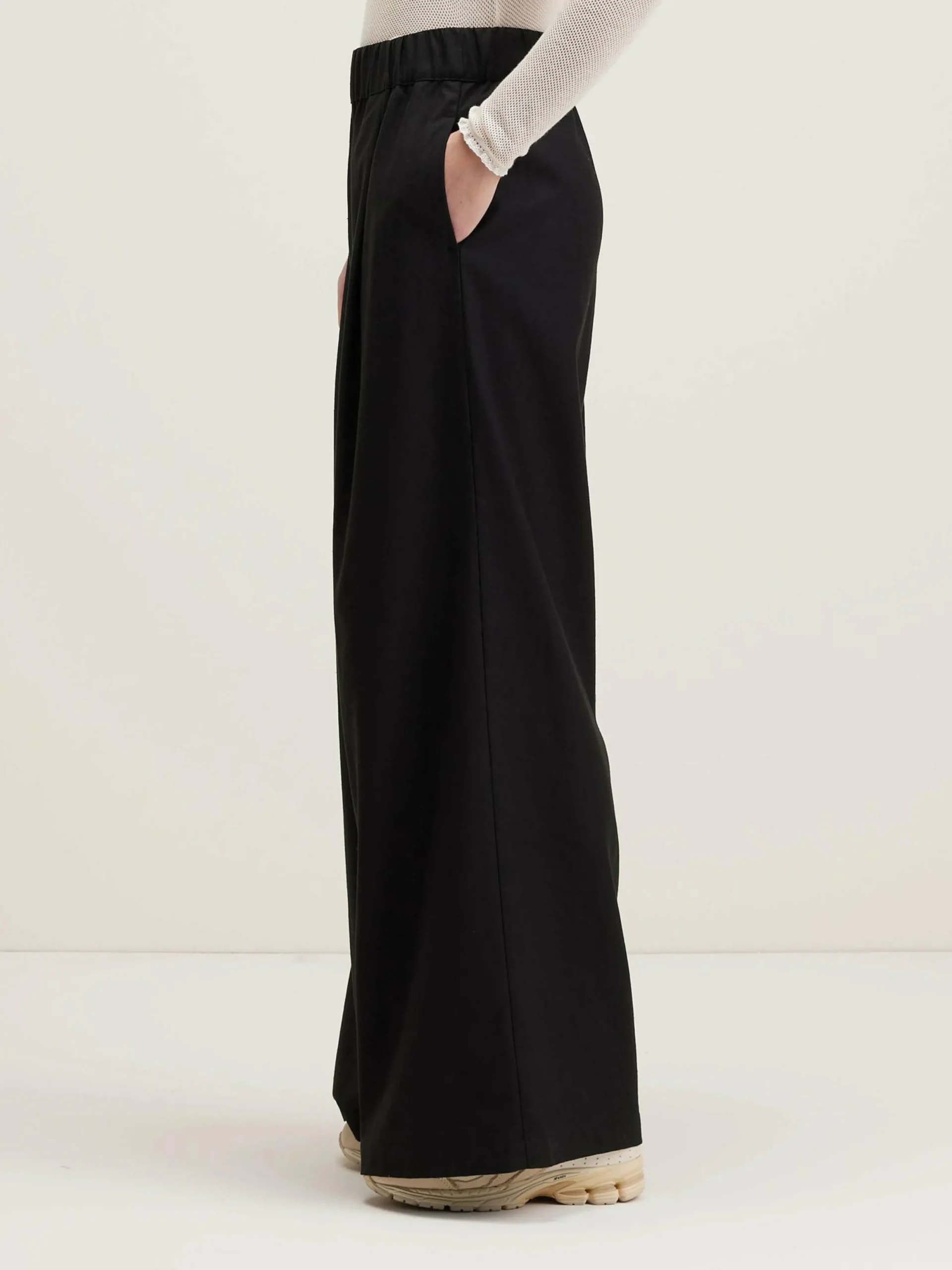 Pantalon noir taille haute, large et décontracté.