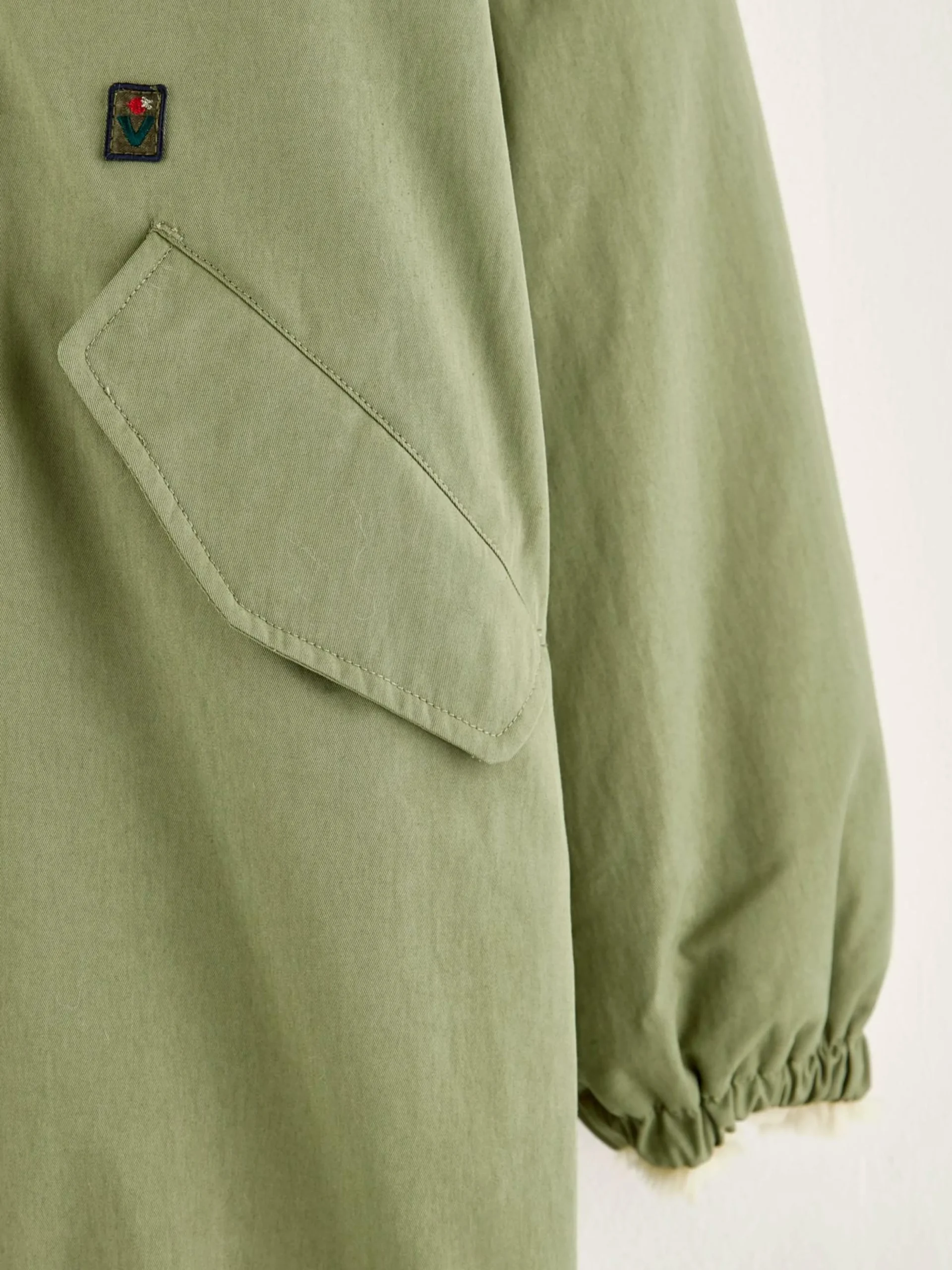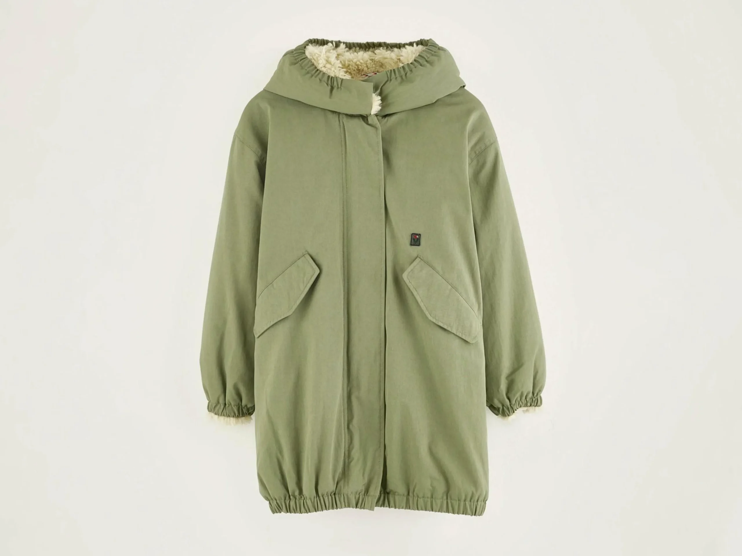 Parka à capuche oversize en vert kaki avec doublure en fausse fourrure.