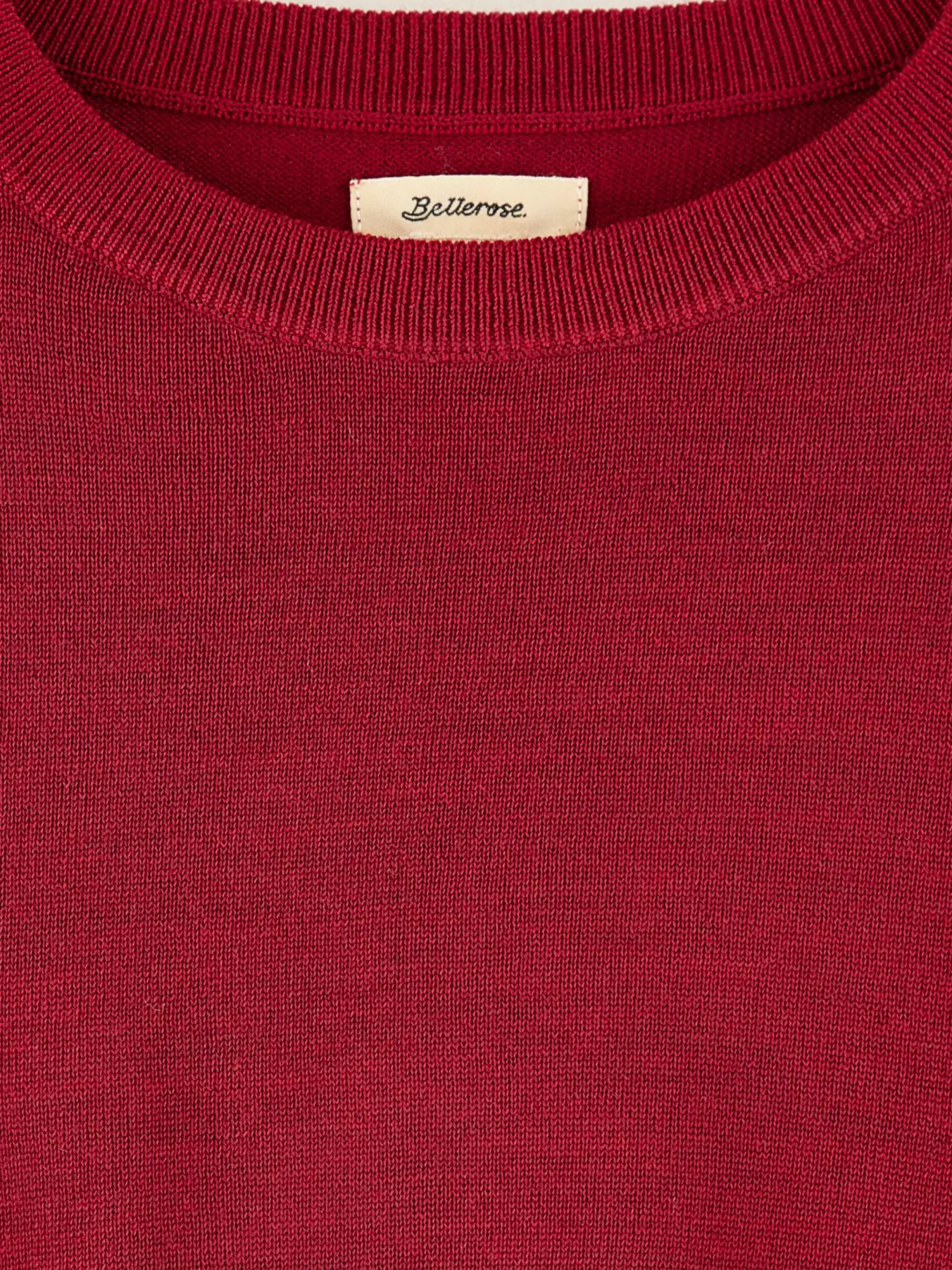 Pull court à manches courtes en laine mérinos de couleur bordeaux.