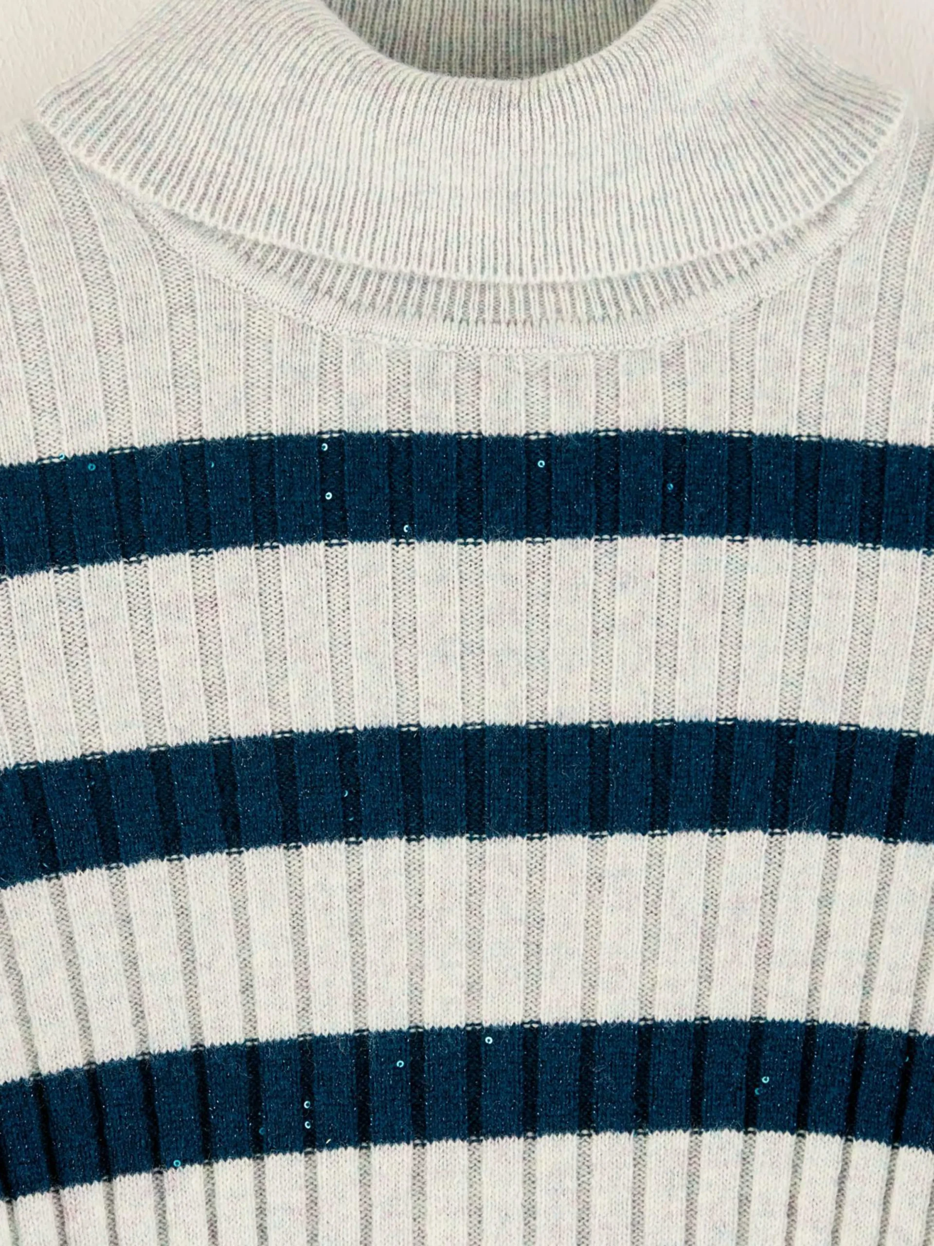 Pull slim à col montant en laine mérinos avec rayures brillantes.