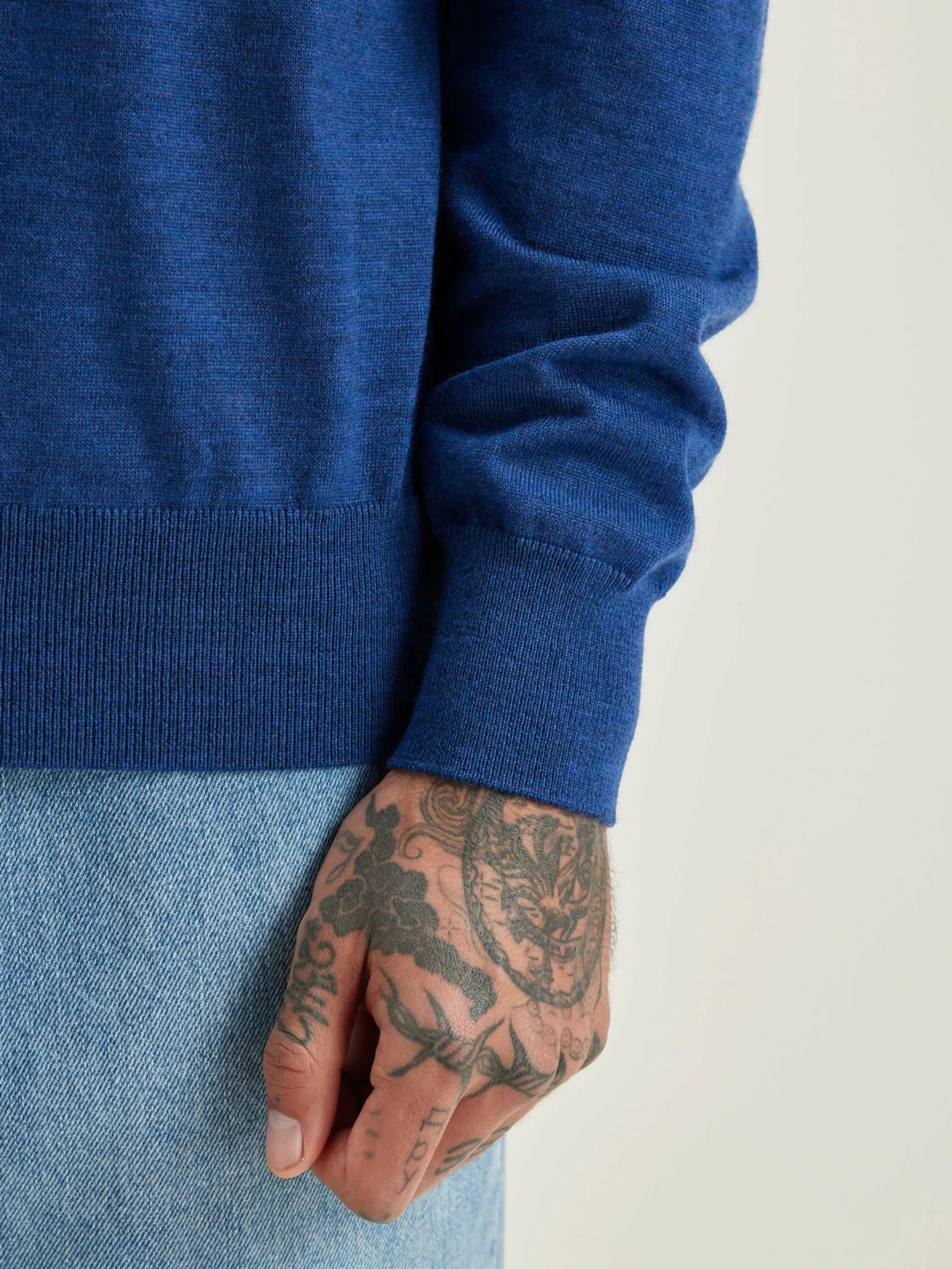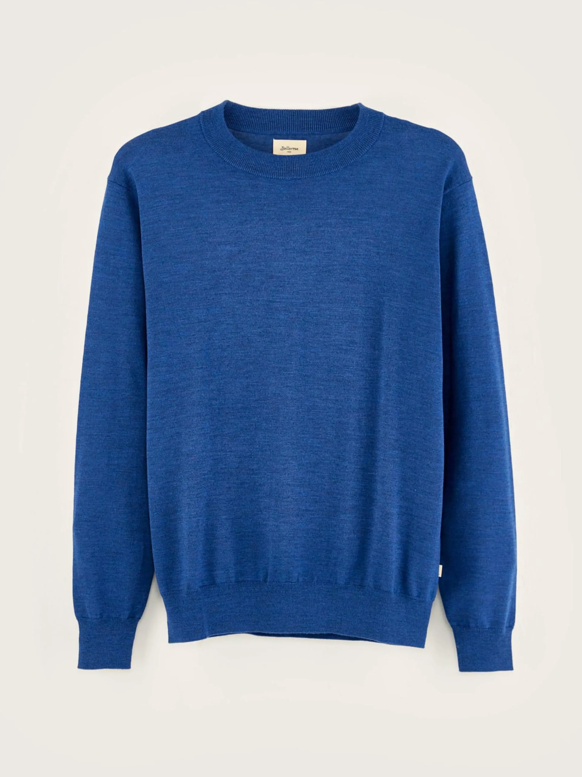 Pull classique en laine mérinos superfine bleu chiné.