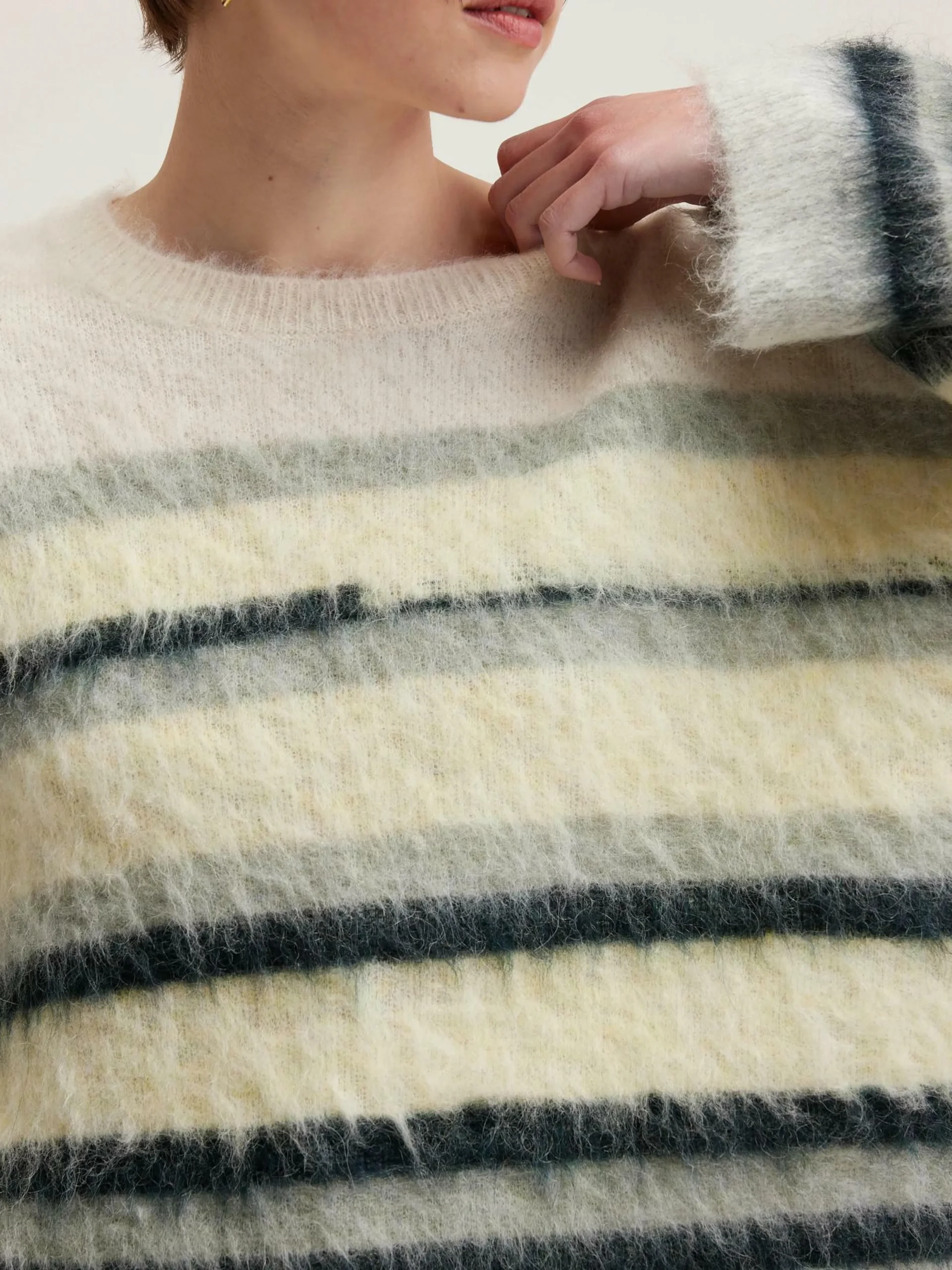 Pull oversize à rayures cassées irréguliêres en double jacquard.