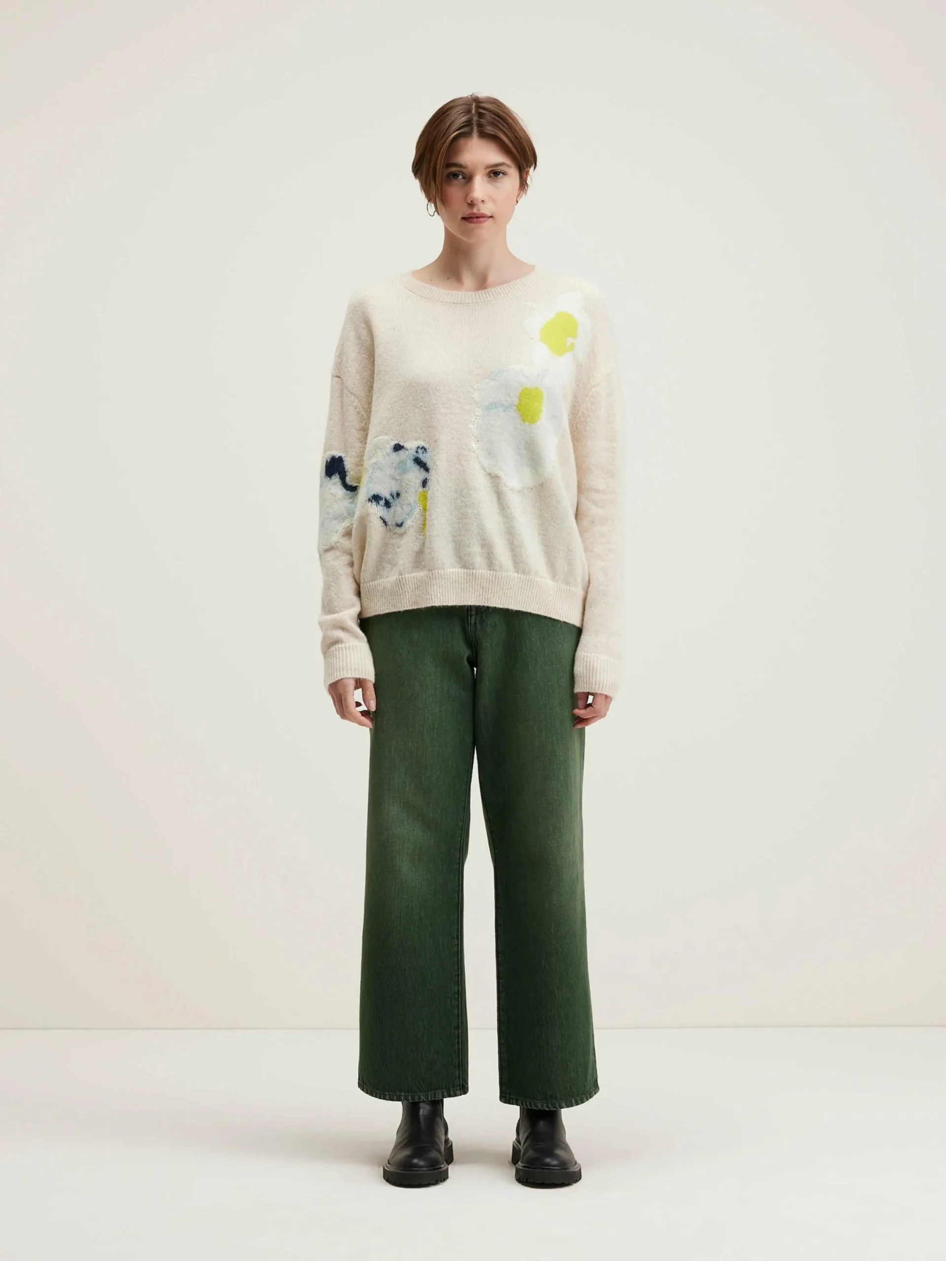 - Intarsia motif fleurs géantes écrasées