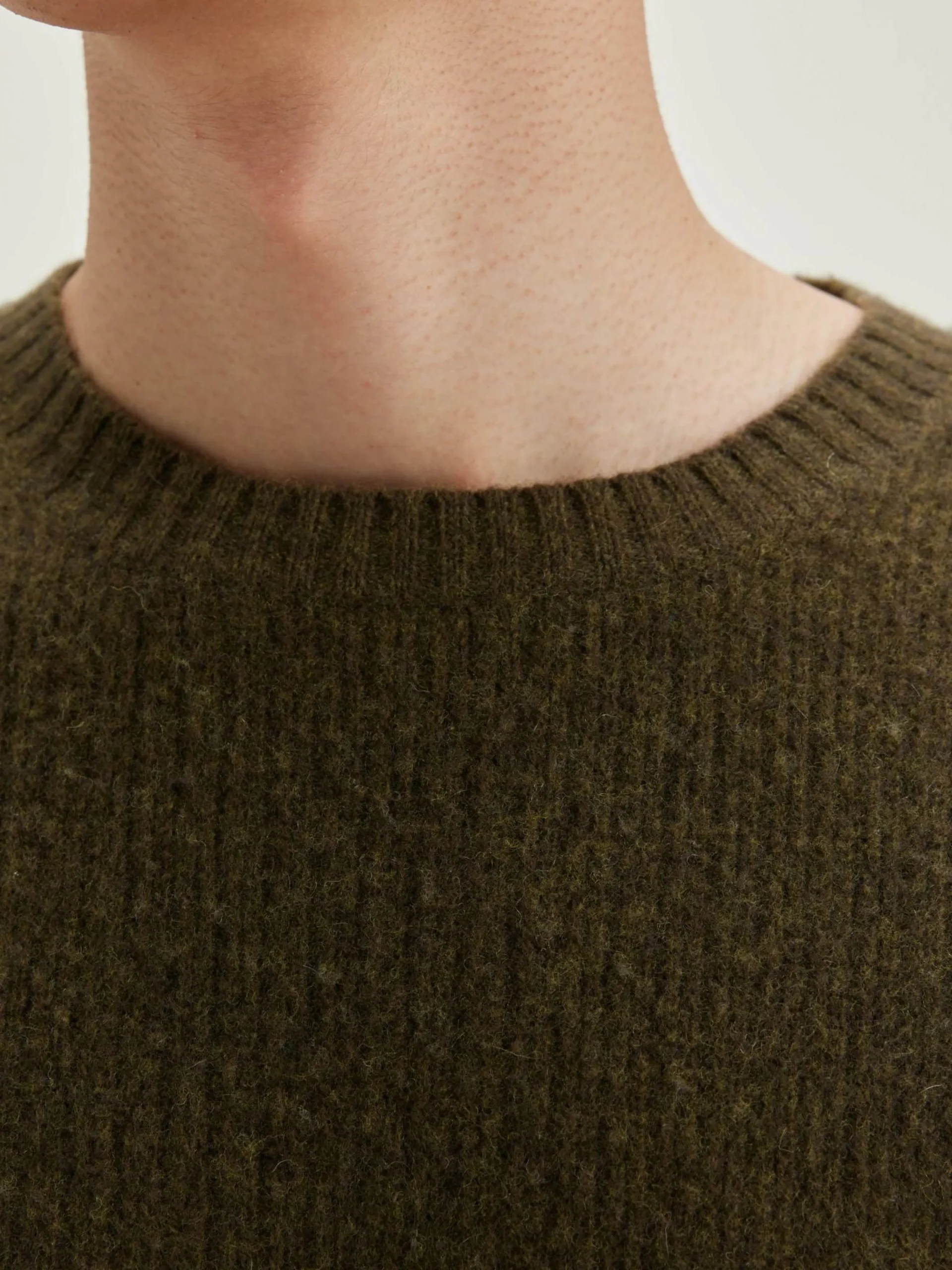 Pull classique tricoté en maille côtelée à partir de laine mérinos vert militaire