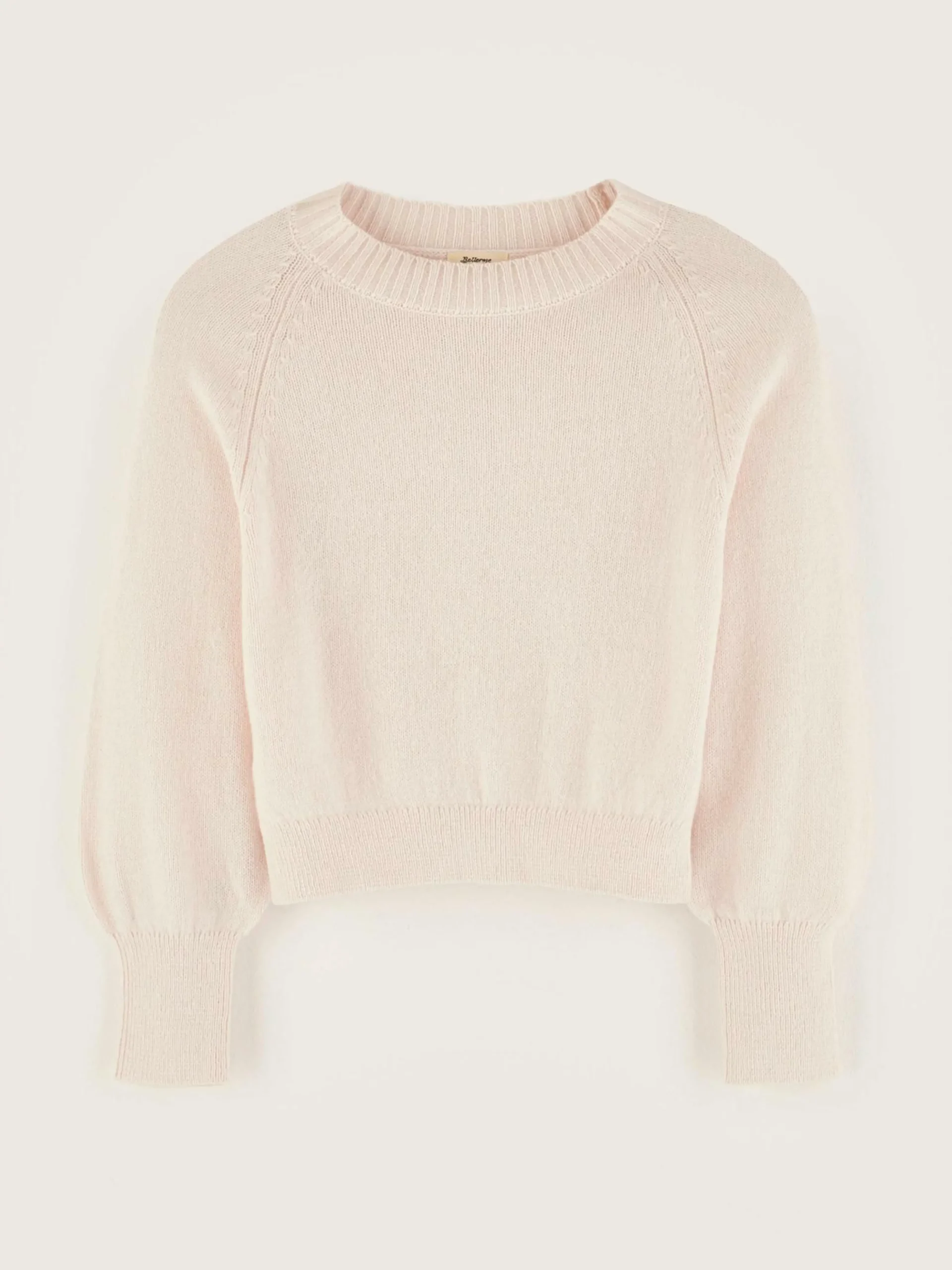 Pull classique a coupe ample de couleur rose pâle.