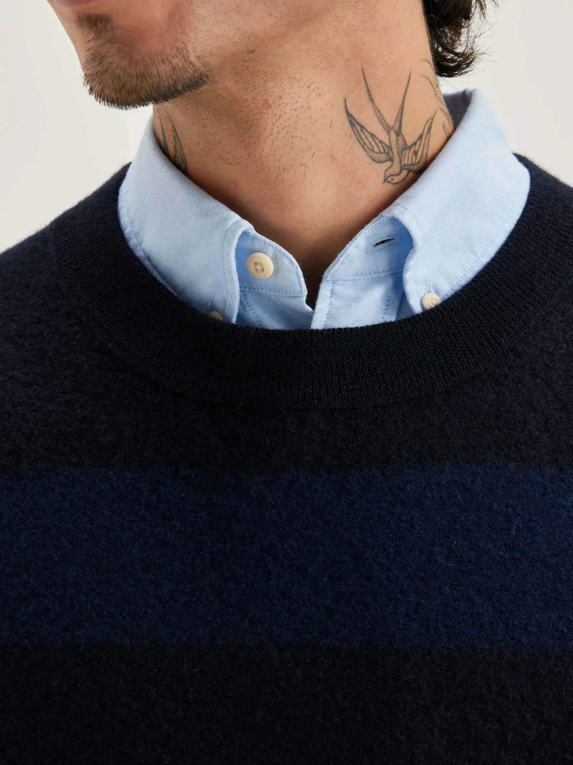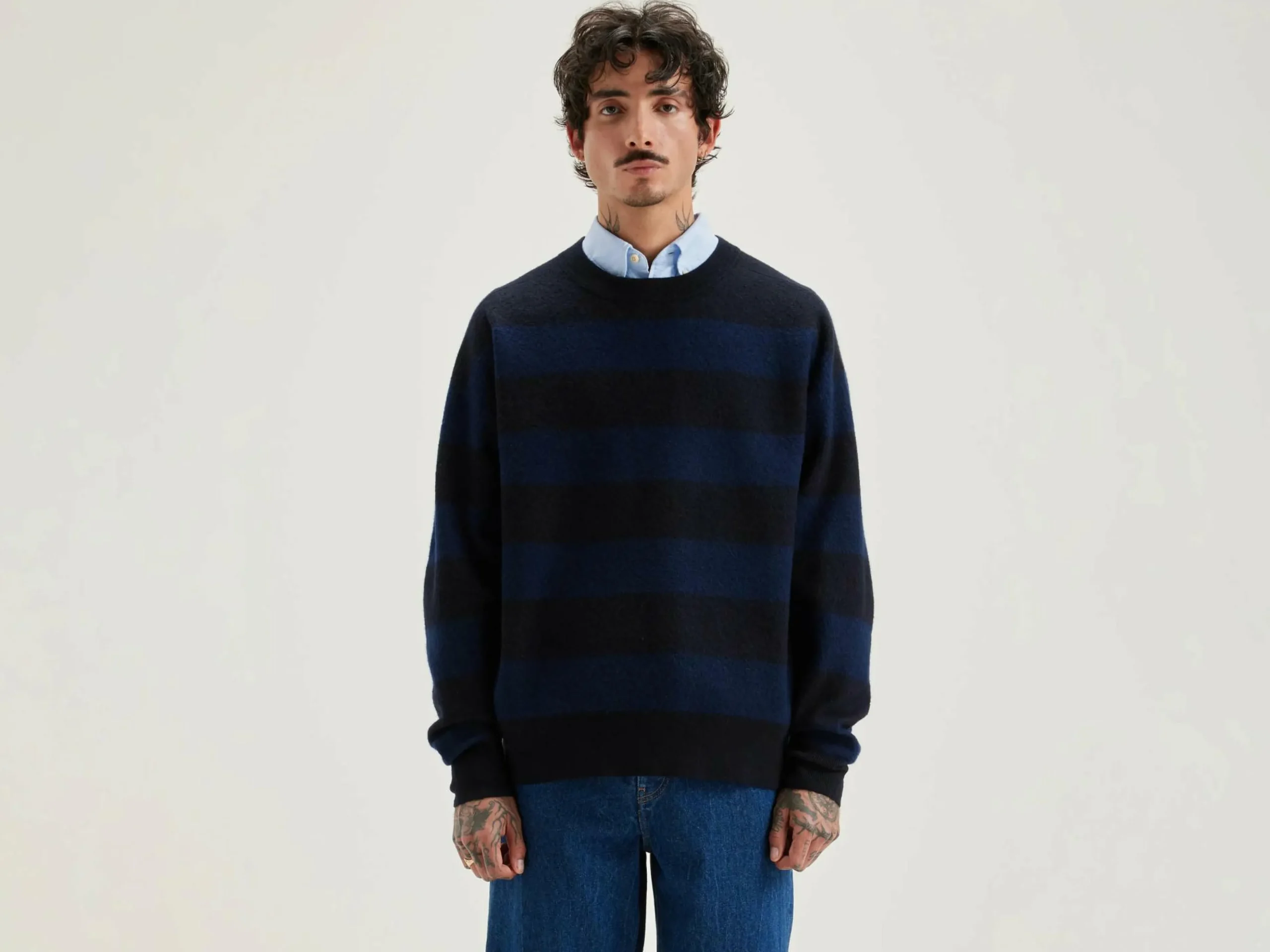 Pull oversize à col rond en laine rayée.