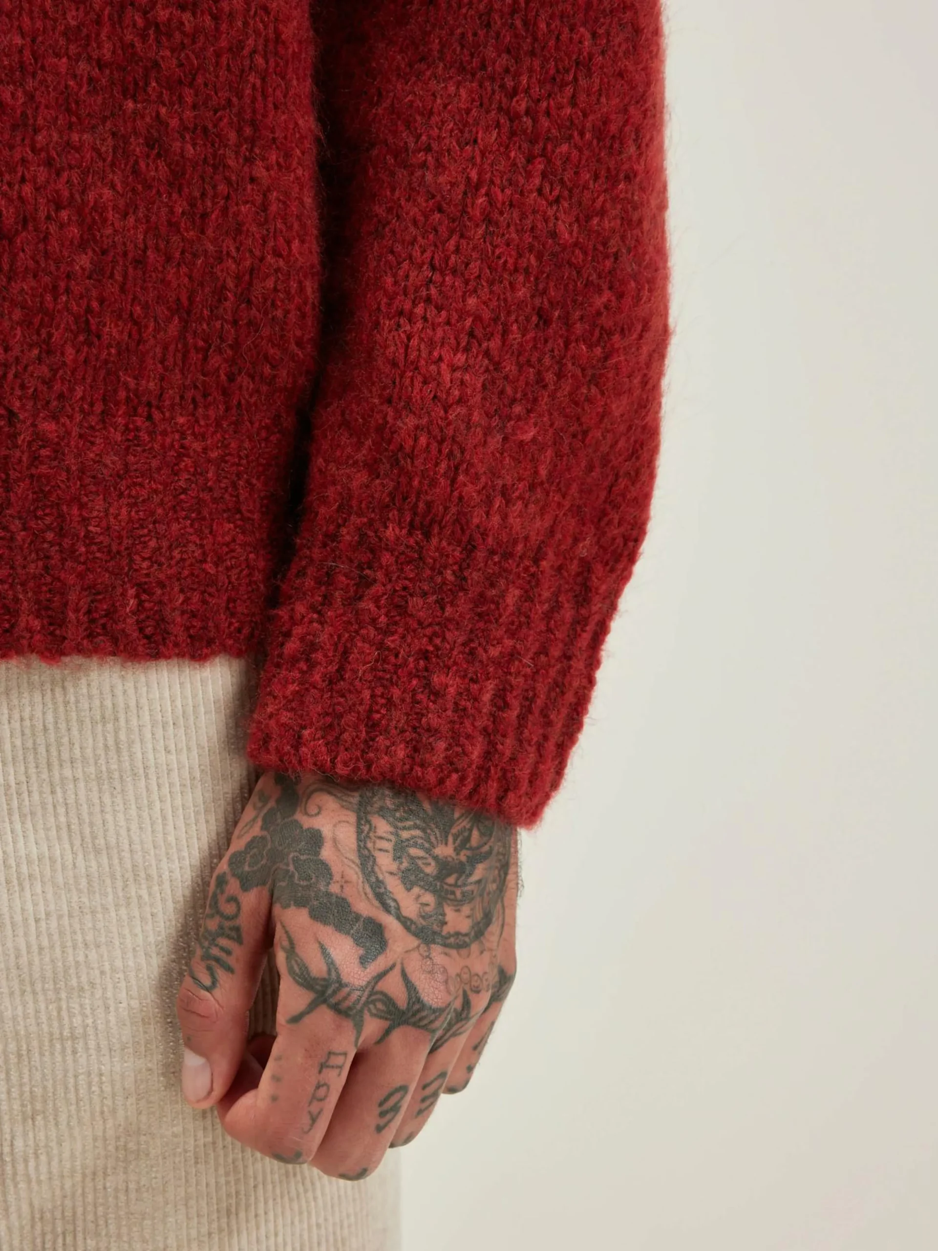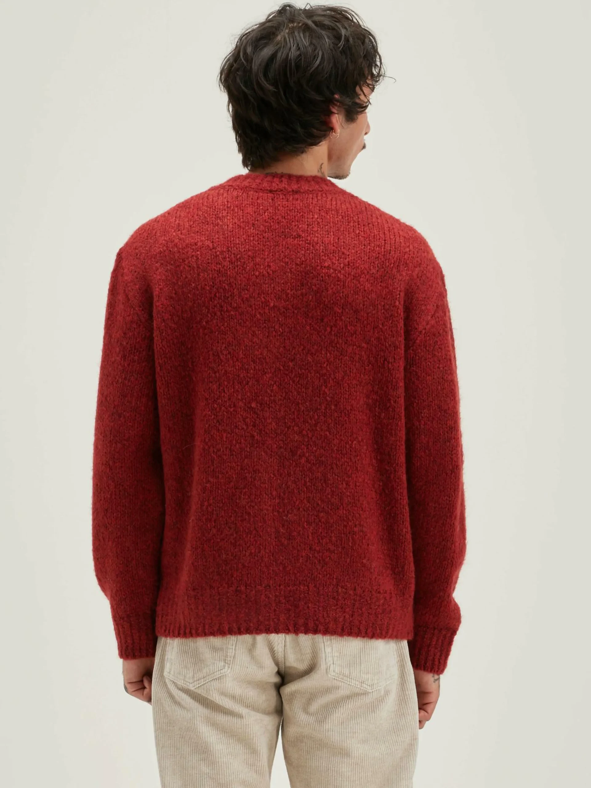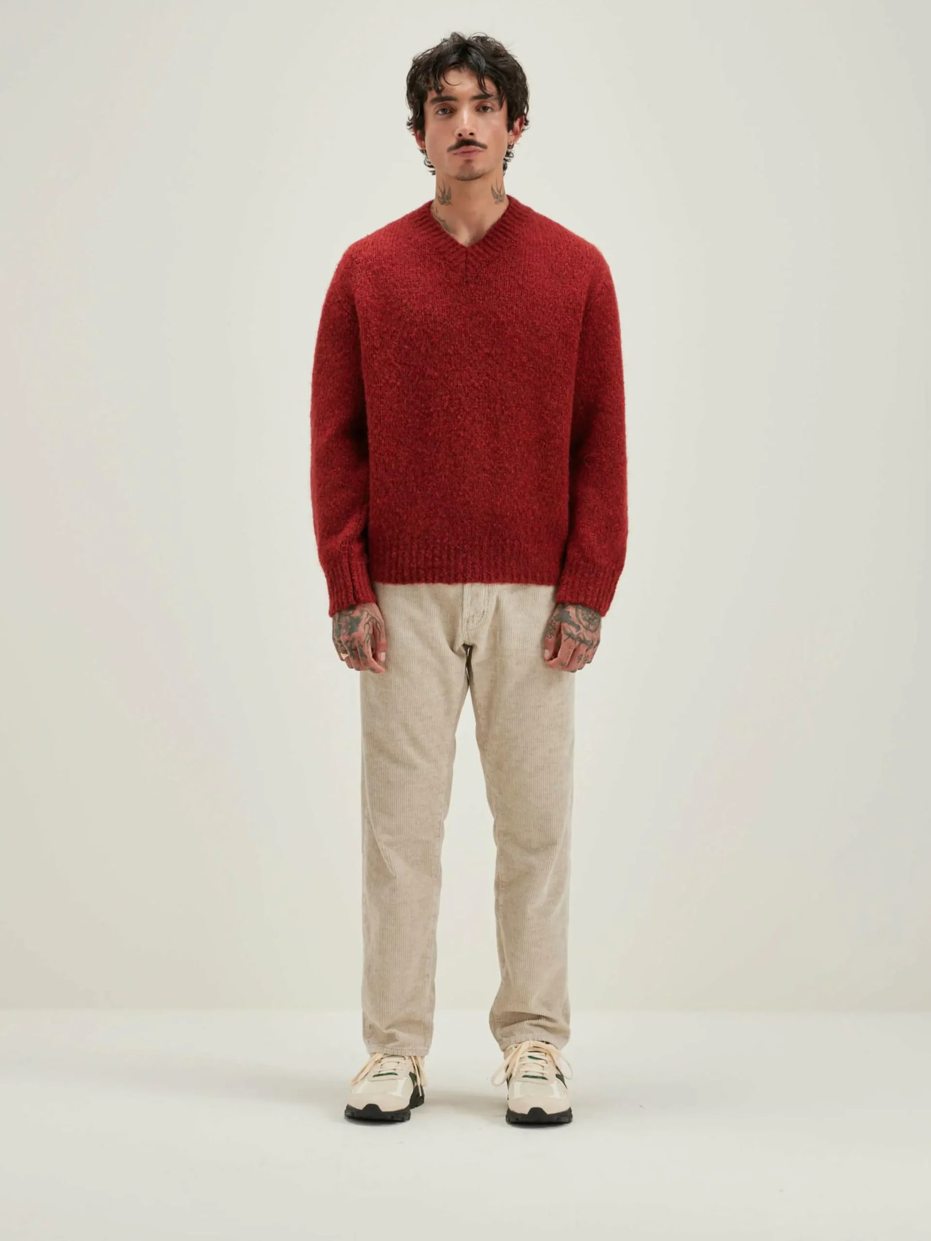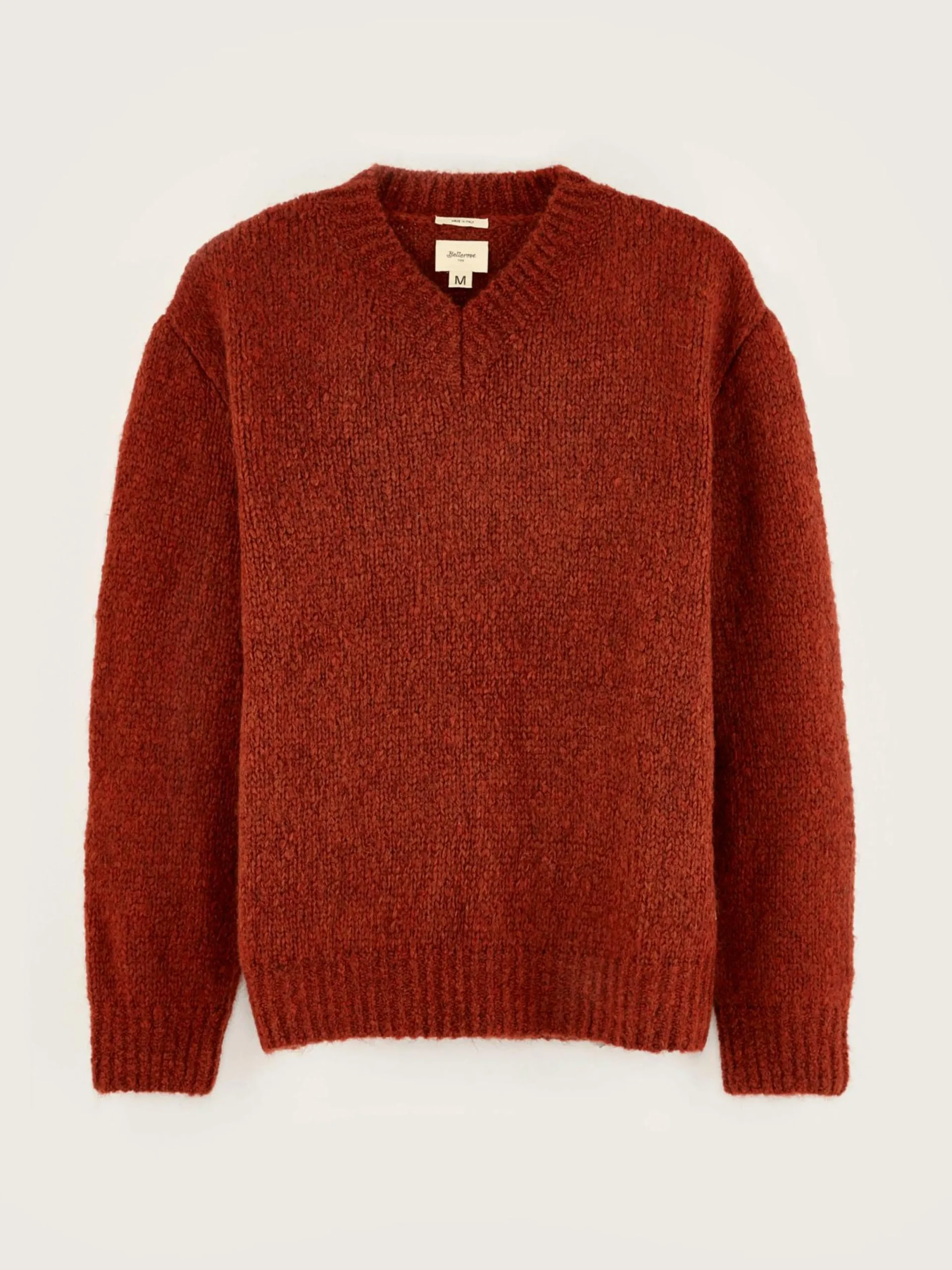 Pull décontracté à col en V, couleur acajou.
