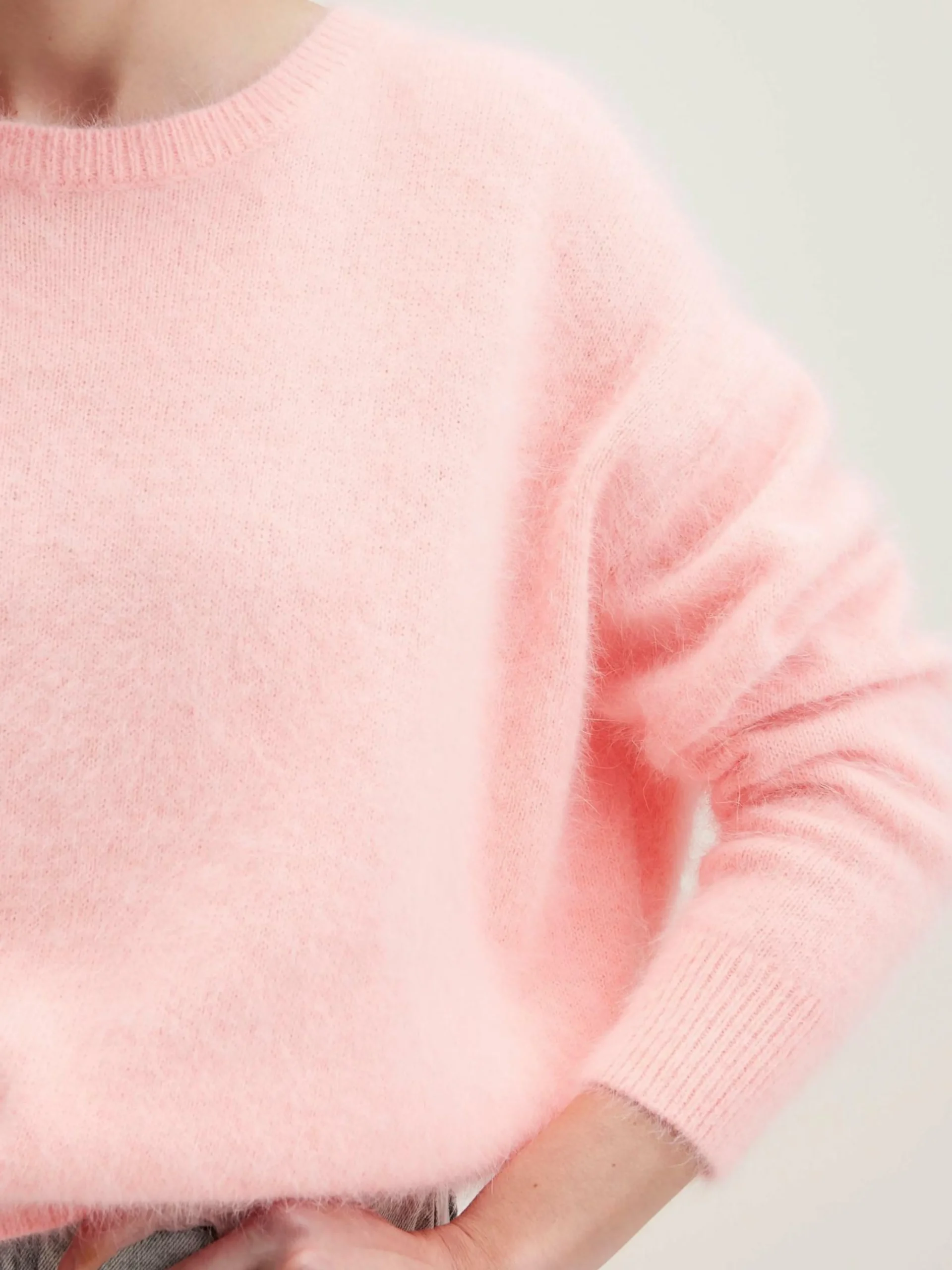 Pull oversize en angora mélangé, col rond, couleur rose tendre.
