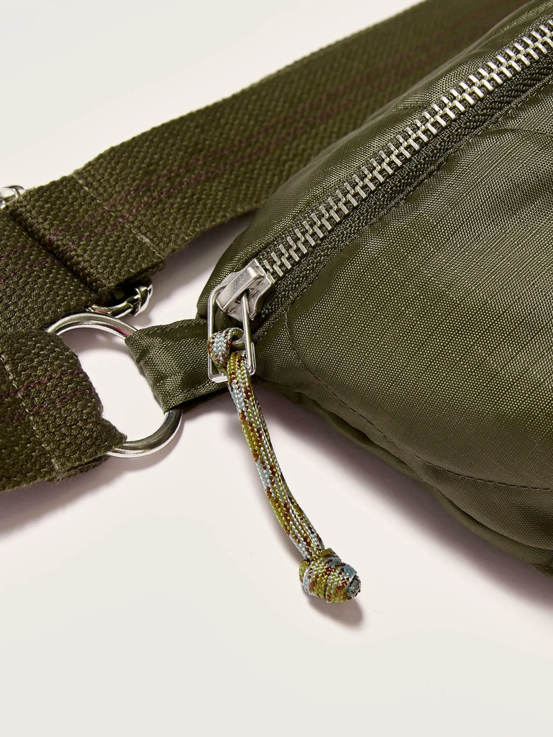 Sac banane zippé en nylon matelassé vert mousse.