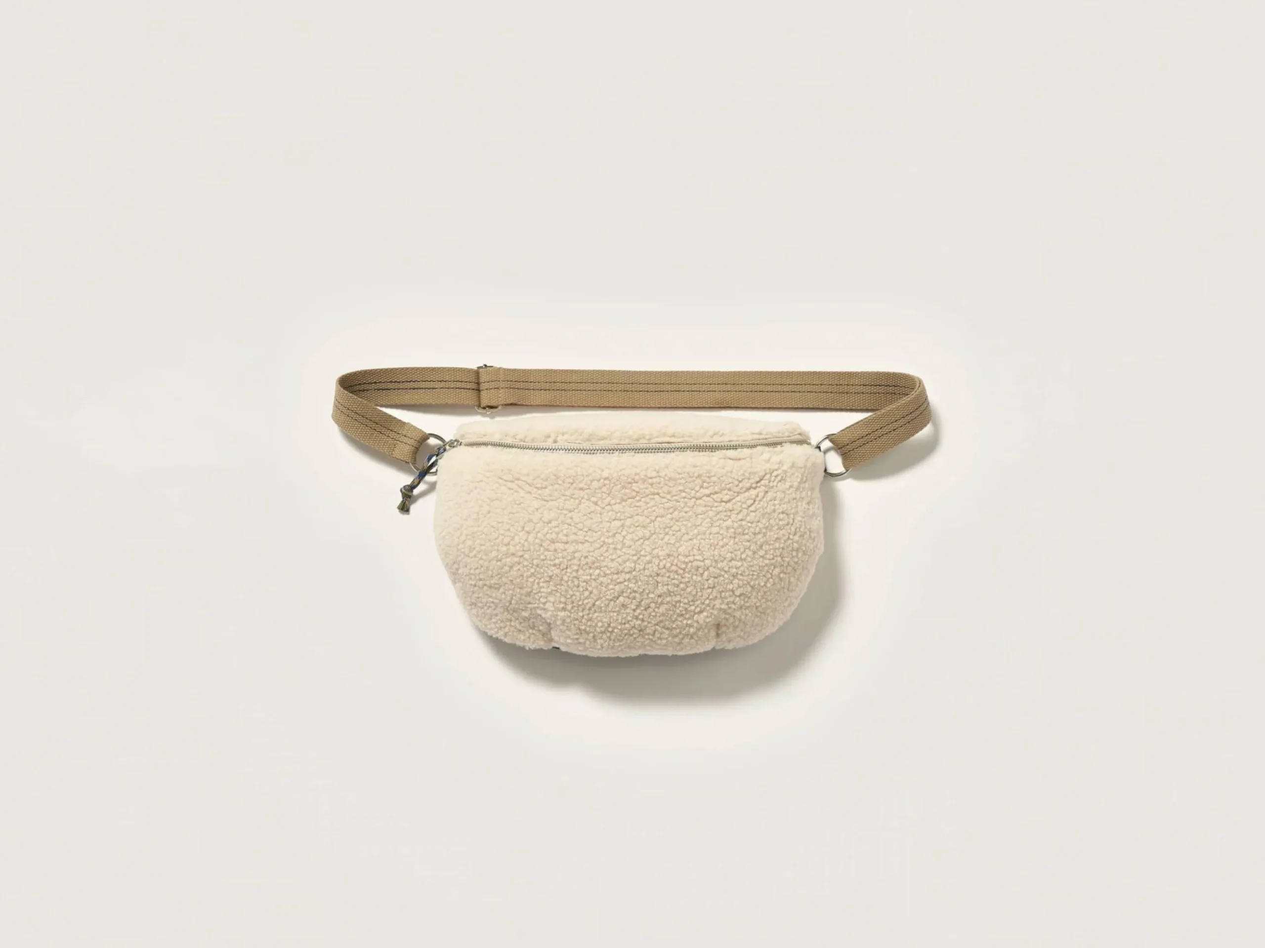 Sac banane zippé en teddy écru.