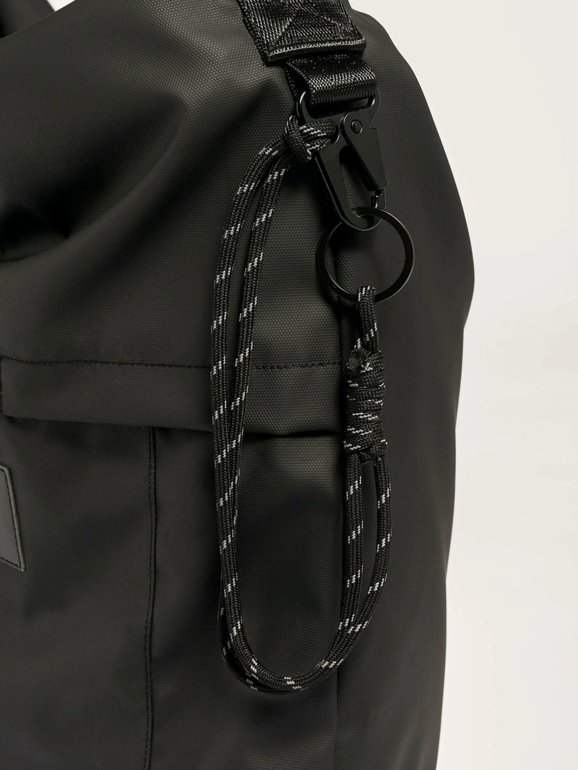 Sac oversize forme hobo en toile enduite noire.