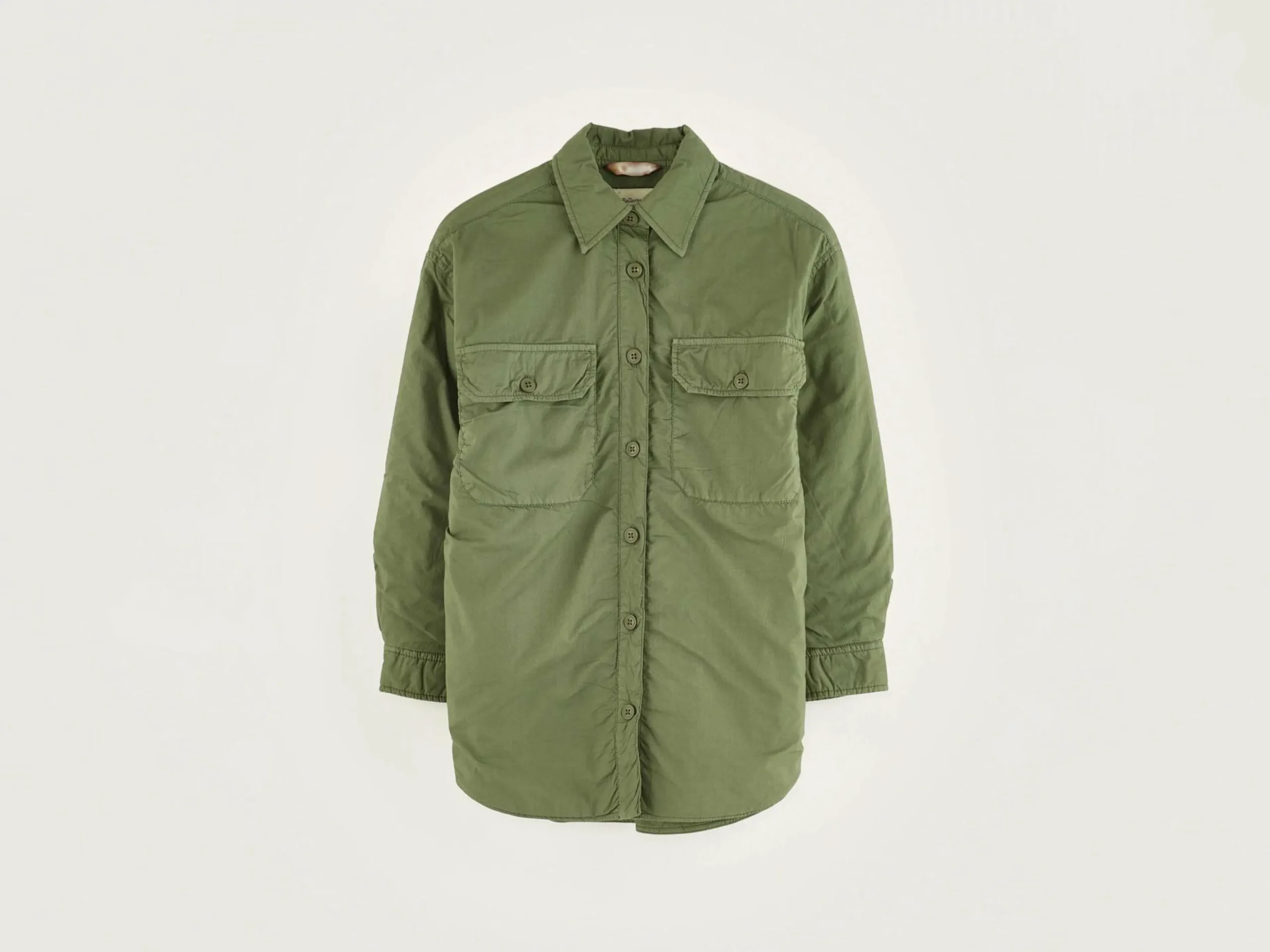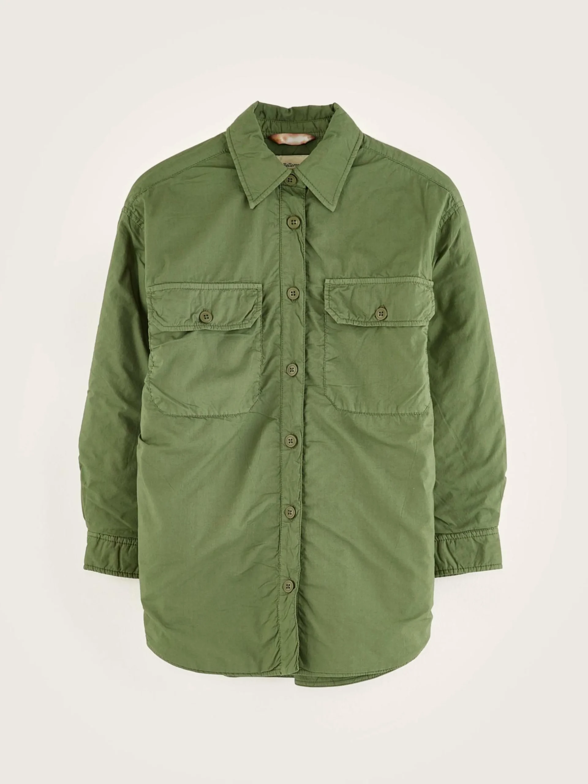 Surchemise oversize matelassée en popeline de coton vert kaki.