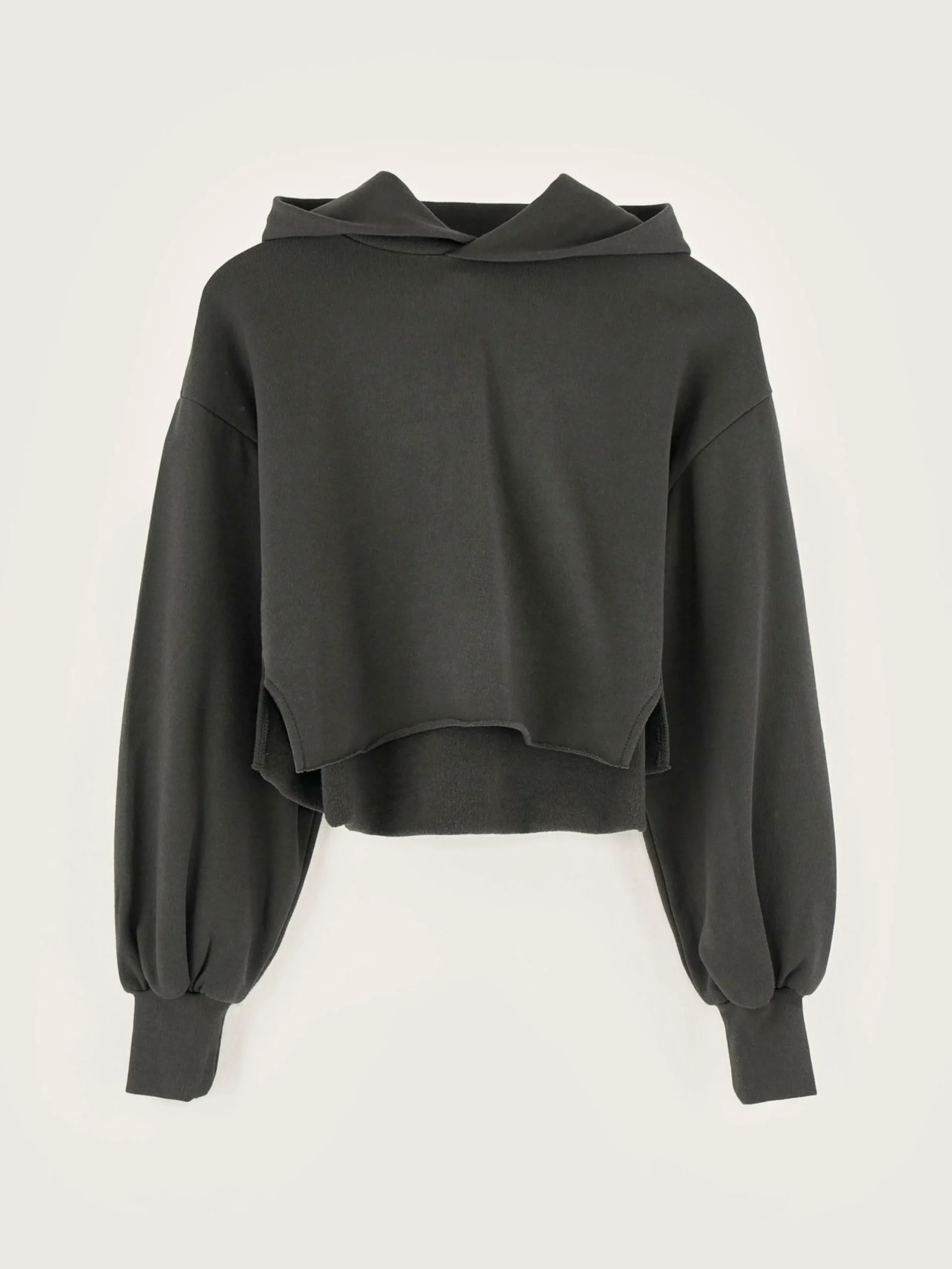 Sweatshirt boxy à capuche en jersey éponge de couleur noire.