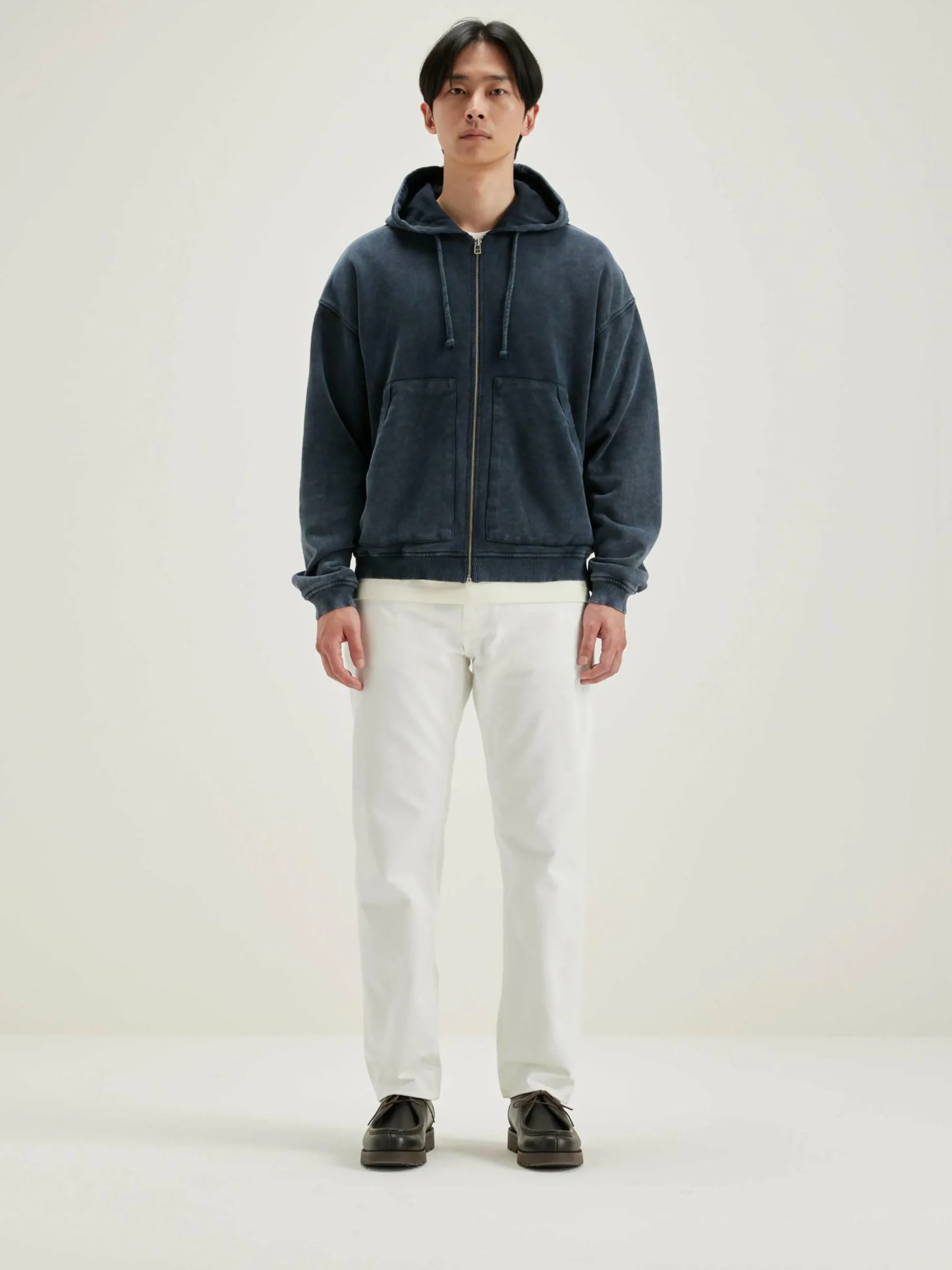 Sweatshirt oversize à capuche en jersey de coton épais couleur bleu-noir.