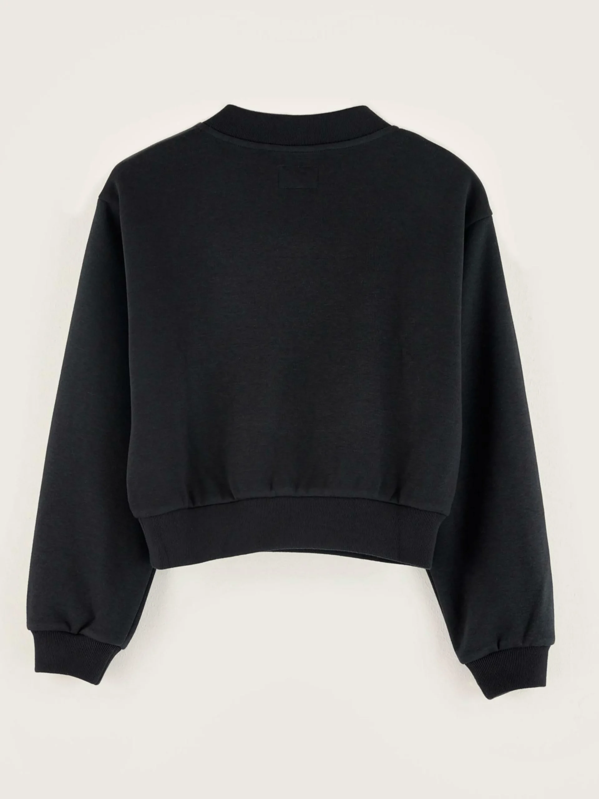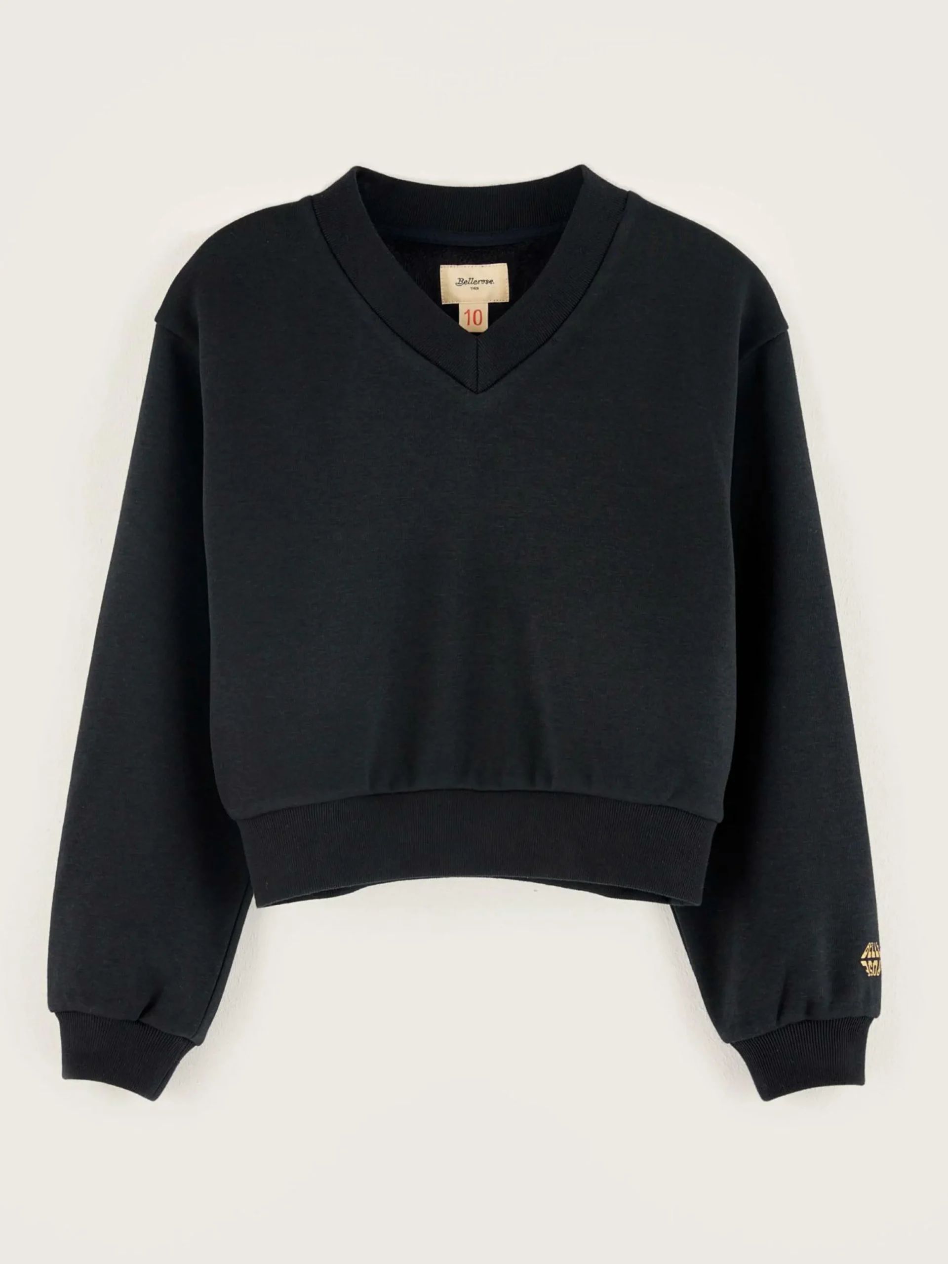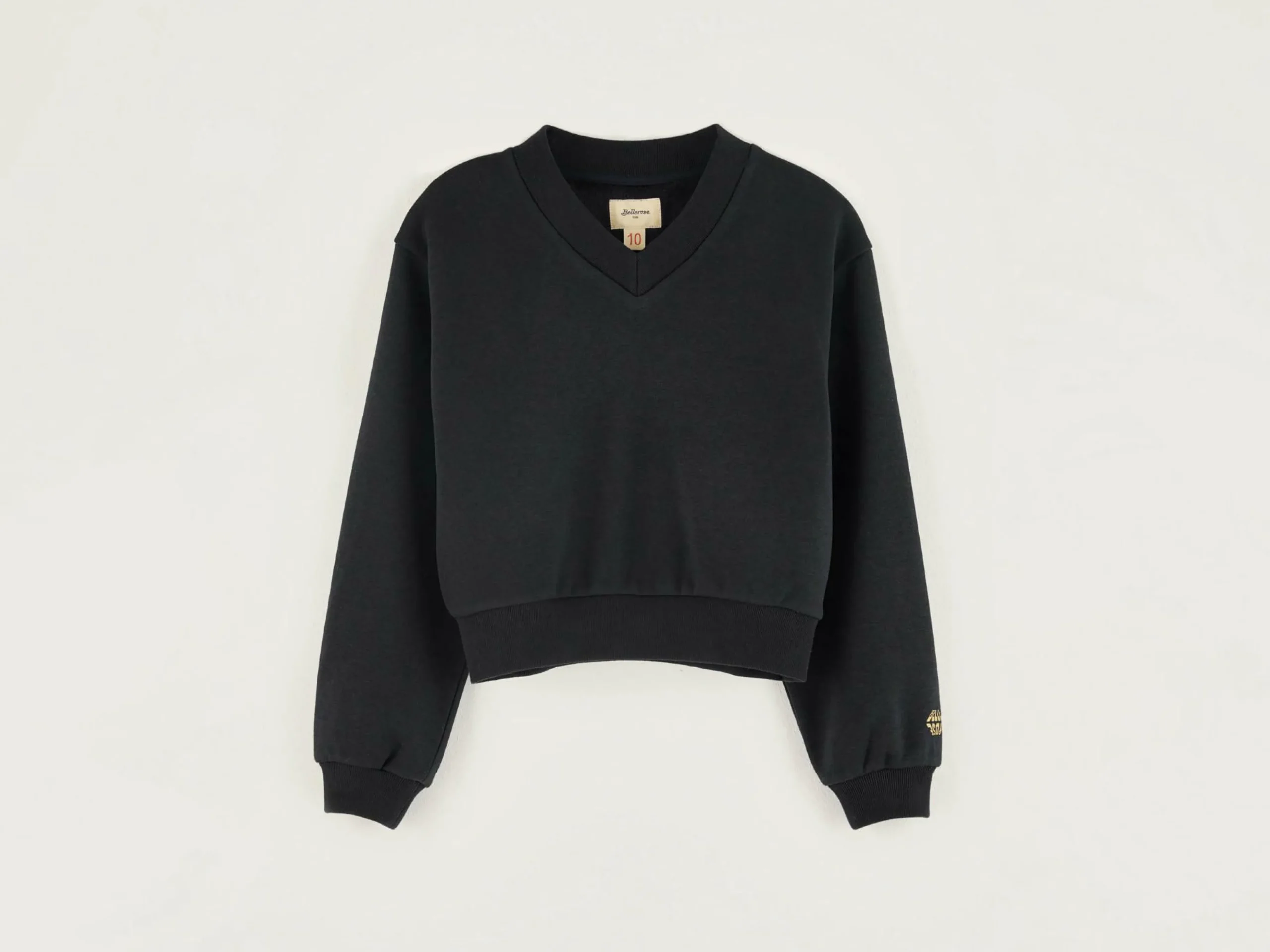 Sweatshirt décontracté à col V, en jersey bleu foncé.
