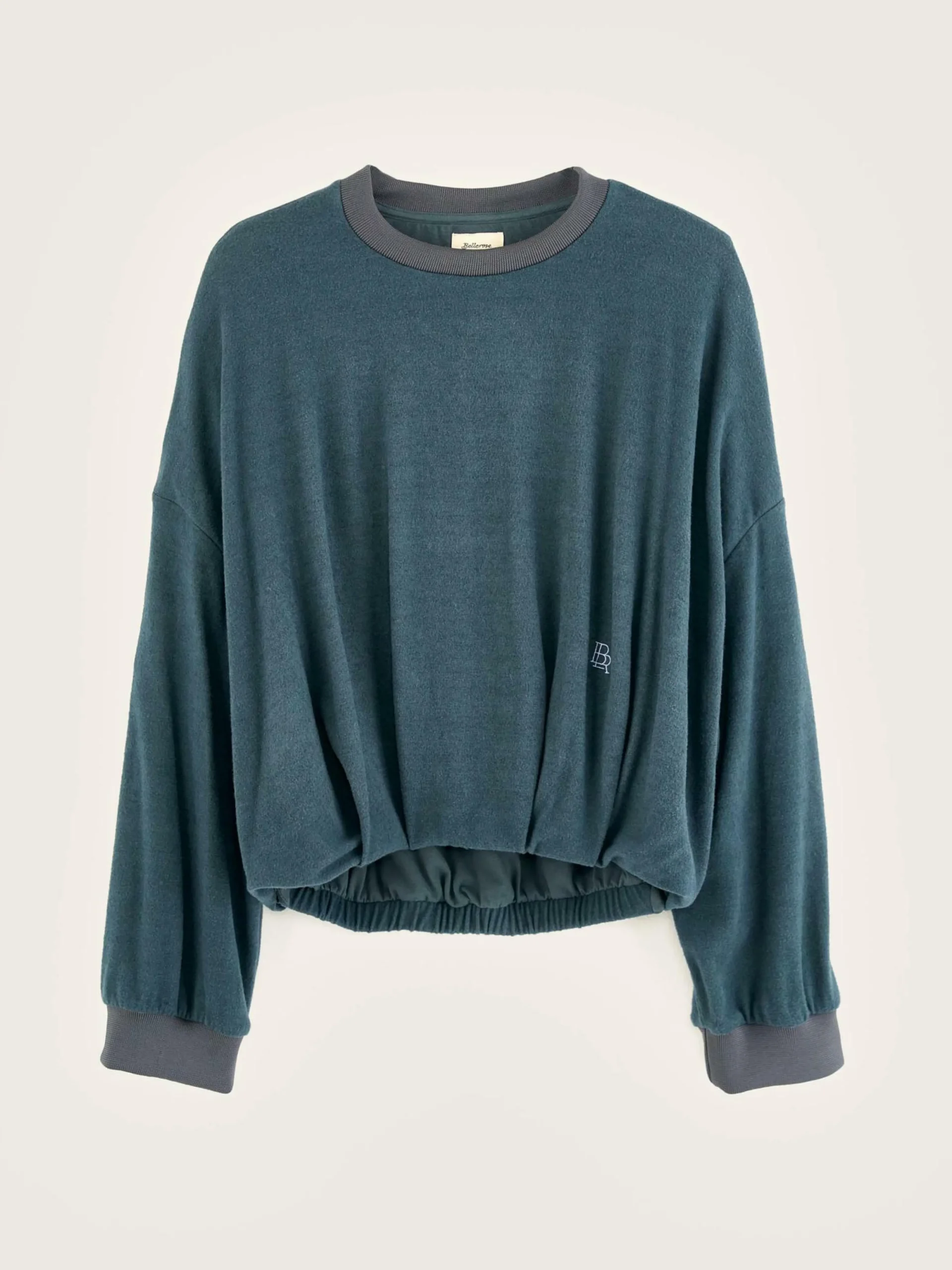 Sweatshirt à coupe volumineuse et épaules tombantes en jersey gris foncé.