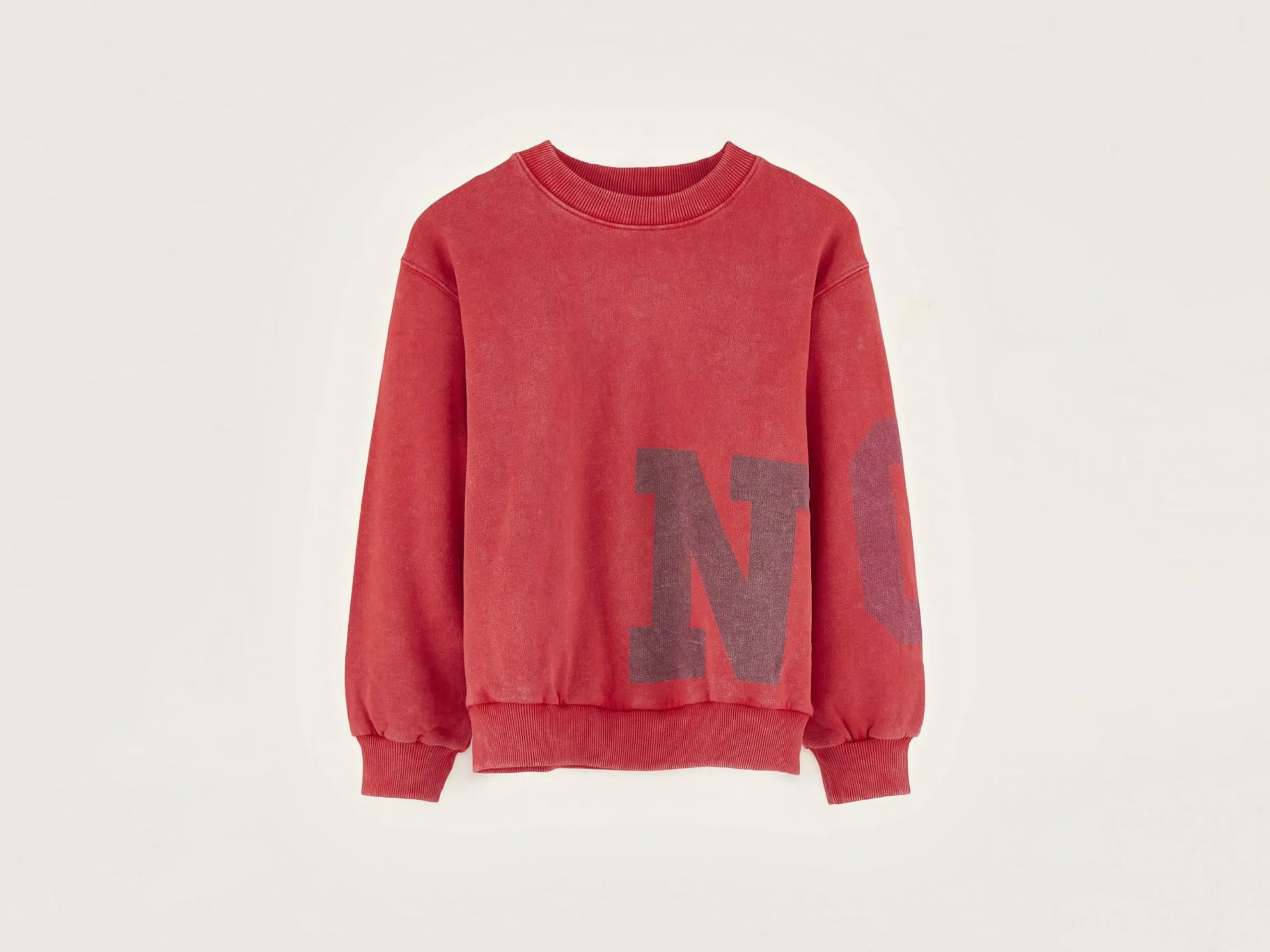 Sweatshirt décontracté à col rond en jersey brossé rouge cardinal avec impression « Nola » sur le devant et tigre dans le dos.