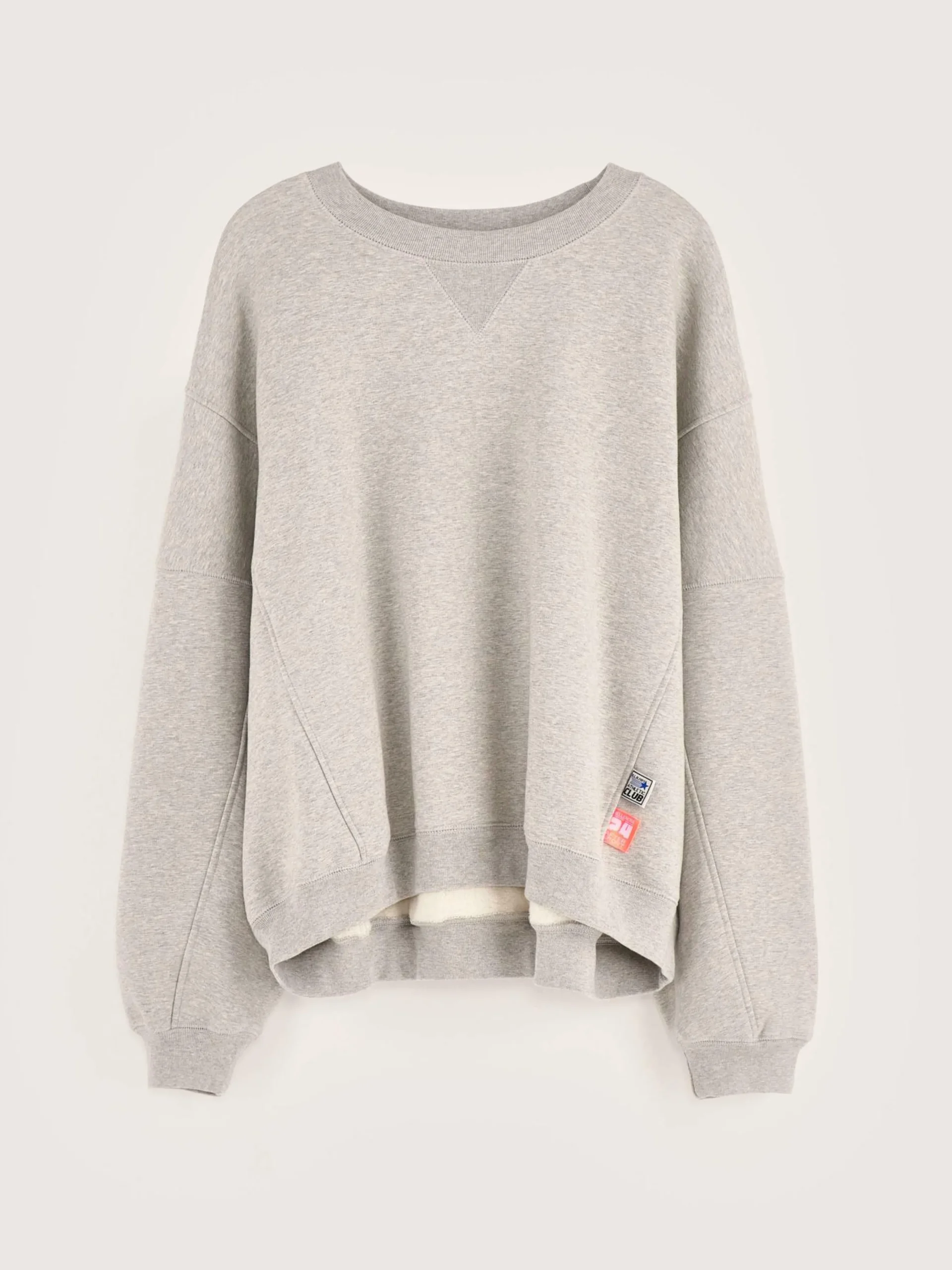 Sweatshirt oversize en jersey gris chiné avec détails contrastants.