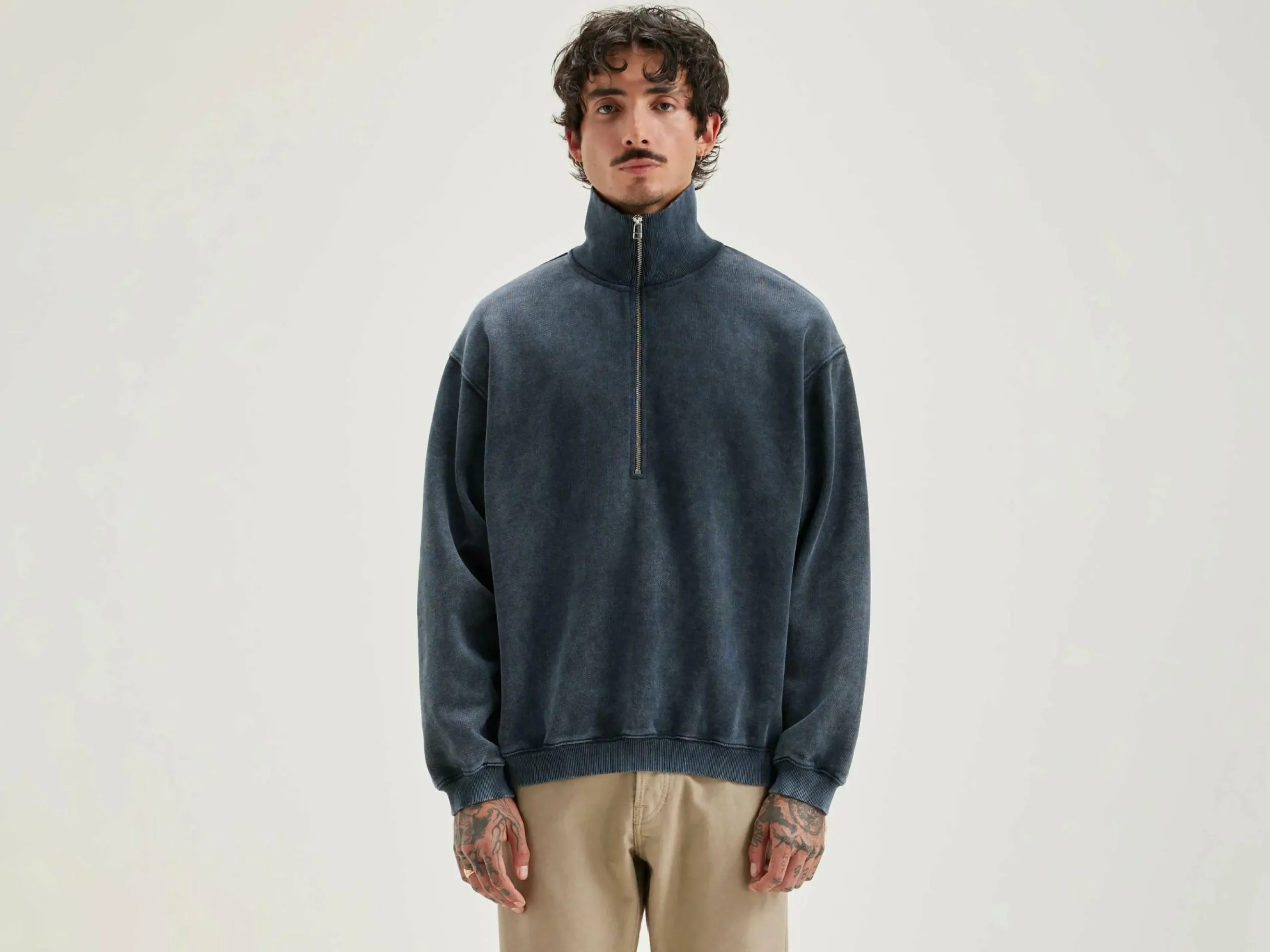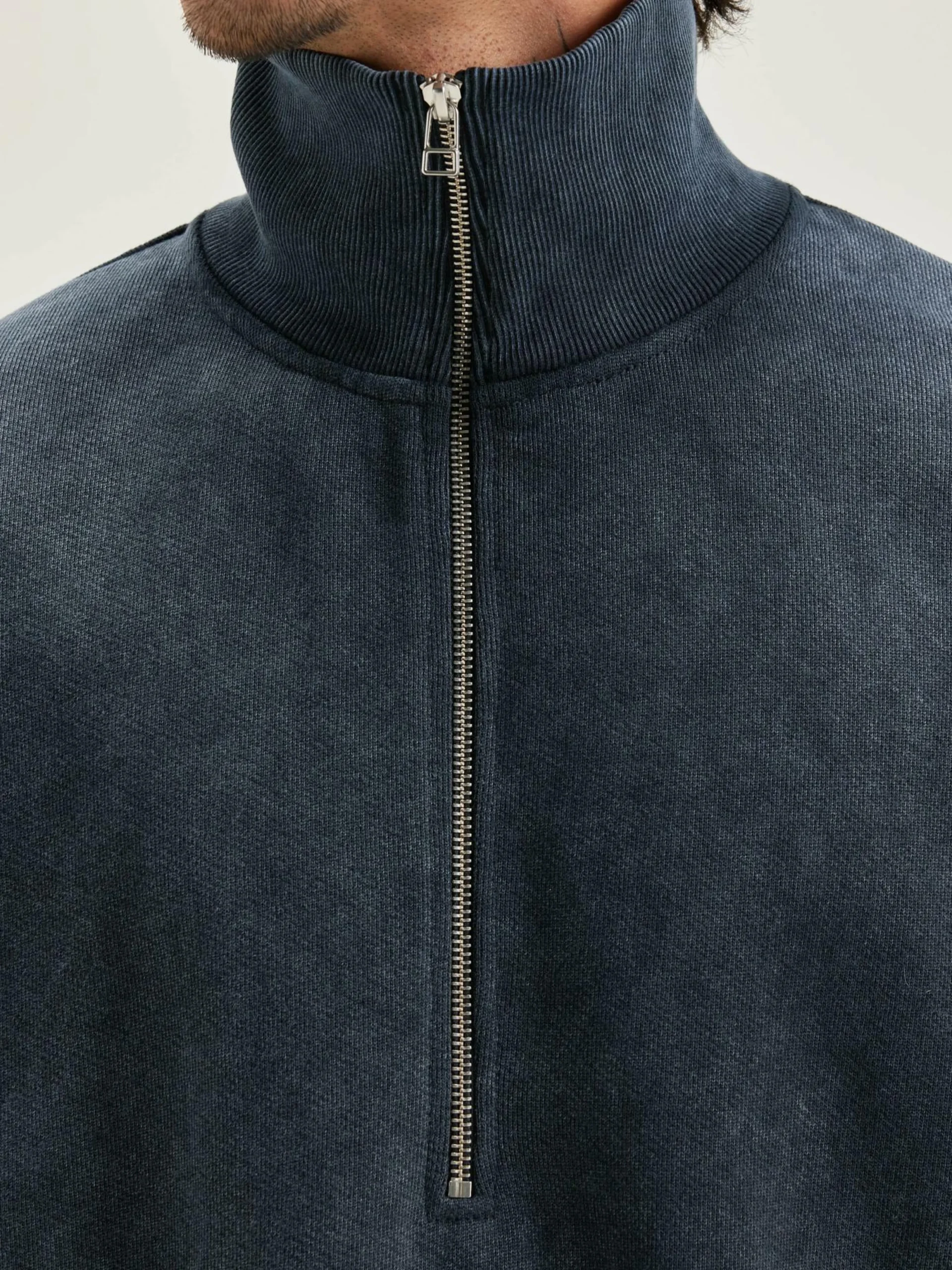 Sweatshirt décontracté à col zippé en jersey de coton noir-bleu.