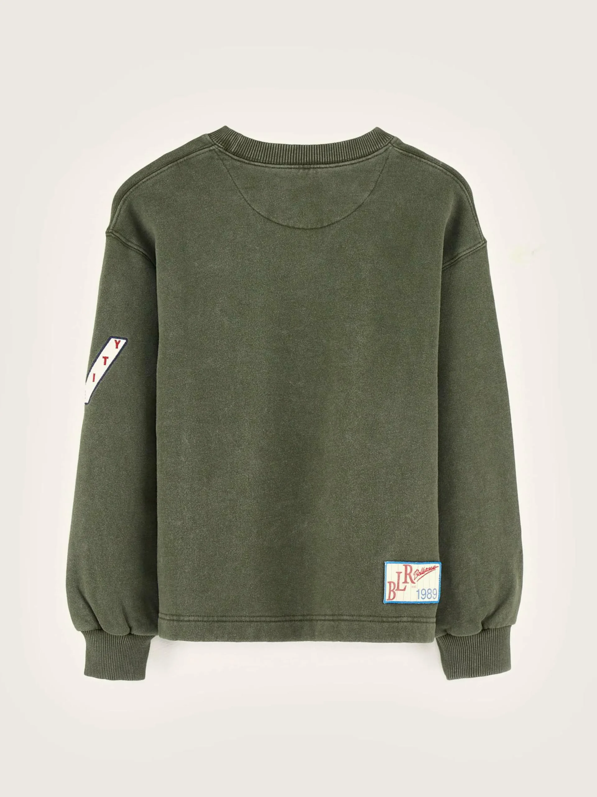 Sweatshirt décontracté, coupe droite en jersey brossé vert mousse.