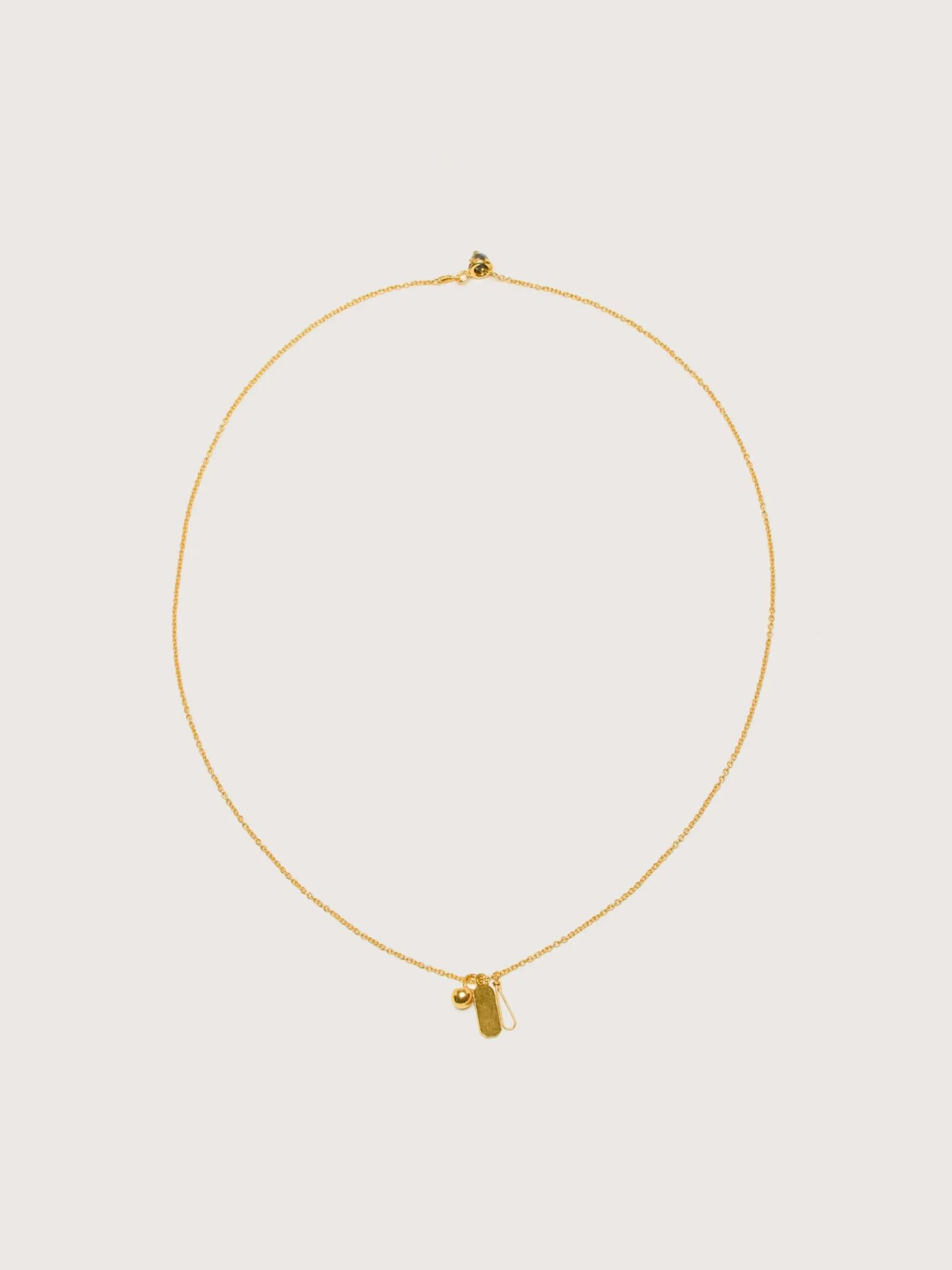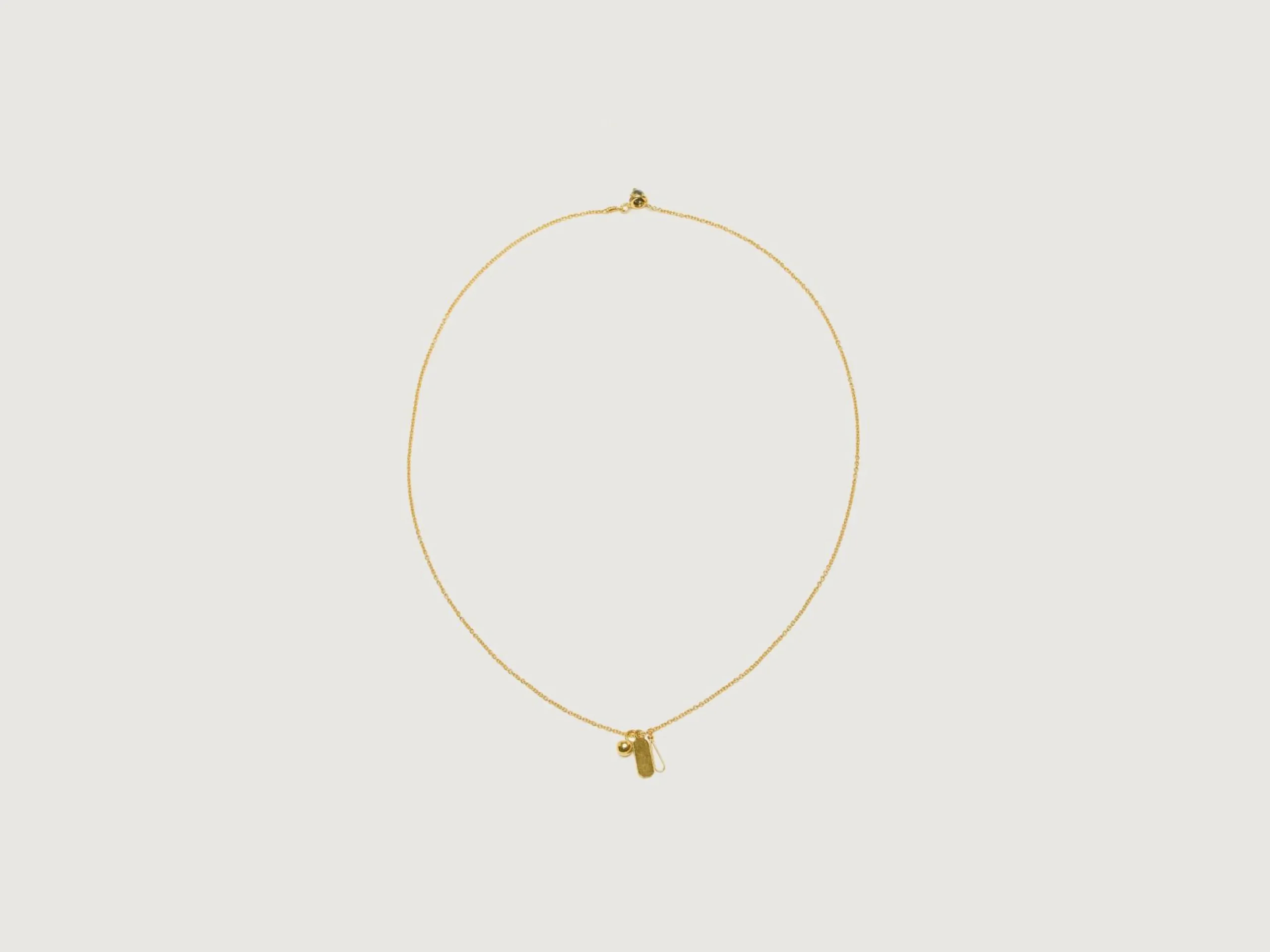 The GilbertGilbert Golden Pendant necklace features a long chain with golden pendants.