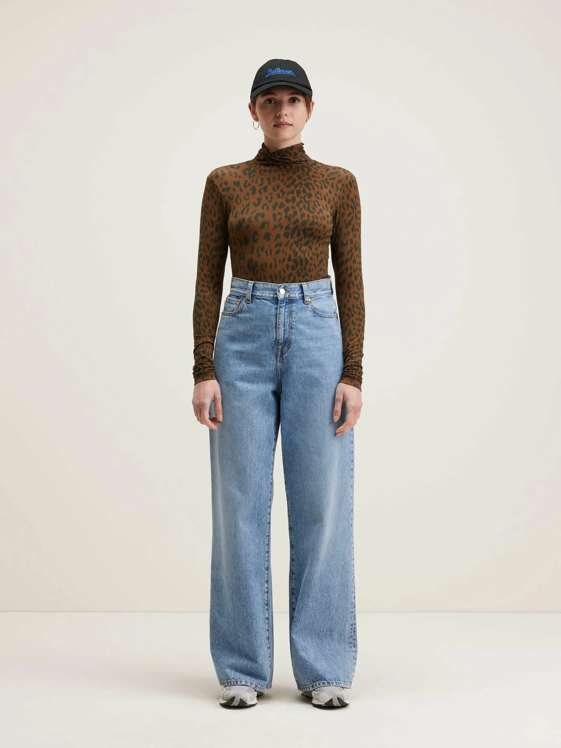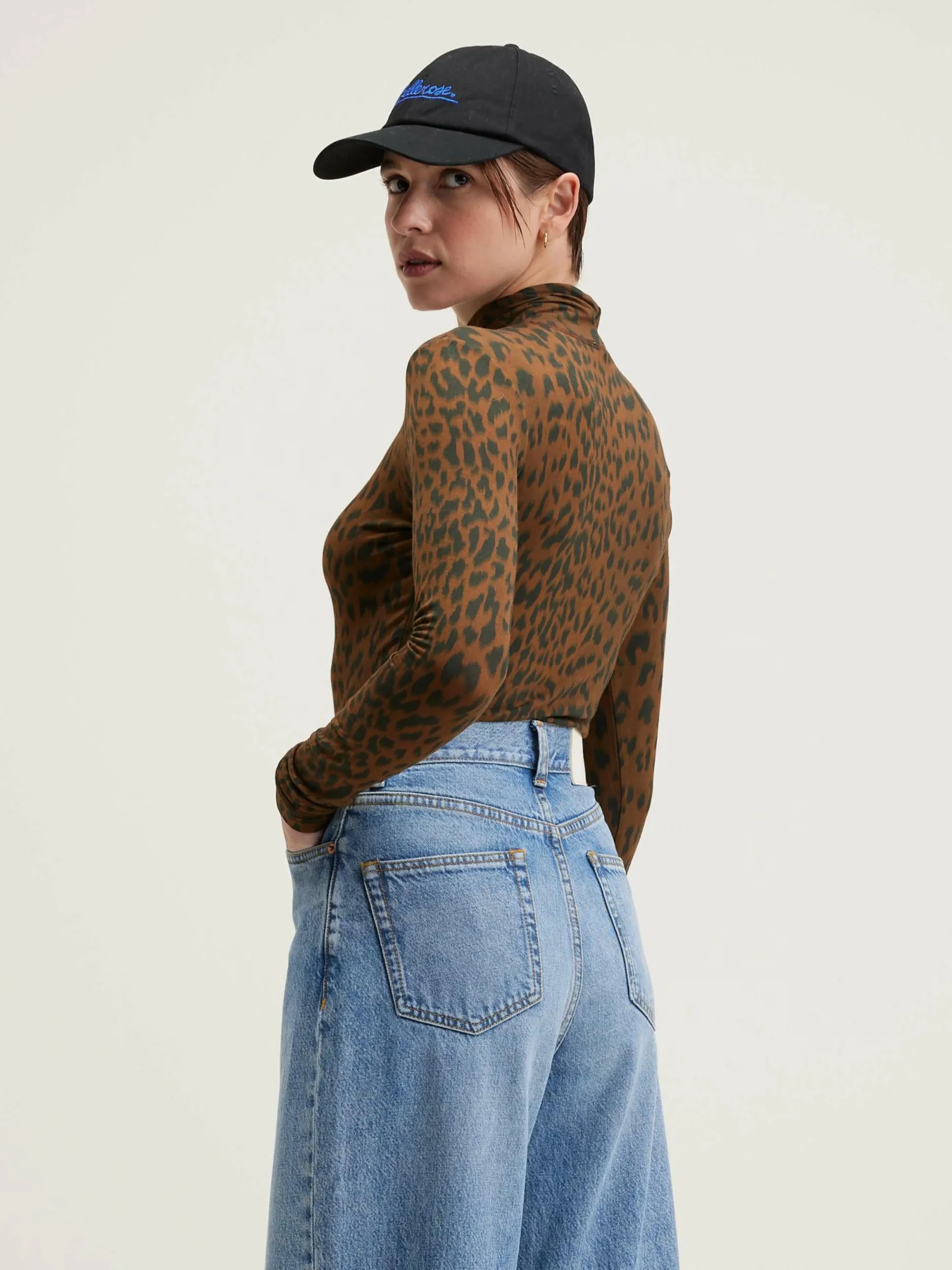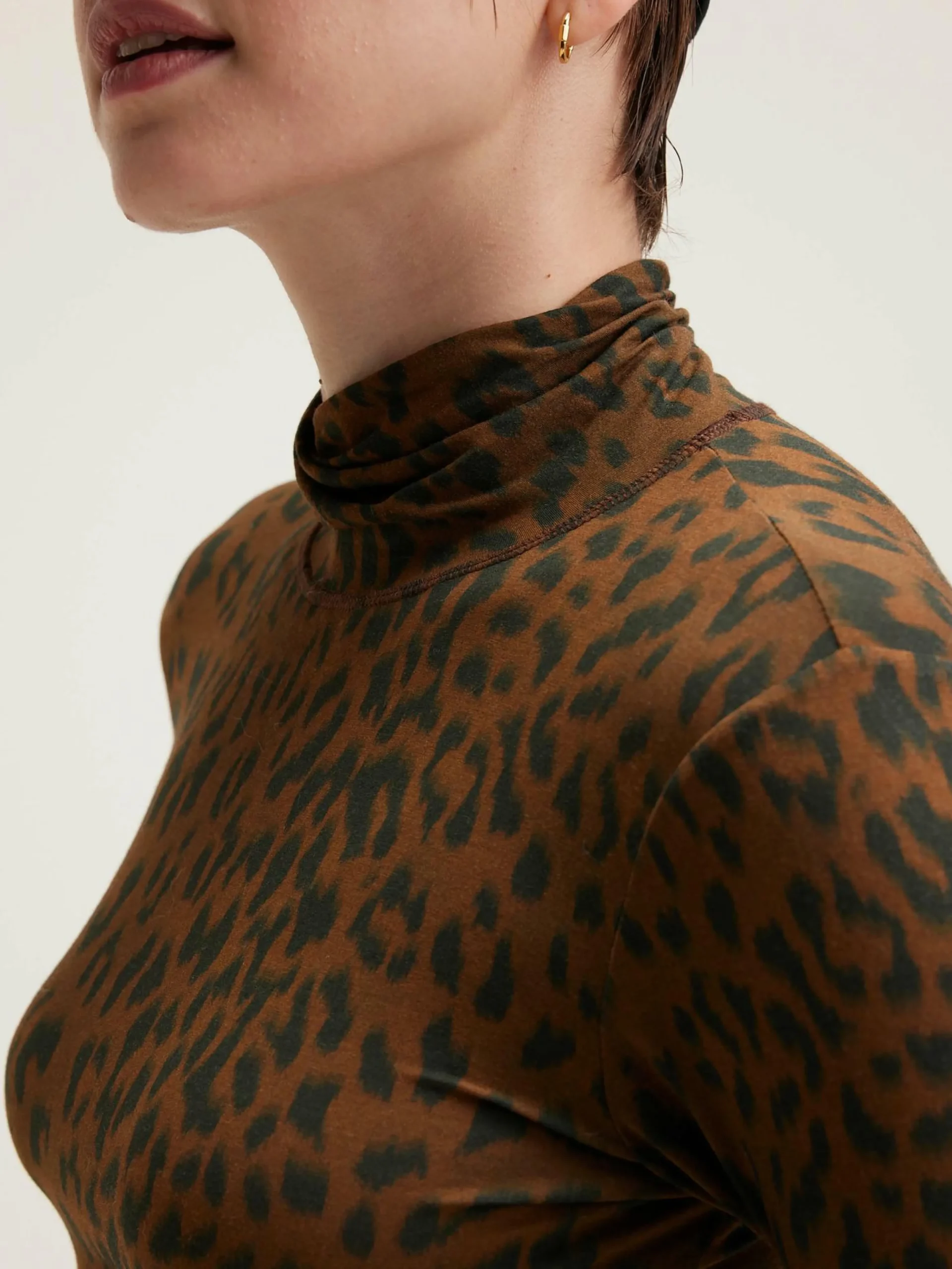 T-shirt à manches longues, coupe slim et col montant, en tissu effet seconde peau imprimé léopard.