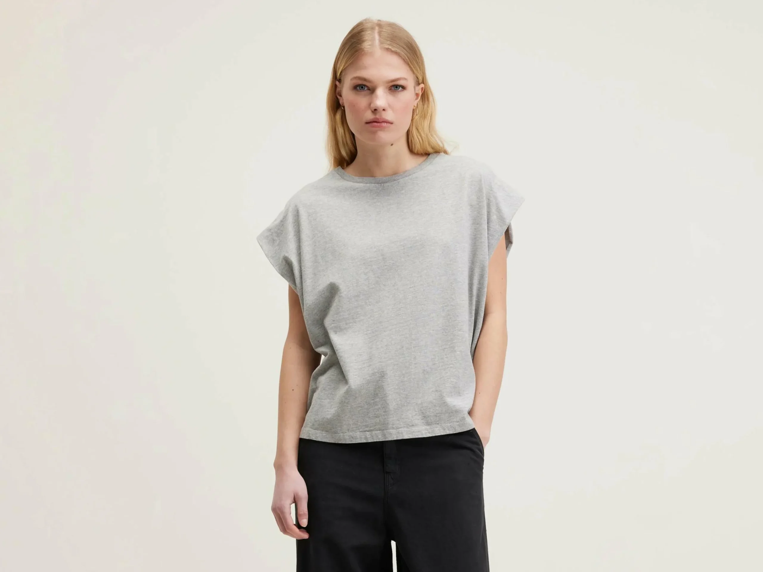 T-shirt avec épaules pliées et col rond en jersey de coton gris chiné.