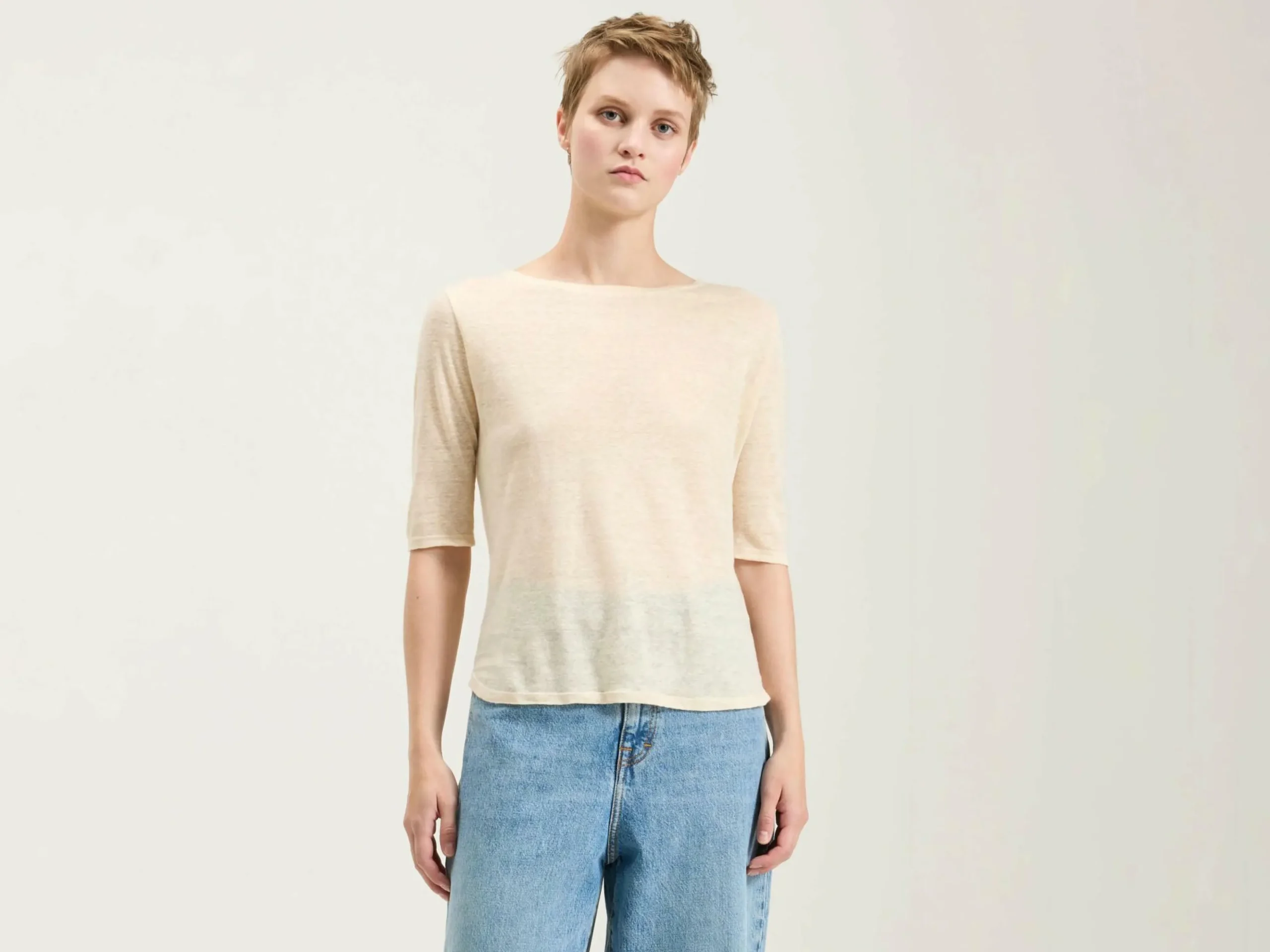 T-shirt slim à encolure dégagée et manches courtes en jersey de coton écru.