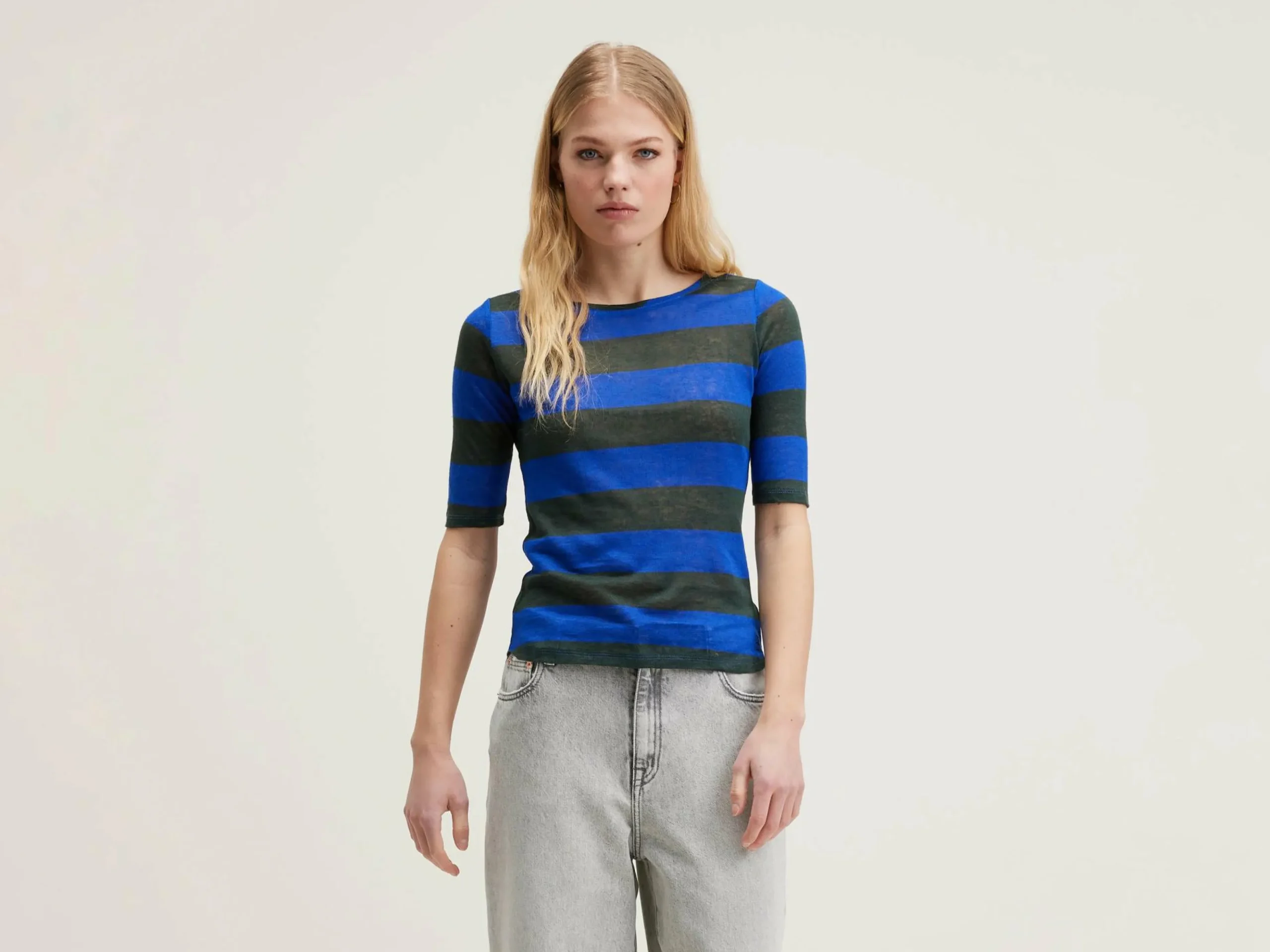 T-shirt slim, en lin rayé.