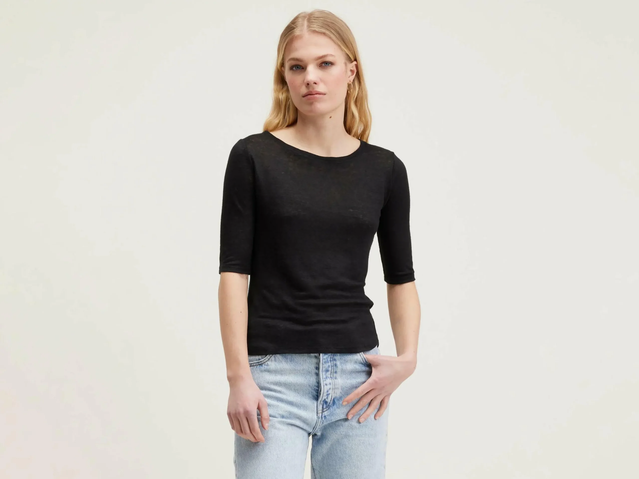 T-shirt slim à encolure dégagée et manches courtes en jersey de coton noir.