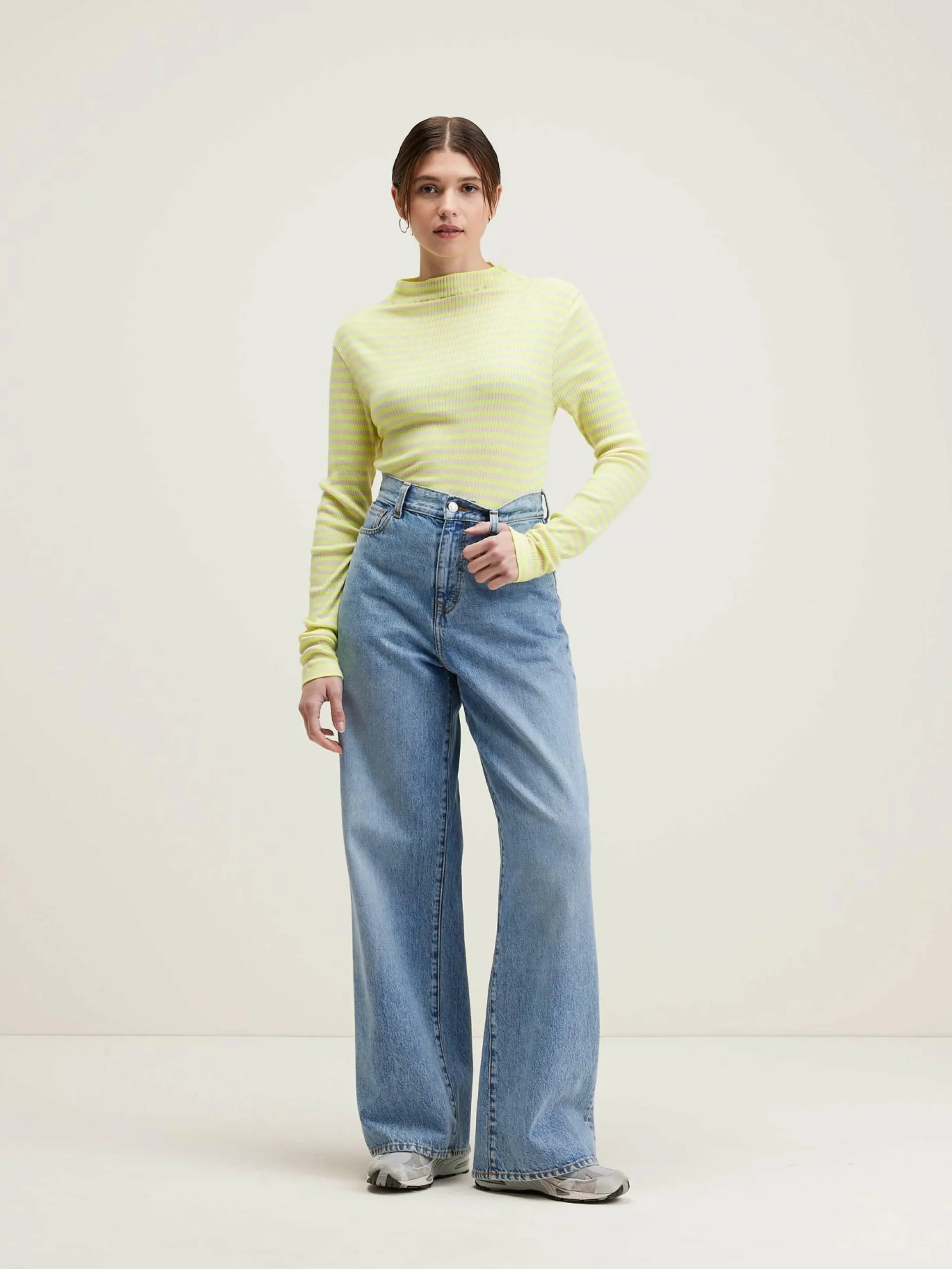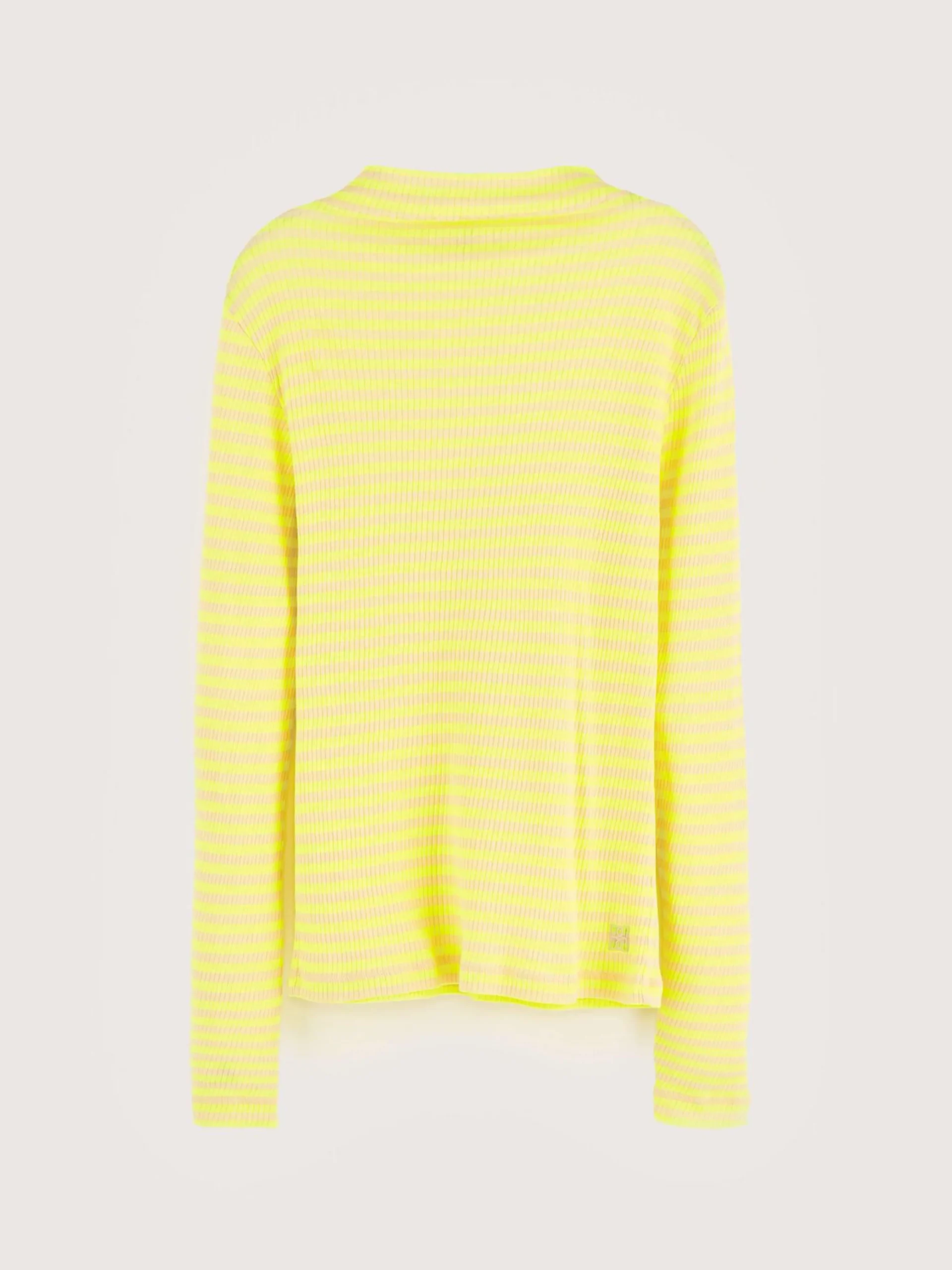 T-shirt slim fit léger, en jersey côtelé et rayé jaune.