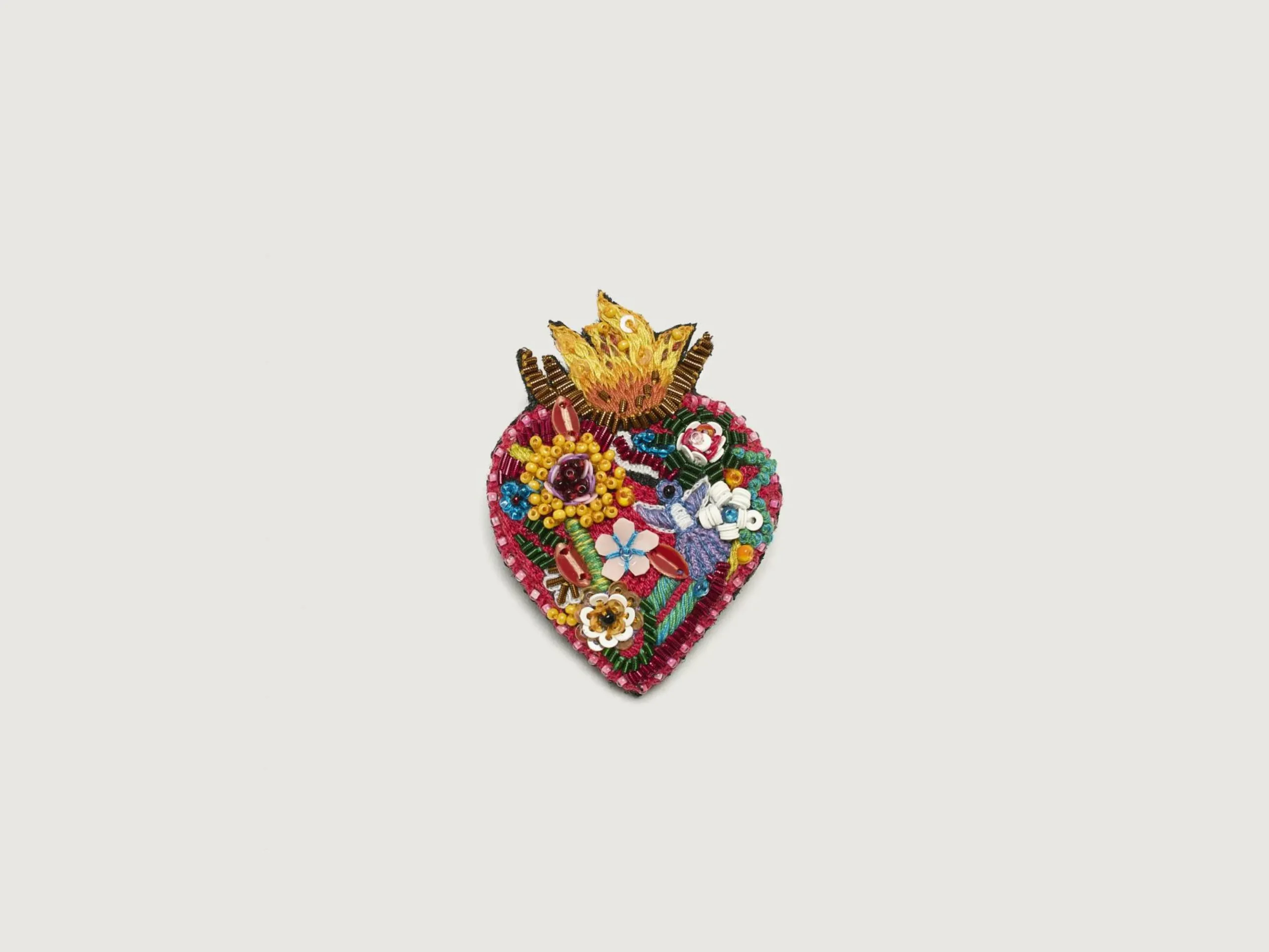La broche Trovelore Flaming Heart, brodée à la main par des artisans indiens, est une ravissante pièce d’art à porter.