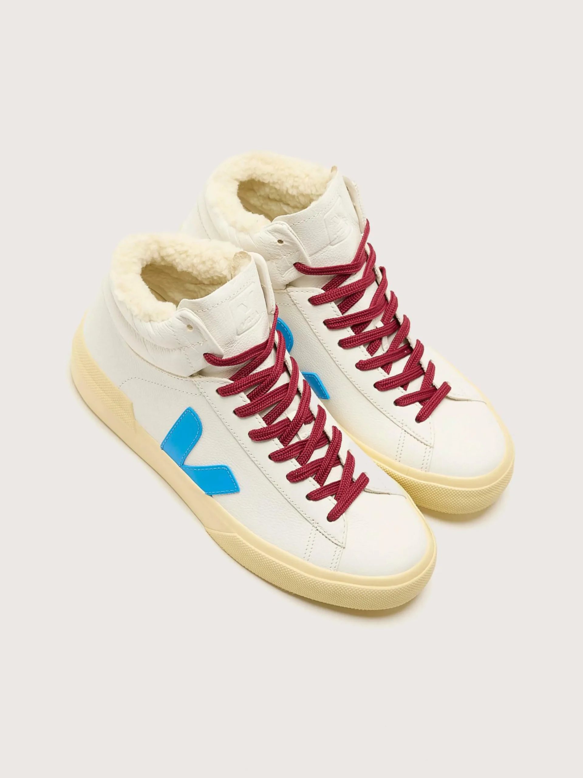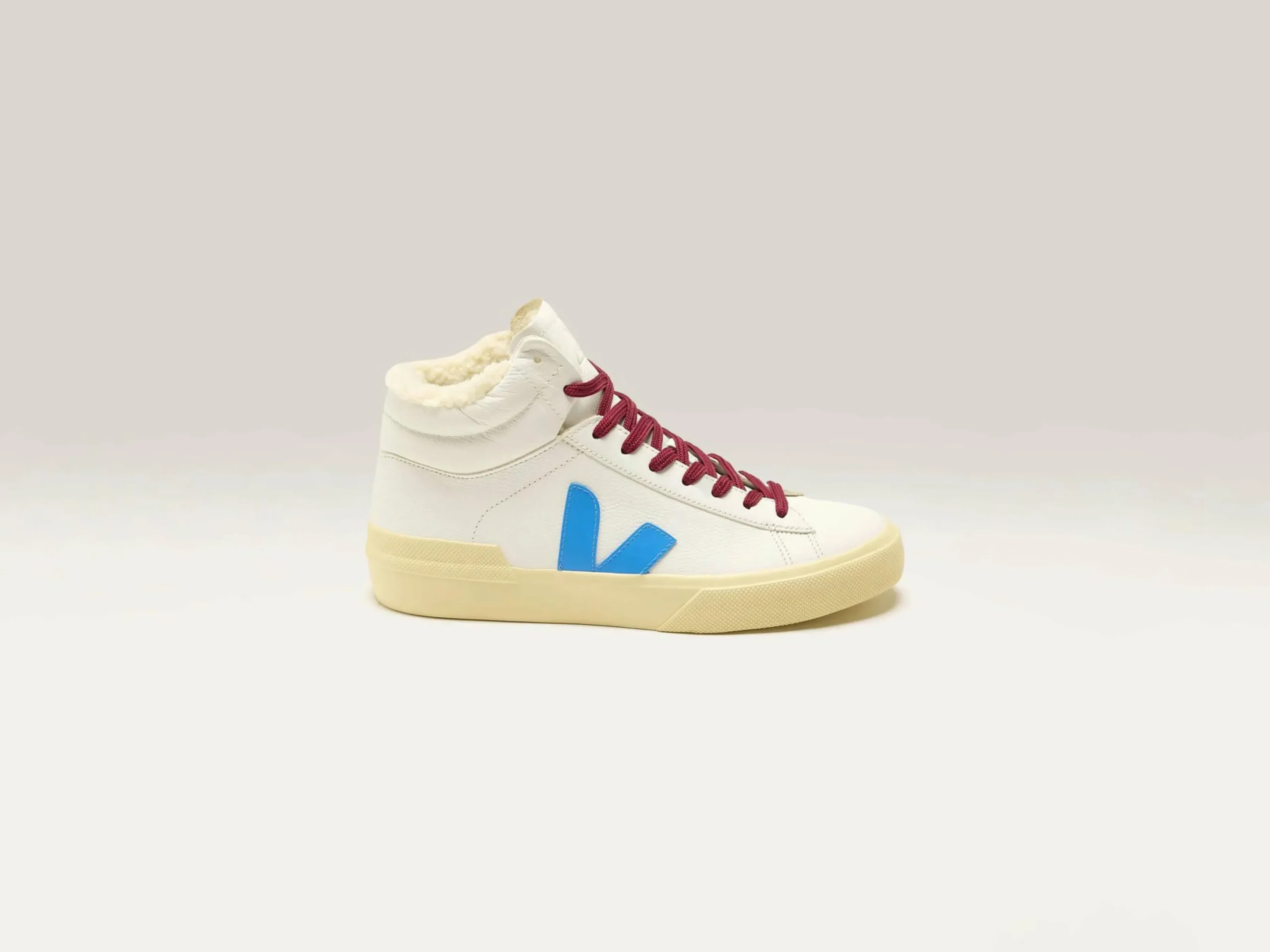Les sneakers Veja Minotaur Winter sont dotées d’une doublure en textile douillette et d’une tige en cuir sans chrome accentuée par des lacets rouge foncé.