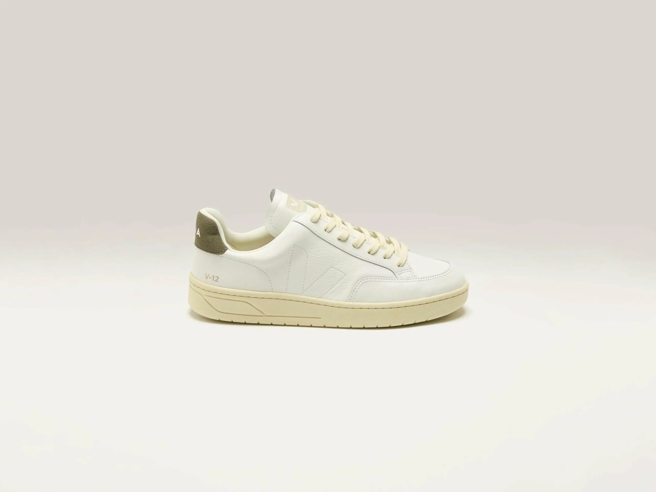 Conçues en cuir souple Organic Traced, les sneakers Veja V-12 Stitch présentent un logo V surpiqué et des empiècements en suède au niveau du talon.
