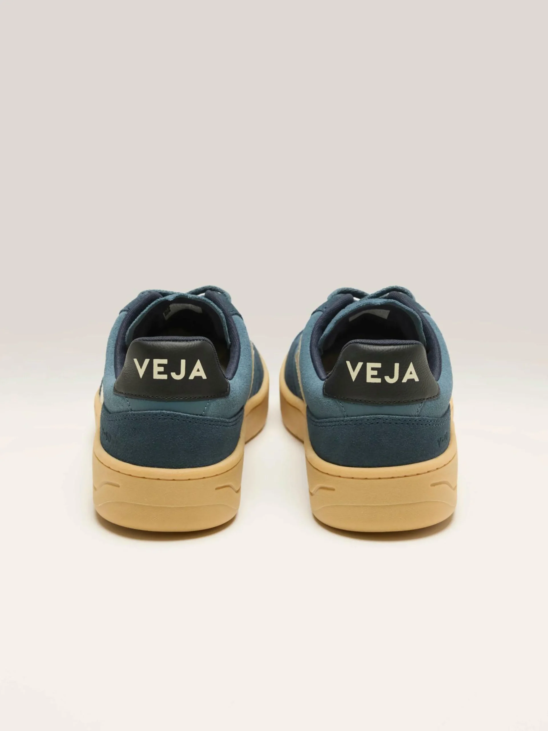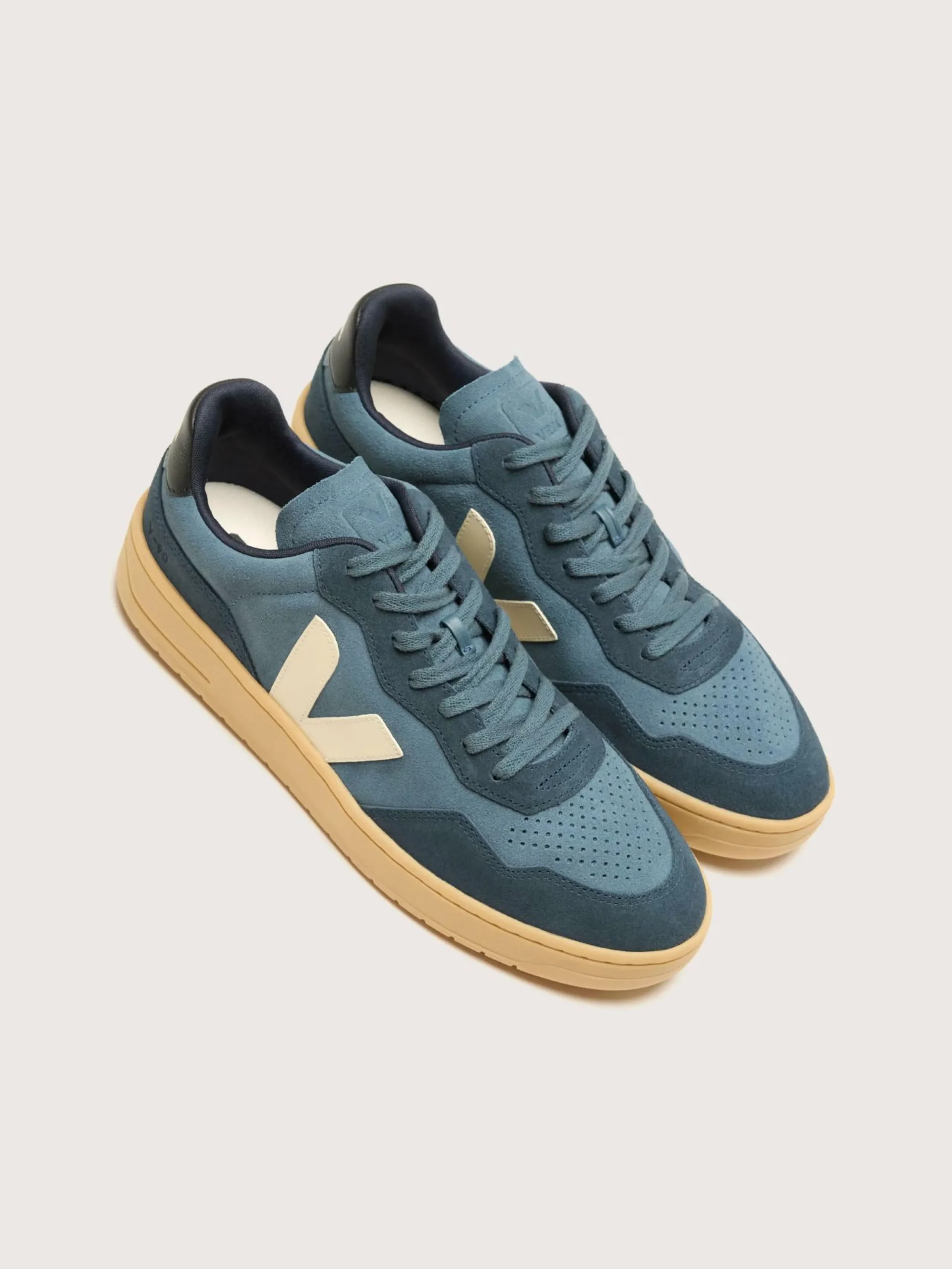 Les sneakers Veja V-90 présentent une tige en suède et des semelles en caoutchouc amazonien dans un design respectueux de l’environnement.