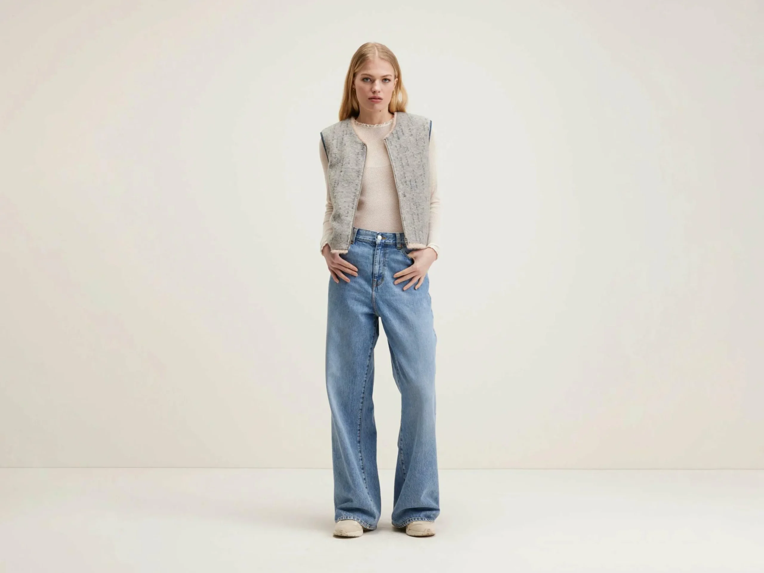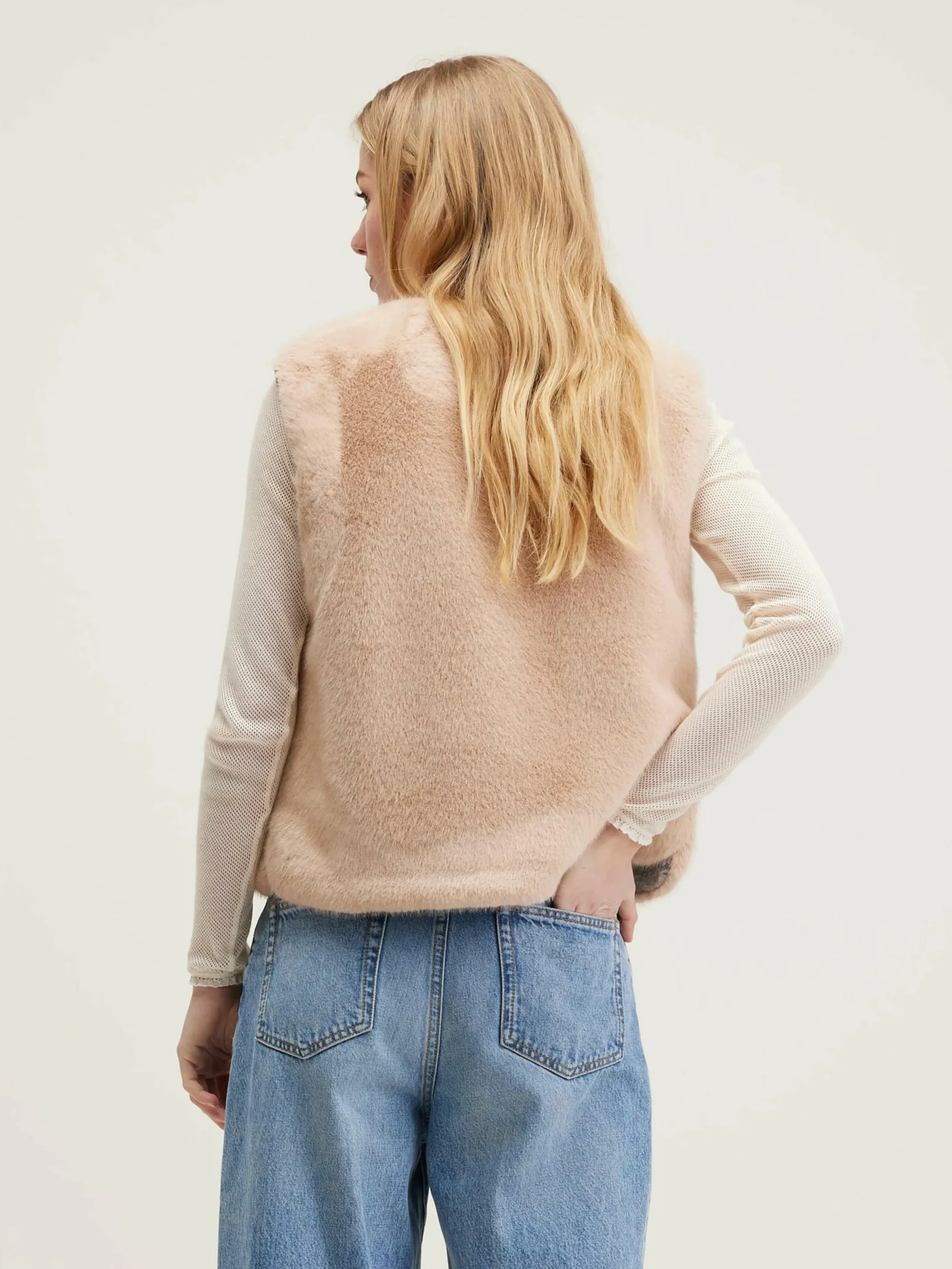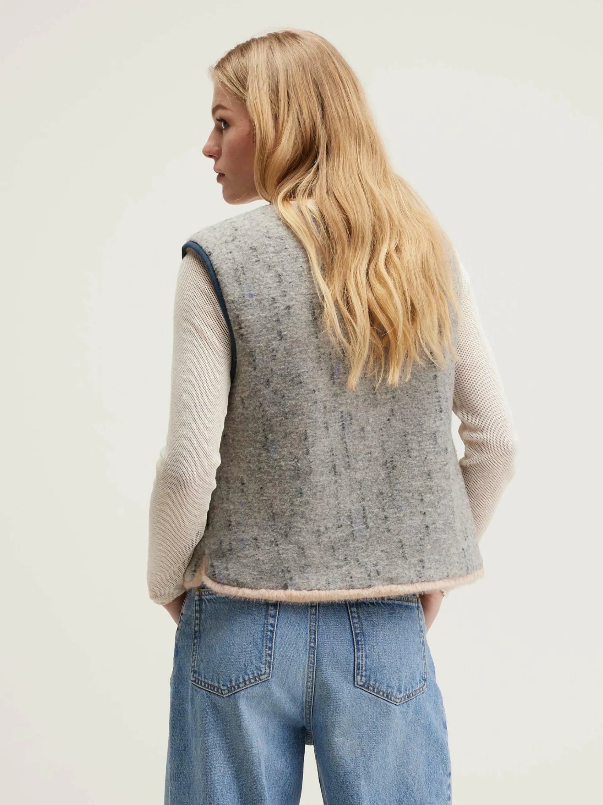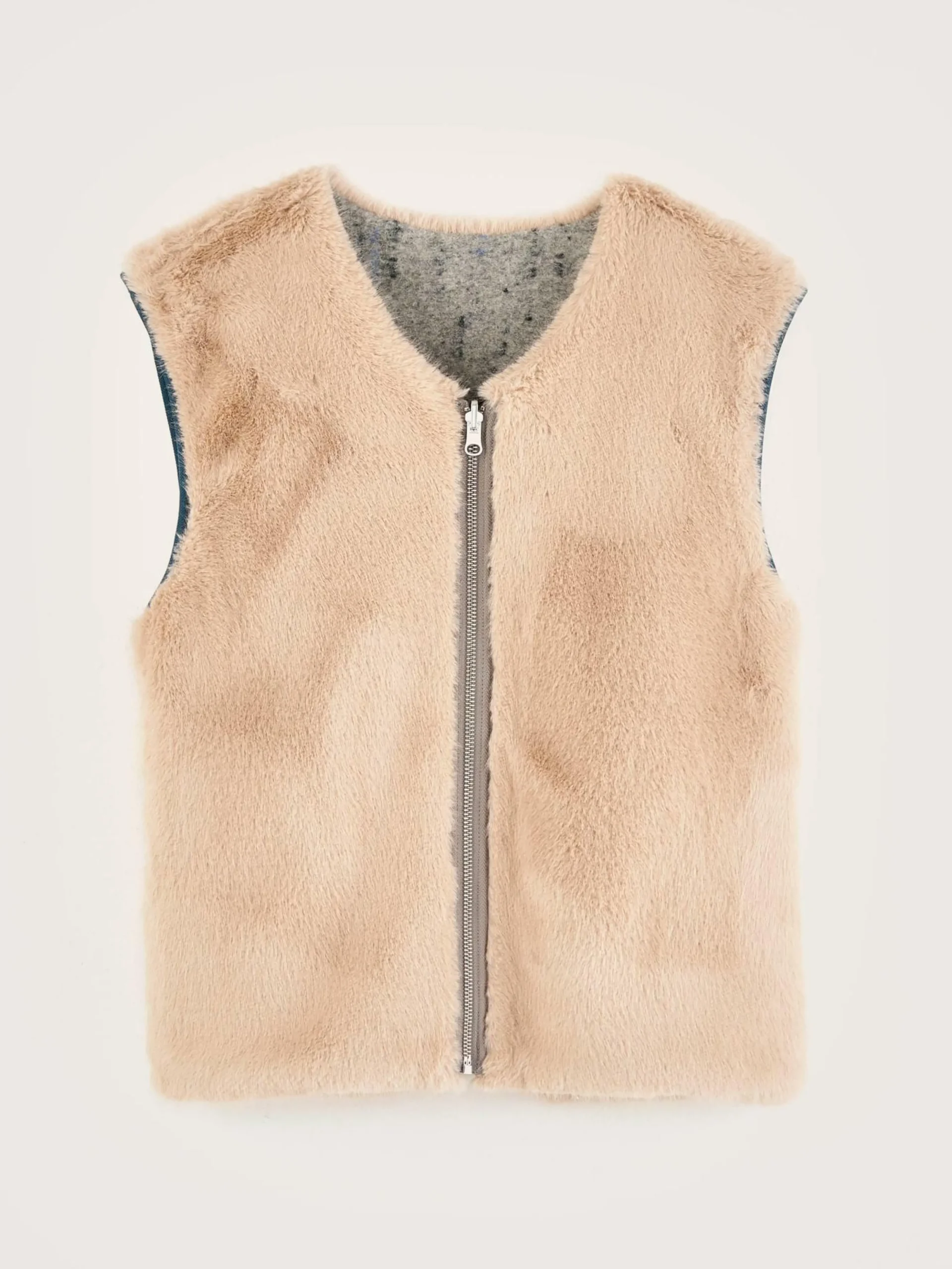 Surchemise réversible en flanelle gris chiné, doublée de fausse fourrure.
