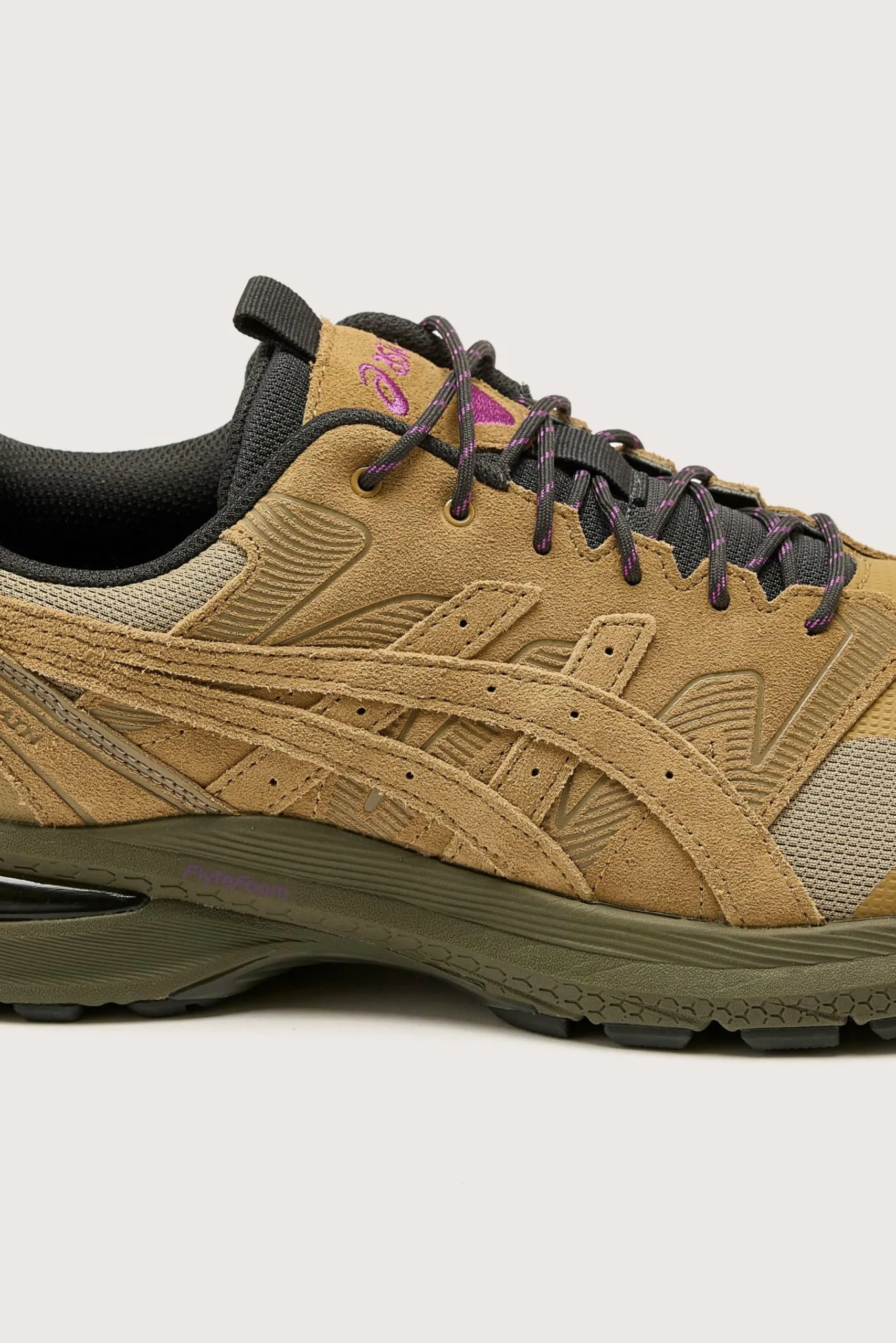 Les sneakers Asics Gel-Terrain Sportstyle présentent un design dynamique et léger en suède avec des détails techniques modernes.