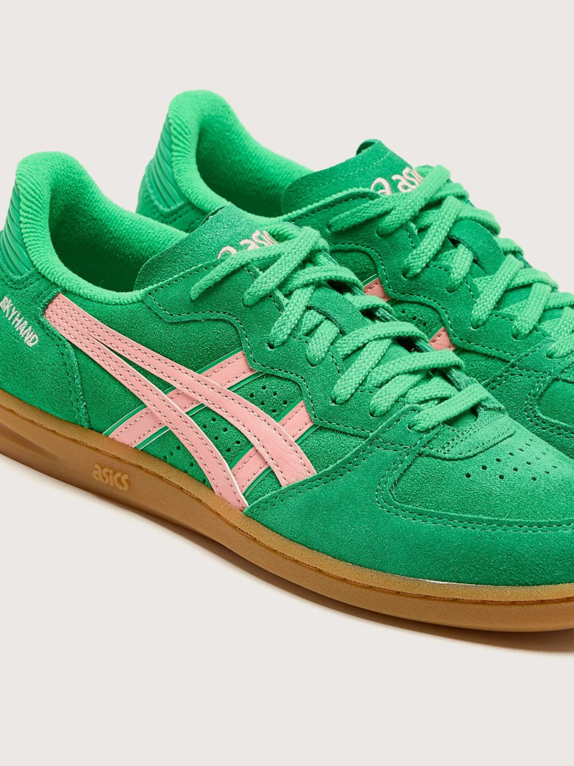 Les sneakers Asics SKYHAND OG, inspirées du handball, se caractérisent par un empiècement rétro en suède et une semelle extérieure en caoutchouc.