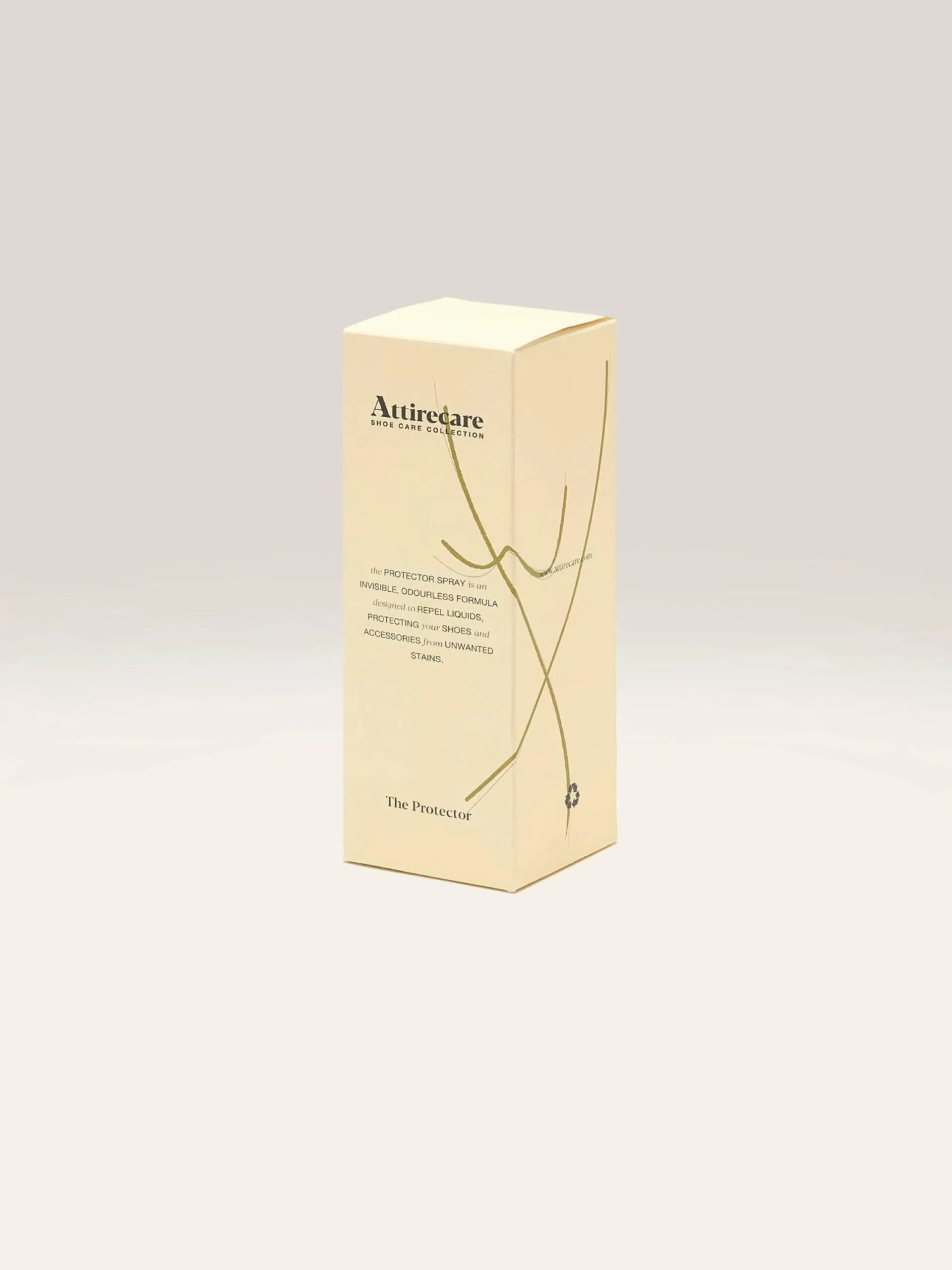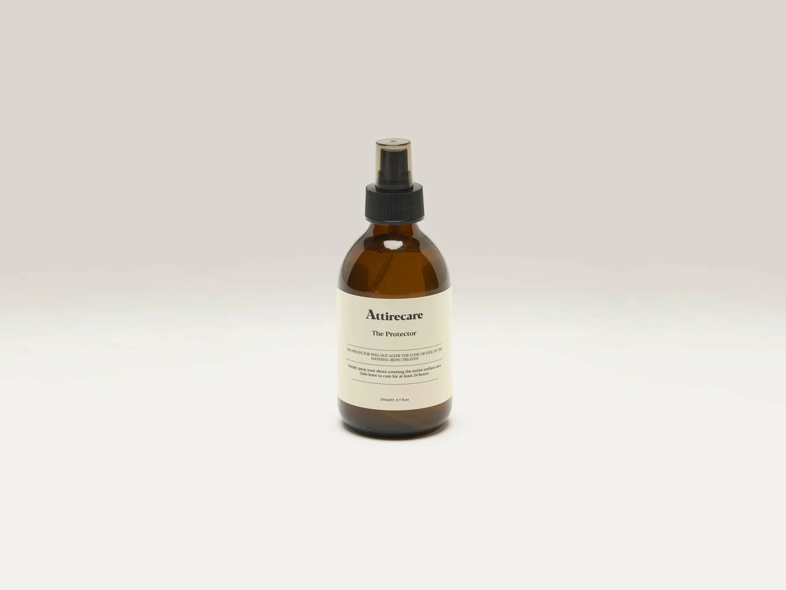 Le spray de protection The Protector de la marque Attirecare est une formule invisible et inodore conçue pour repousser les liquides et protéger les chaussures et les accessoires des taches.