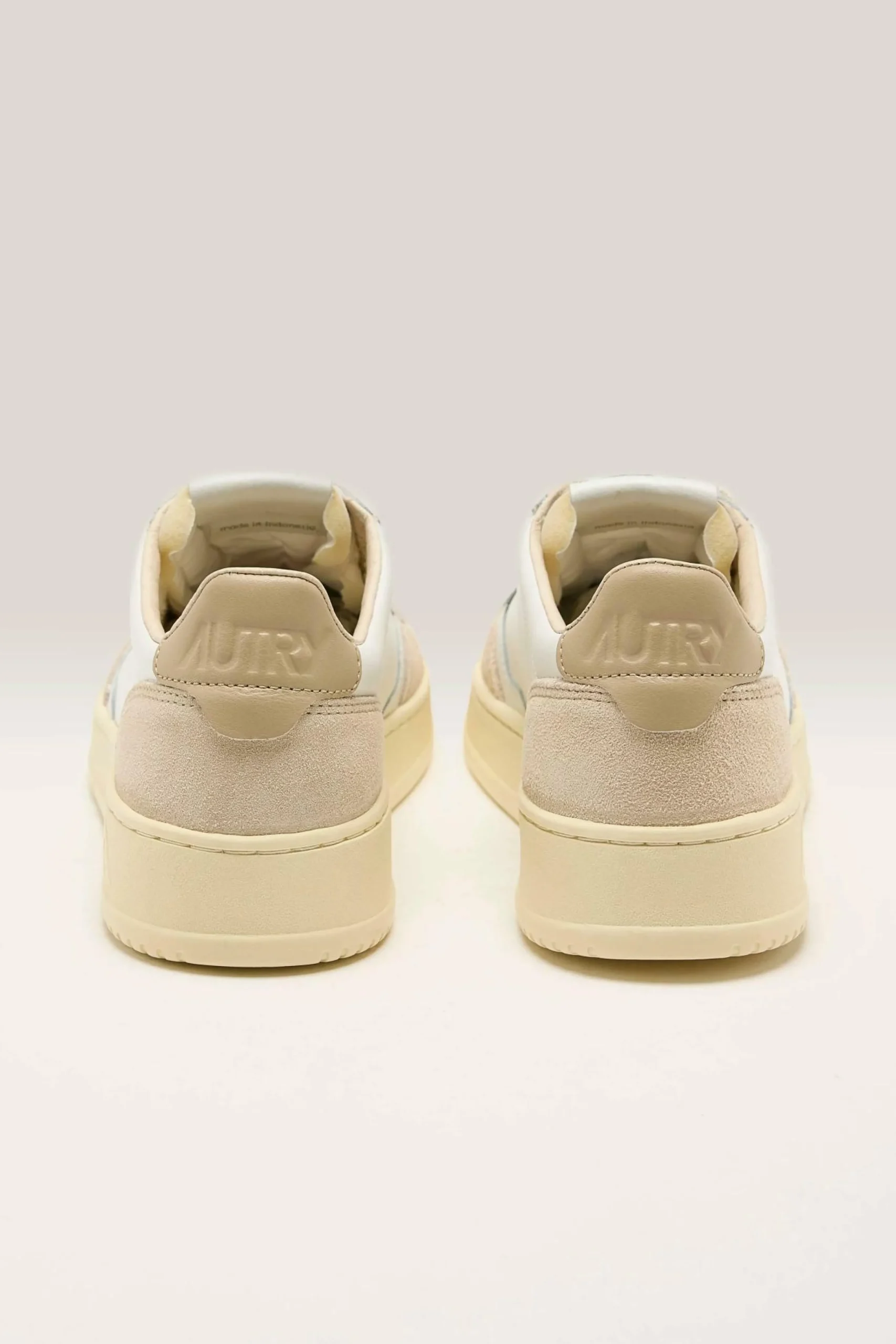 Les sneakers Autry Medalist Low présentent une tige en cuir blanc souple, des empiècements en suède doux et un bout perforé.