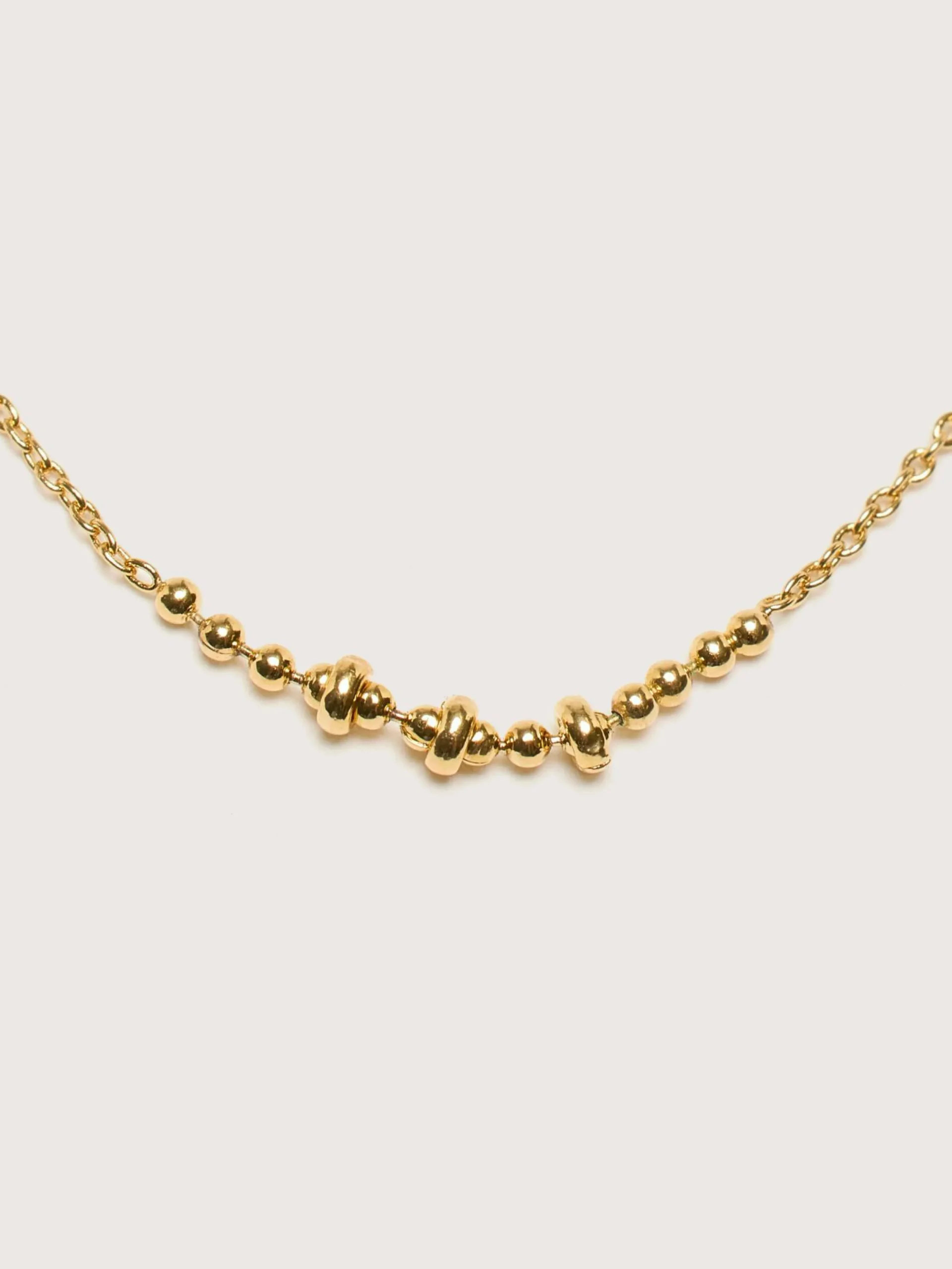 Le collier Océane de BDM Studio est une chaine délicate plaquée or 24k avec des perles également plaquées or.