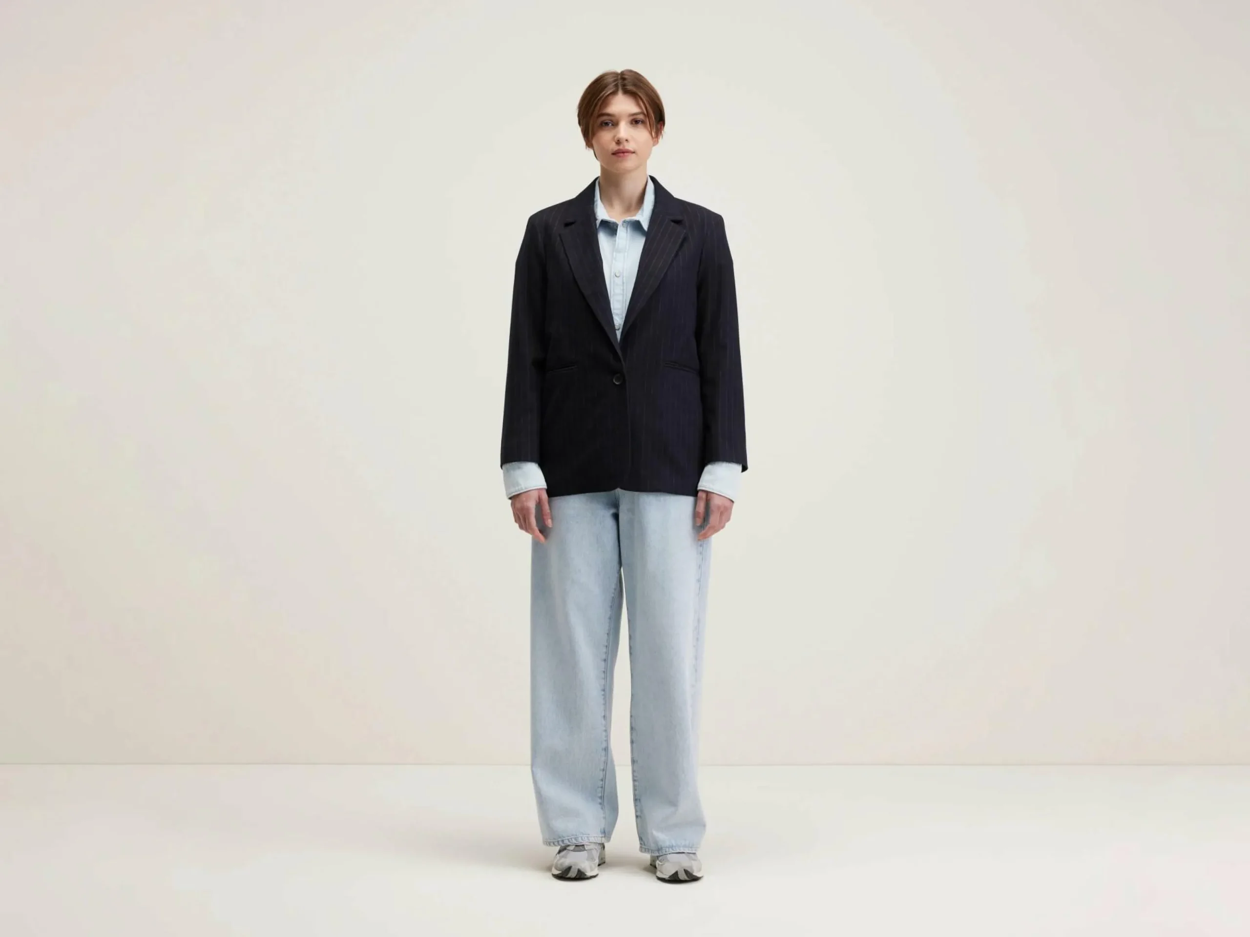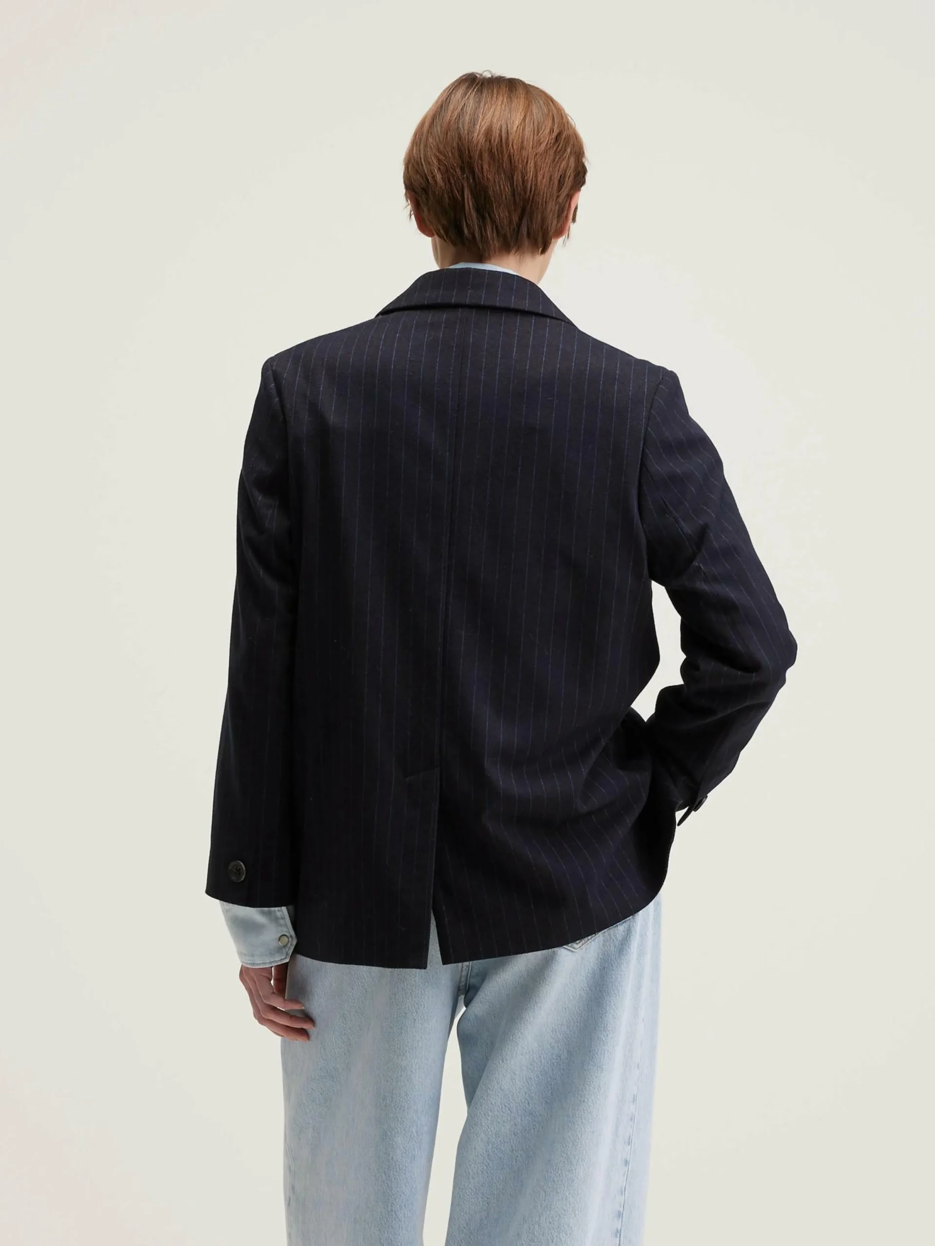 Blazer classique, coupe décontractée, en flanelle rayée.