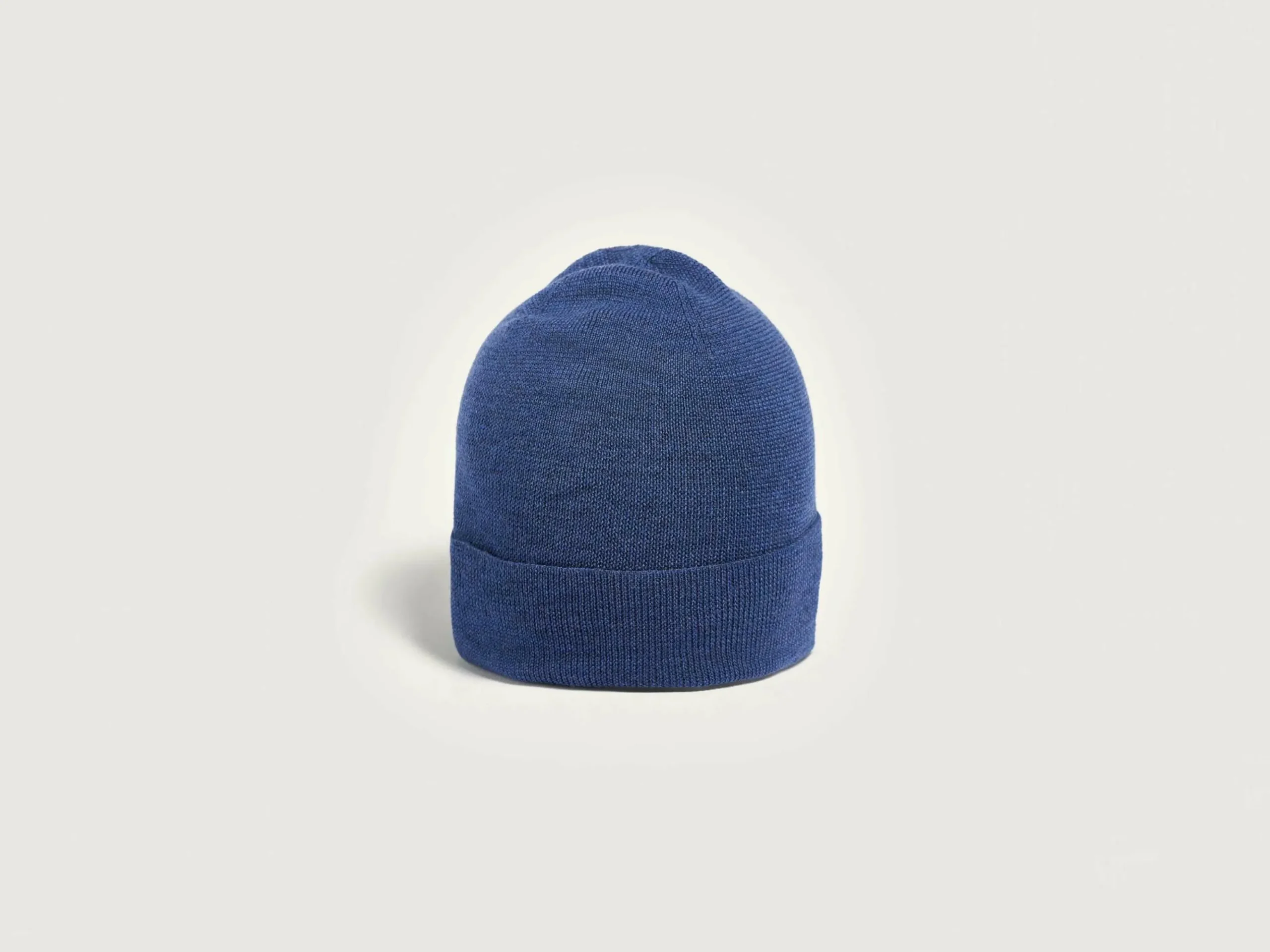 Bonnet côtelé classique en laine mérinos superfine bleu mélangé.