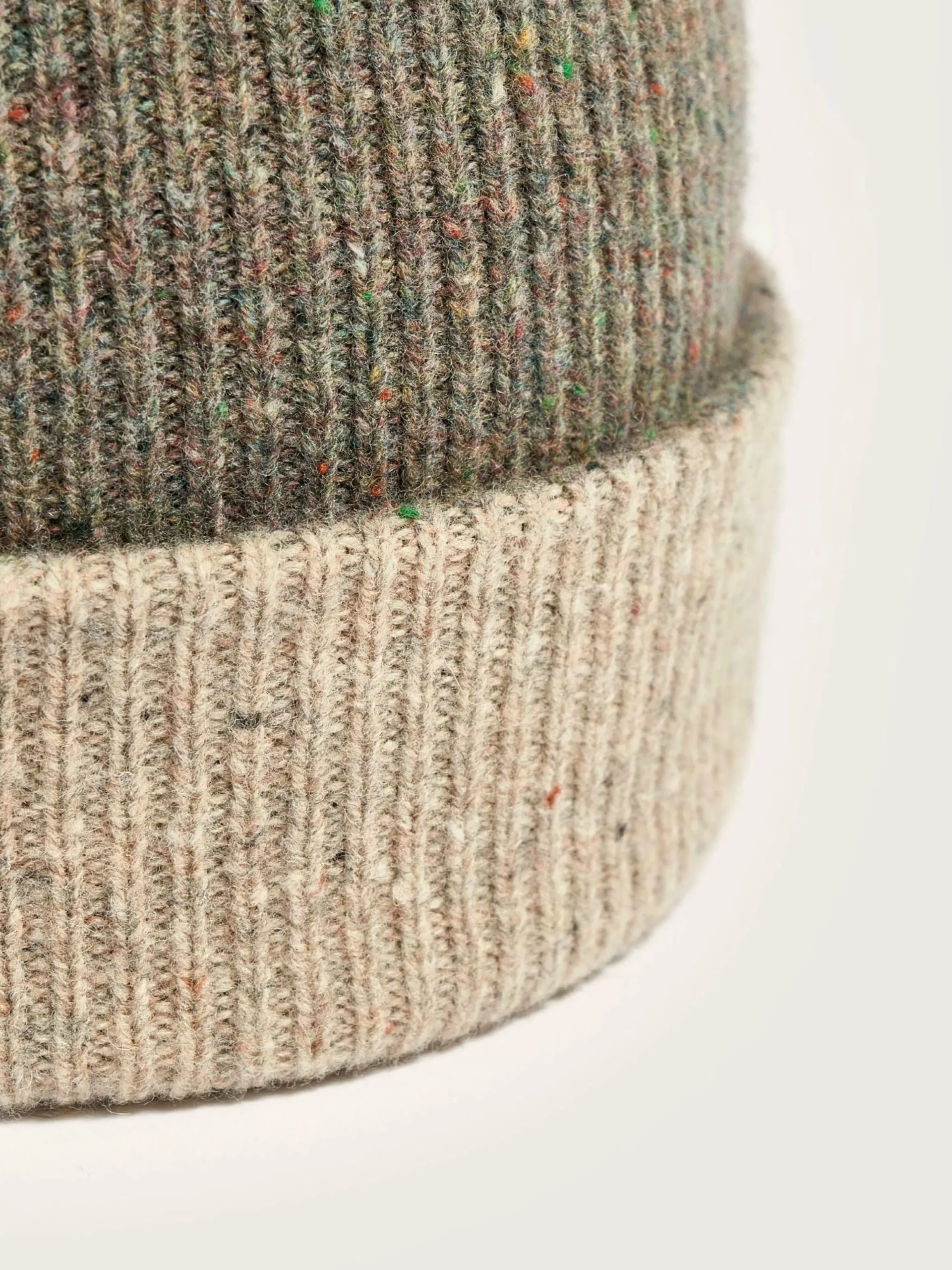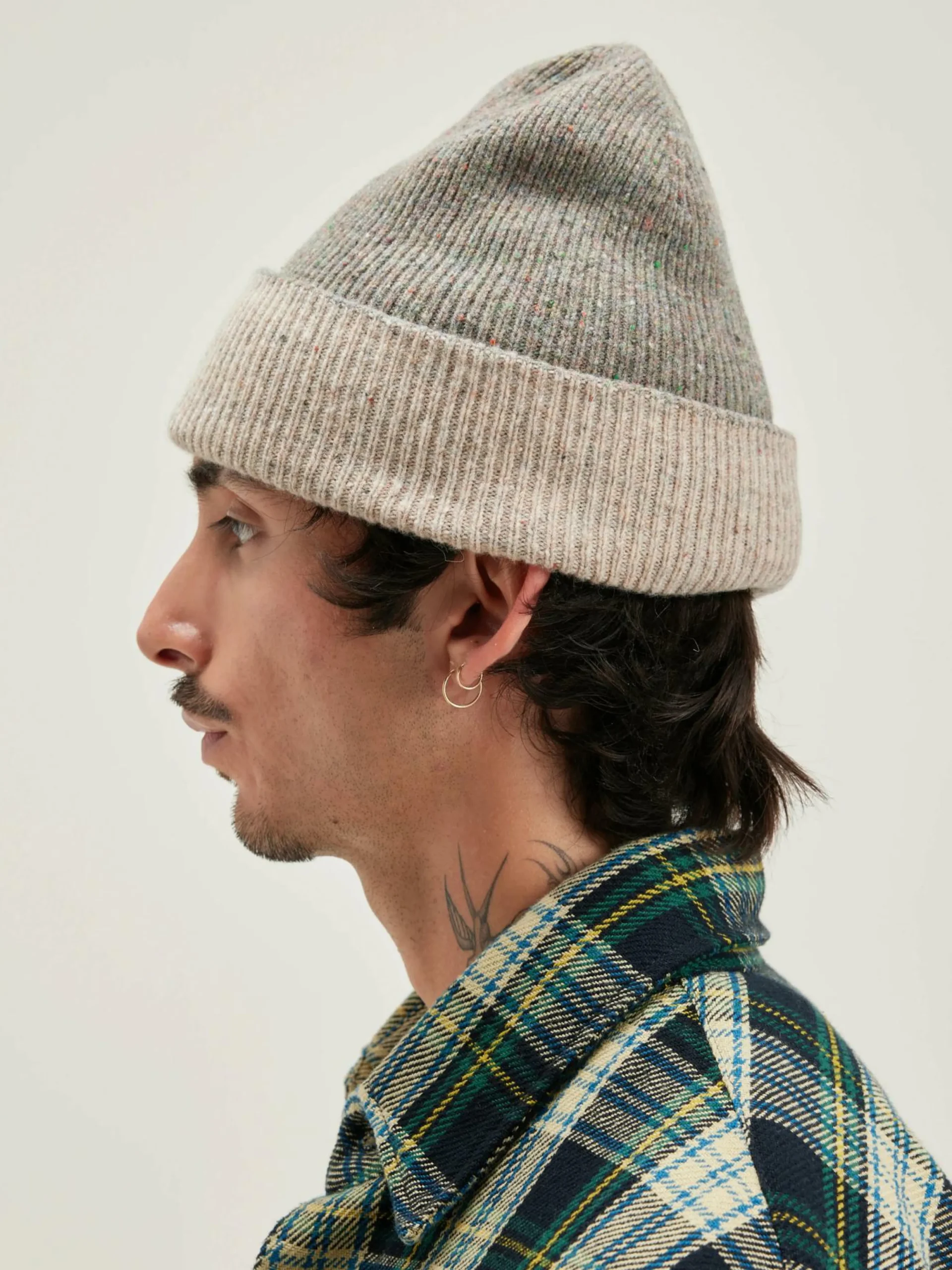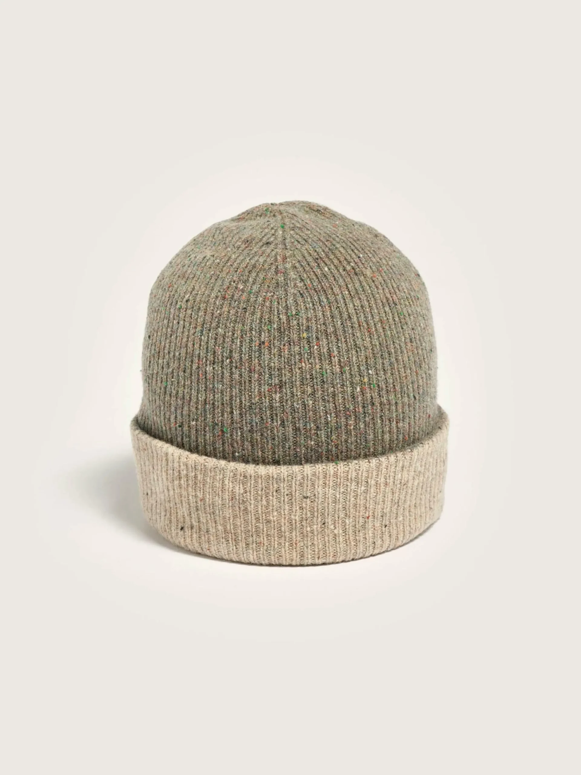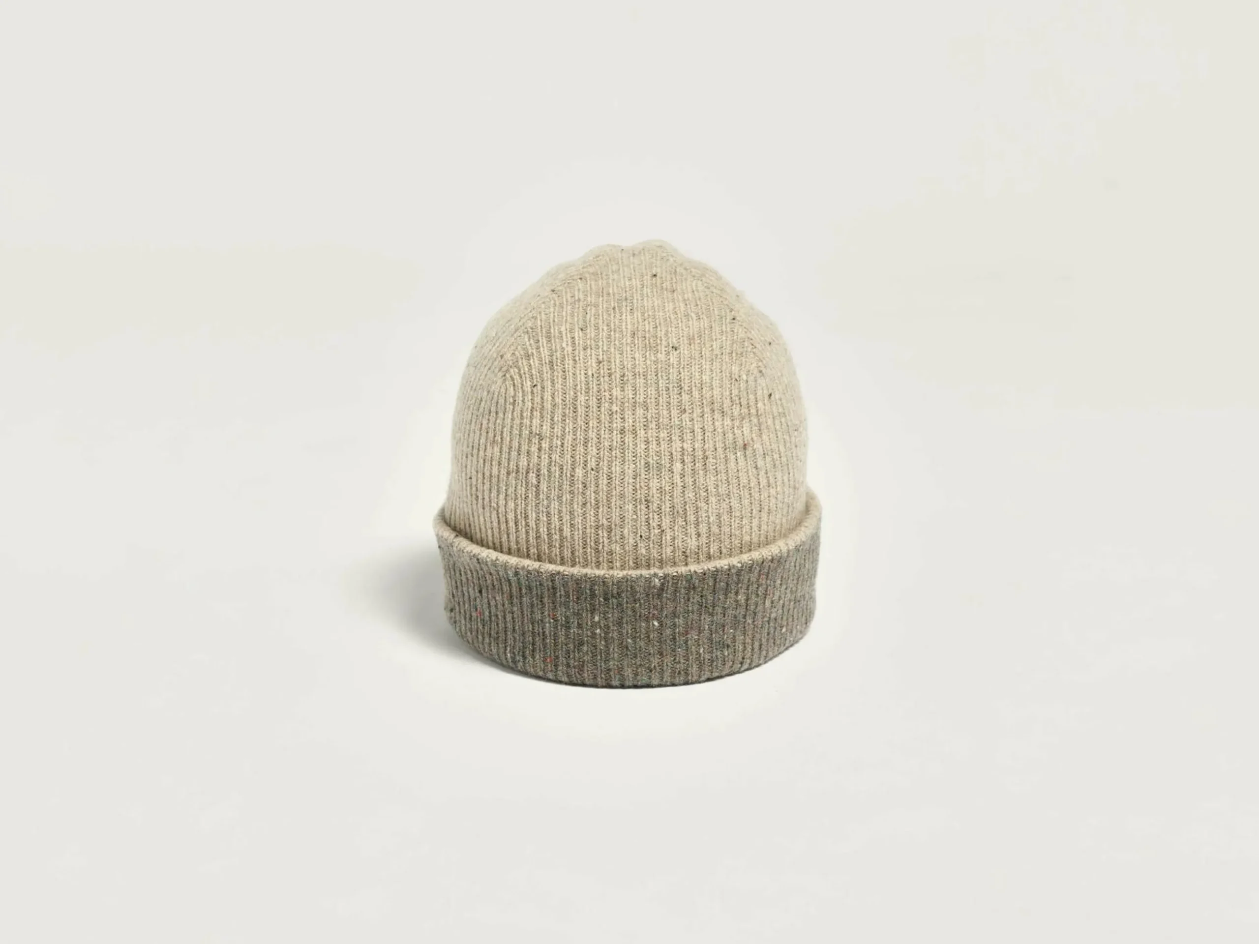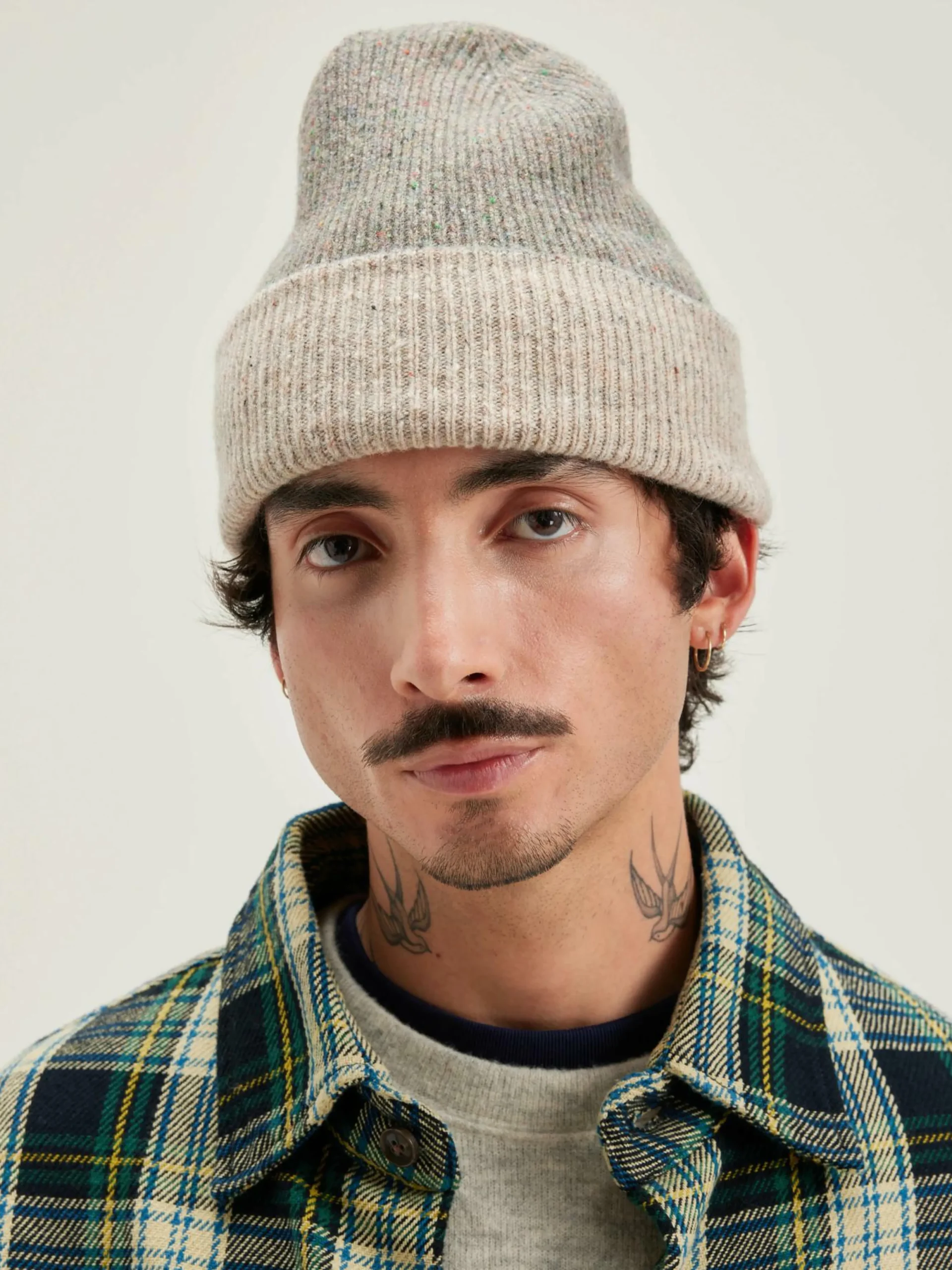 Bonnet réversible en laine mérinos grise, maille côtelée.