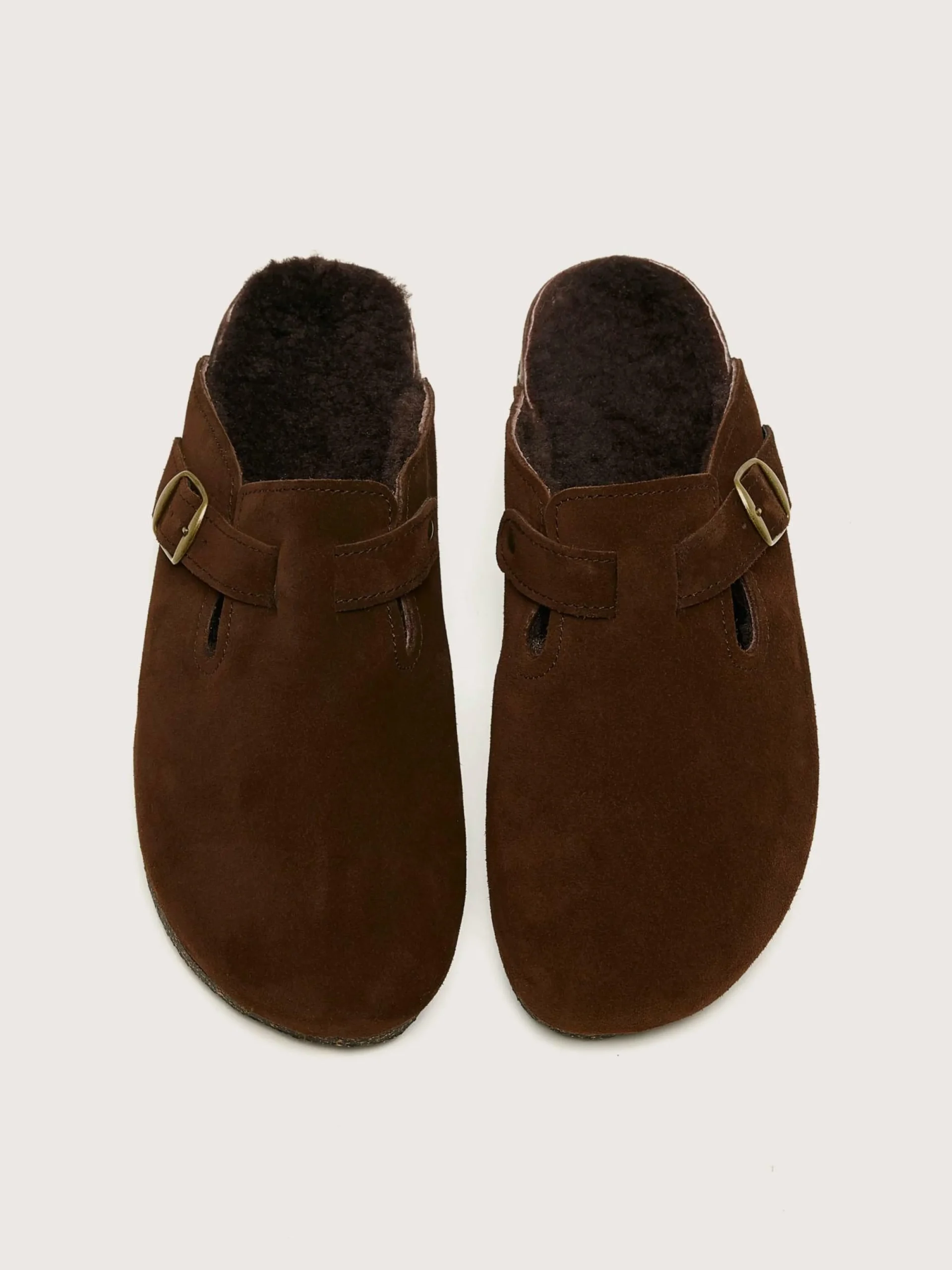 Les sabots Bosabo en Velours Choco sont fabriqués à la main en France avec un dessus en cuir et peau de mouton, ainsi qu’une semelle intérieure en liège.