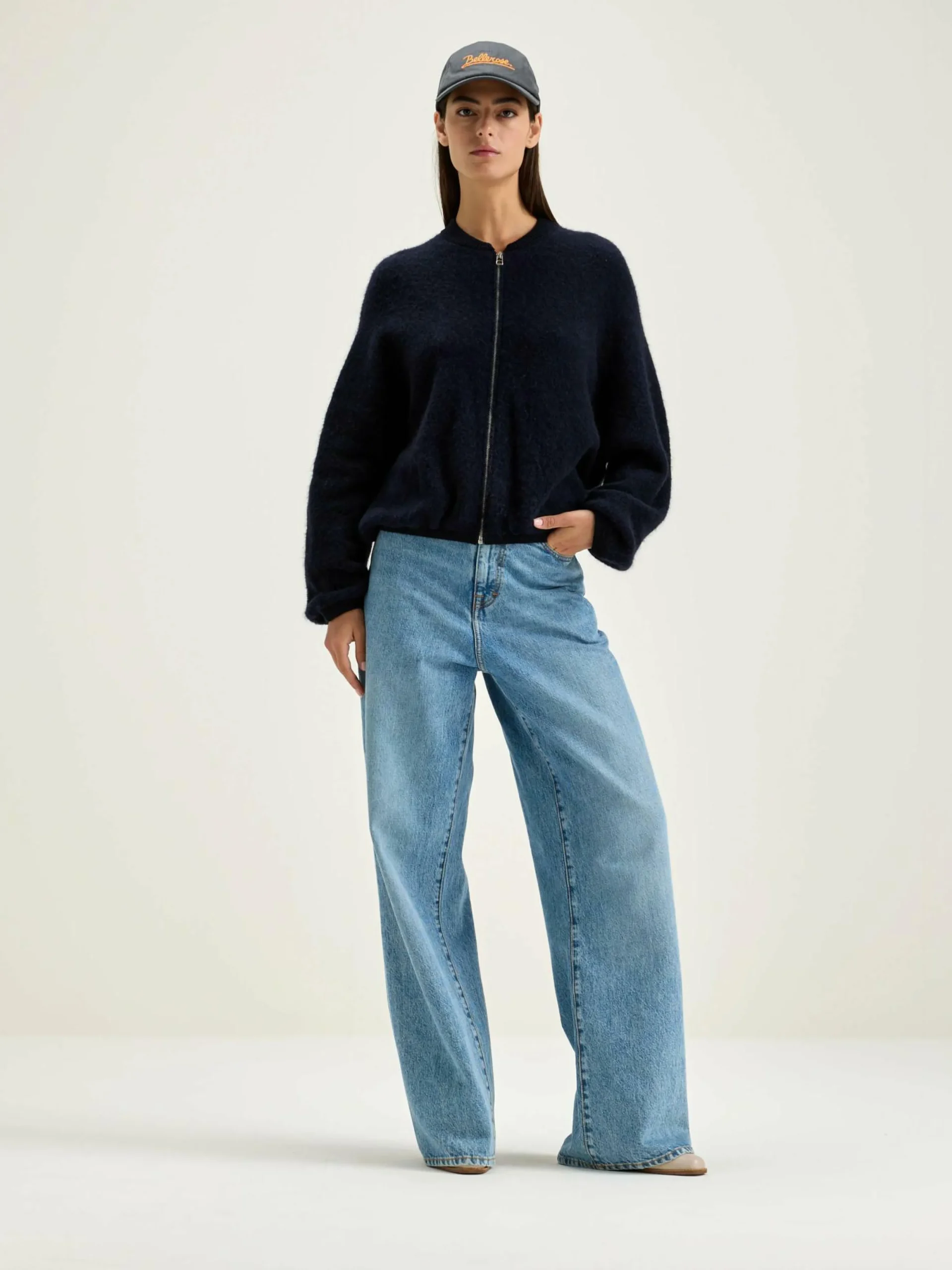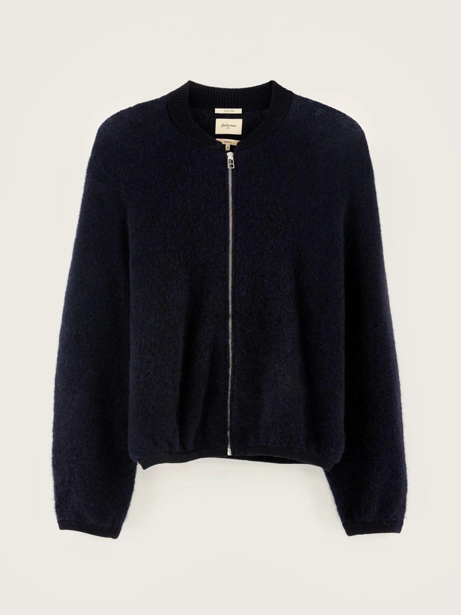 Cardigan zippé oversize bleu marine.