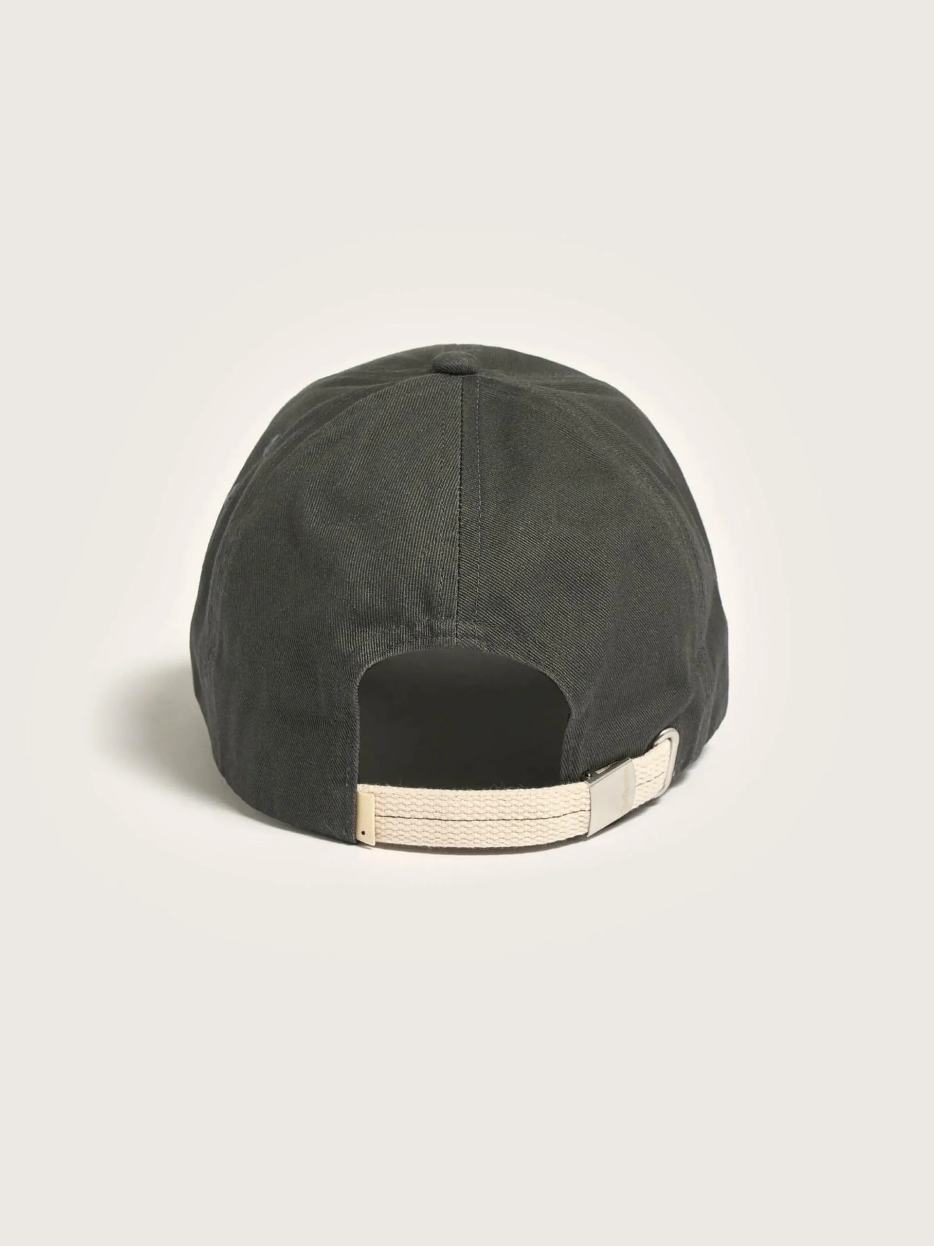 Casquette classique à 6 panneaux en coton gris avec broderie Bellerose orange à l’avant.