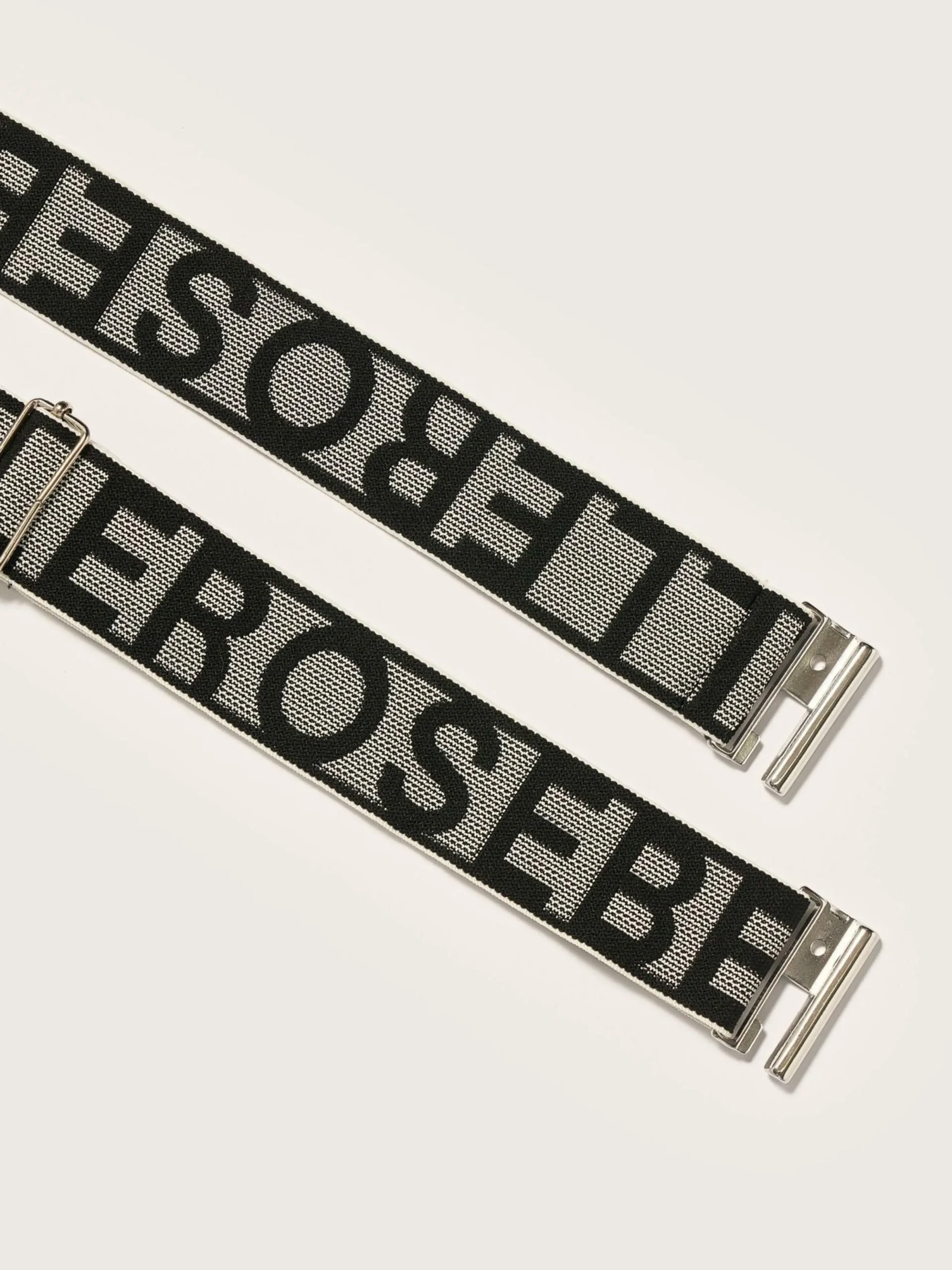 Ceinture élastique avec une boucle argentée, imprimée du logo Bellerose.